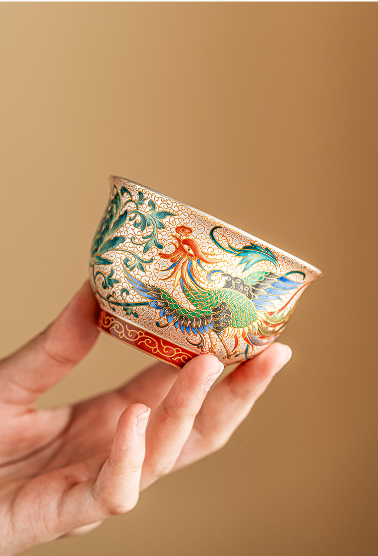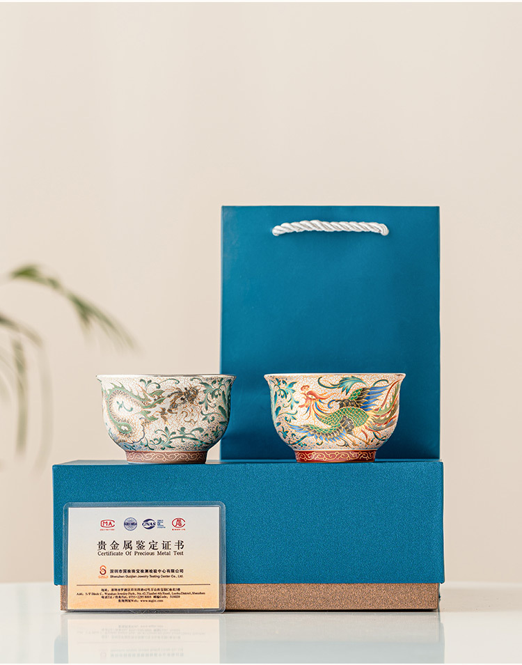 - Cốc cặp đôi rồng và phượng hoàng, cốc trà mạ bạc 999, cốc chủ nhân, cốc trà cao cấp sang trọng nhẹ, hộp quà Bộ trà