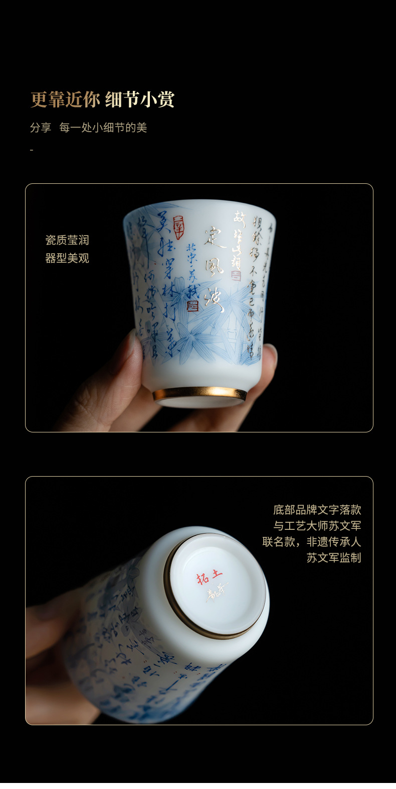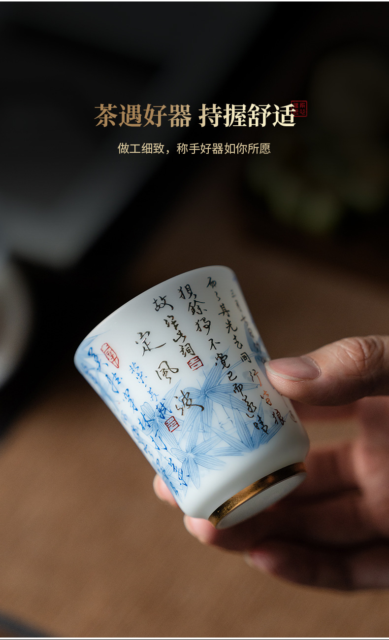 - Cốc chủ nhân bằng sứ ngọc bích liên danh Su Wenjun cốc trà Kung Fu gốm sứ cao cấp cốc trà cá nhân cốc đơn