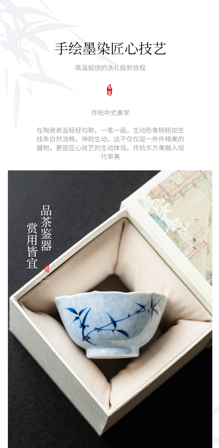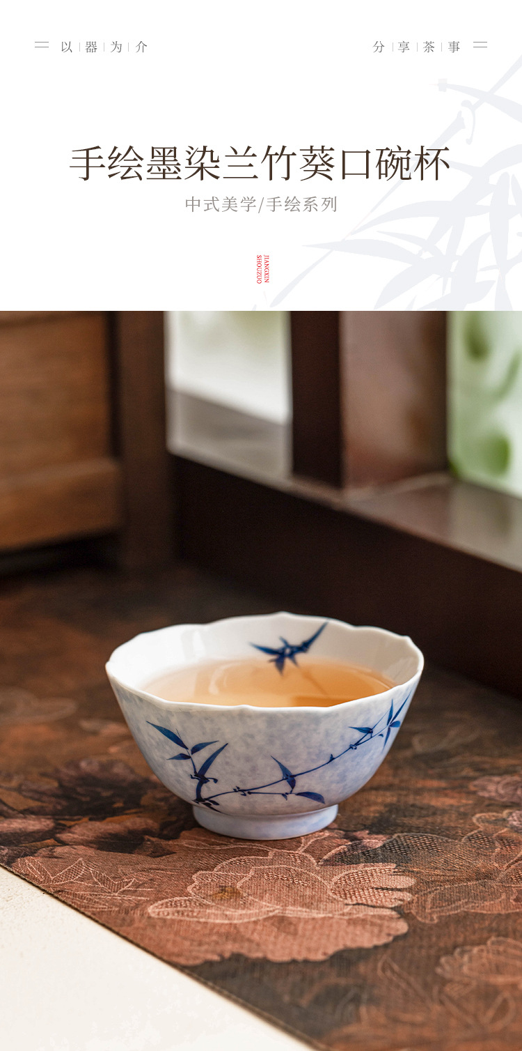 - Cốc chủ nhân bằng tre mực vẽ tay cốc trà gốm đơn cốc miệng hướng dương cốc uống trà dung tích lớn cốc uống trà đặc biệt