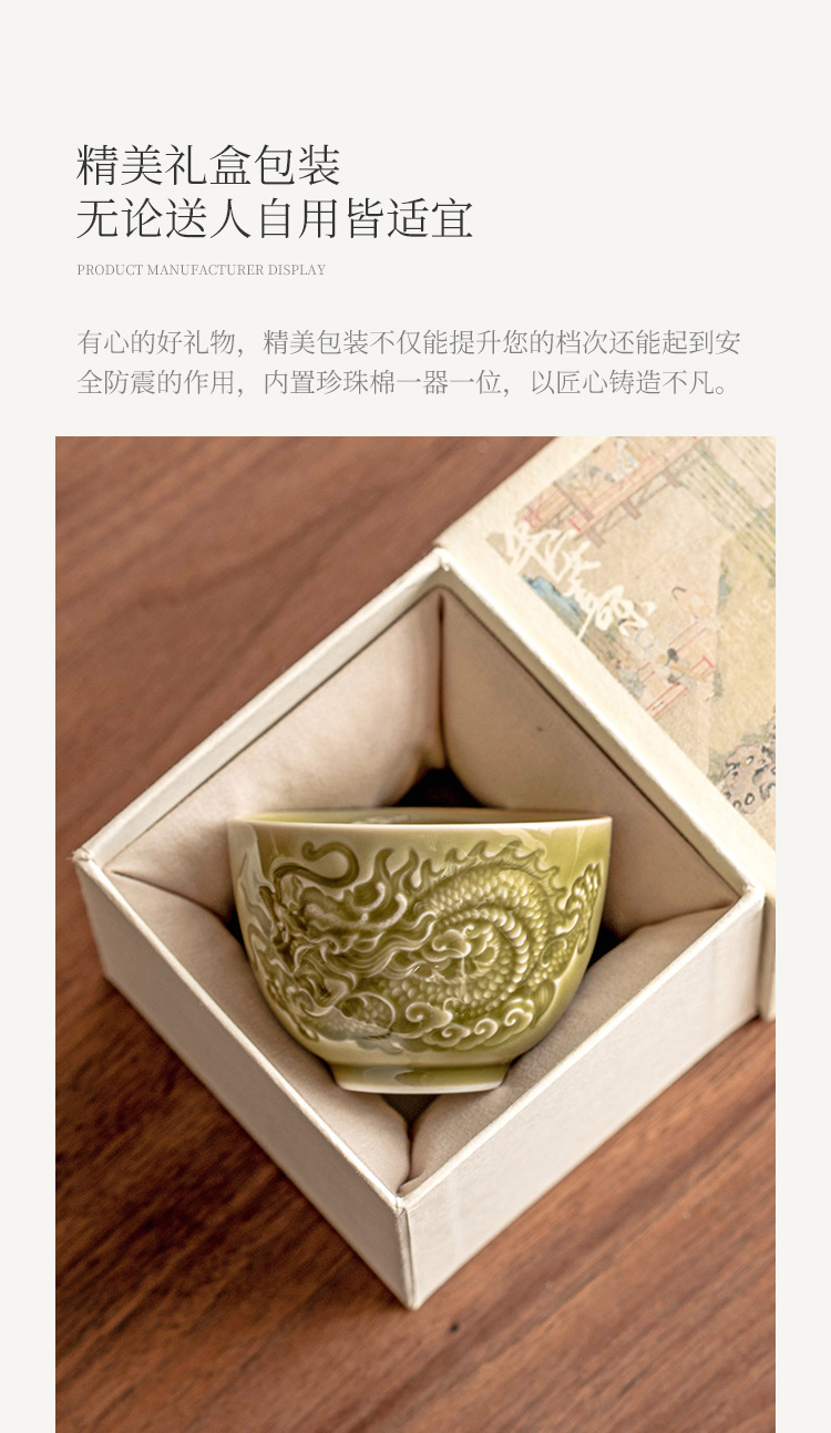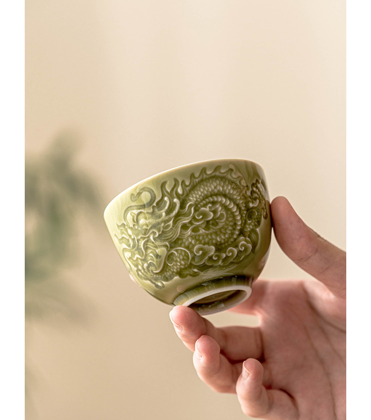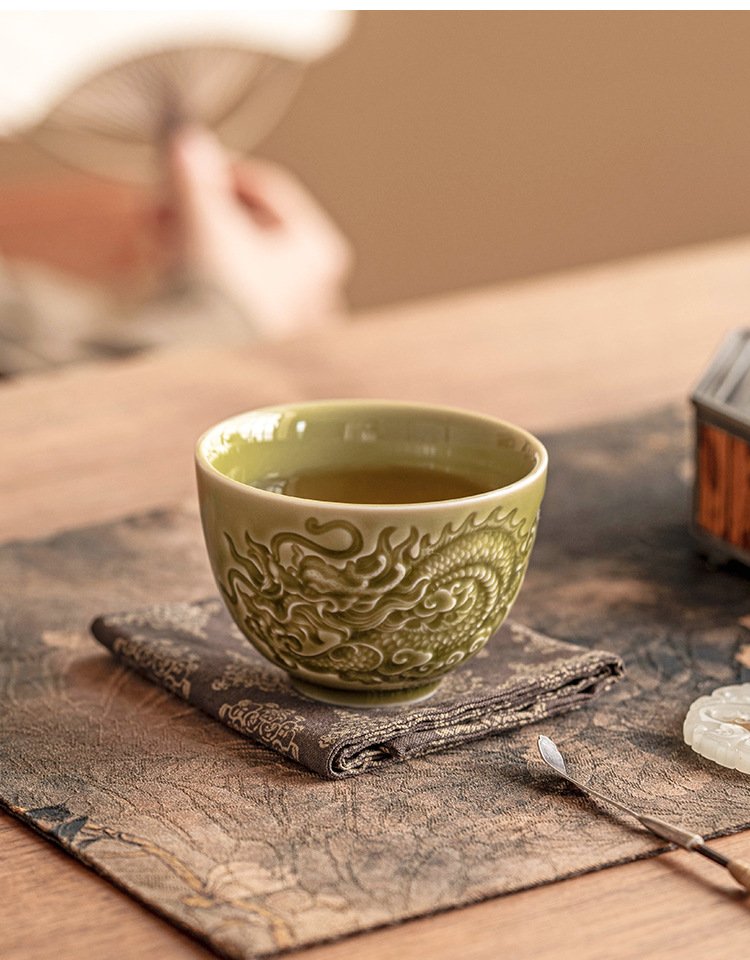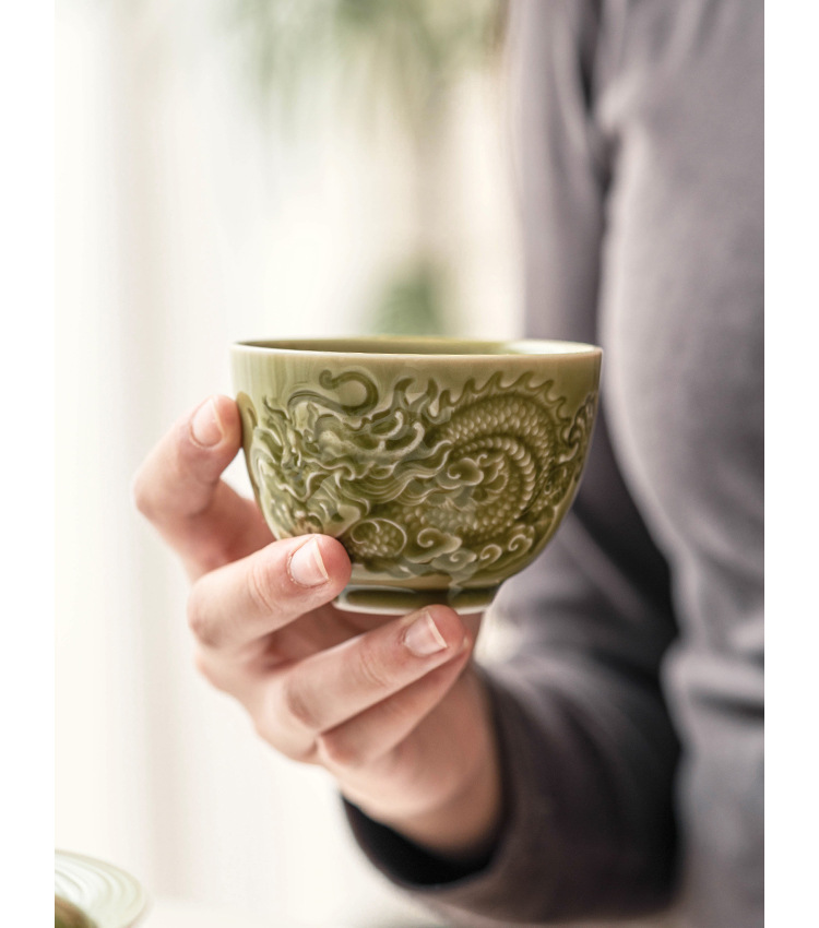 - Cốc chủ nhân bát lớn hình rồng lò Yaozhou cốc đơn cốc trà cá nhân cao cấp cốc uống trà Kung Fu nổi kiểu Trung Quốc cốc đơn