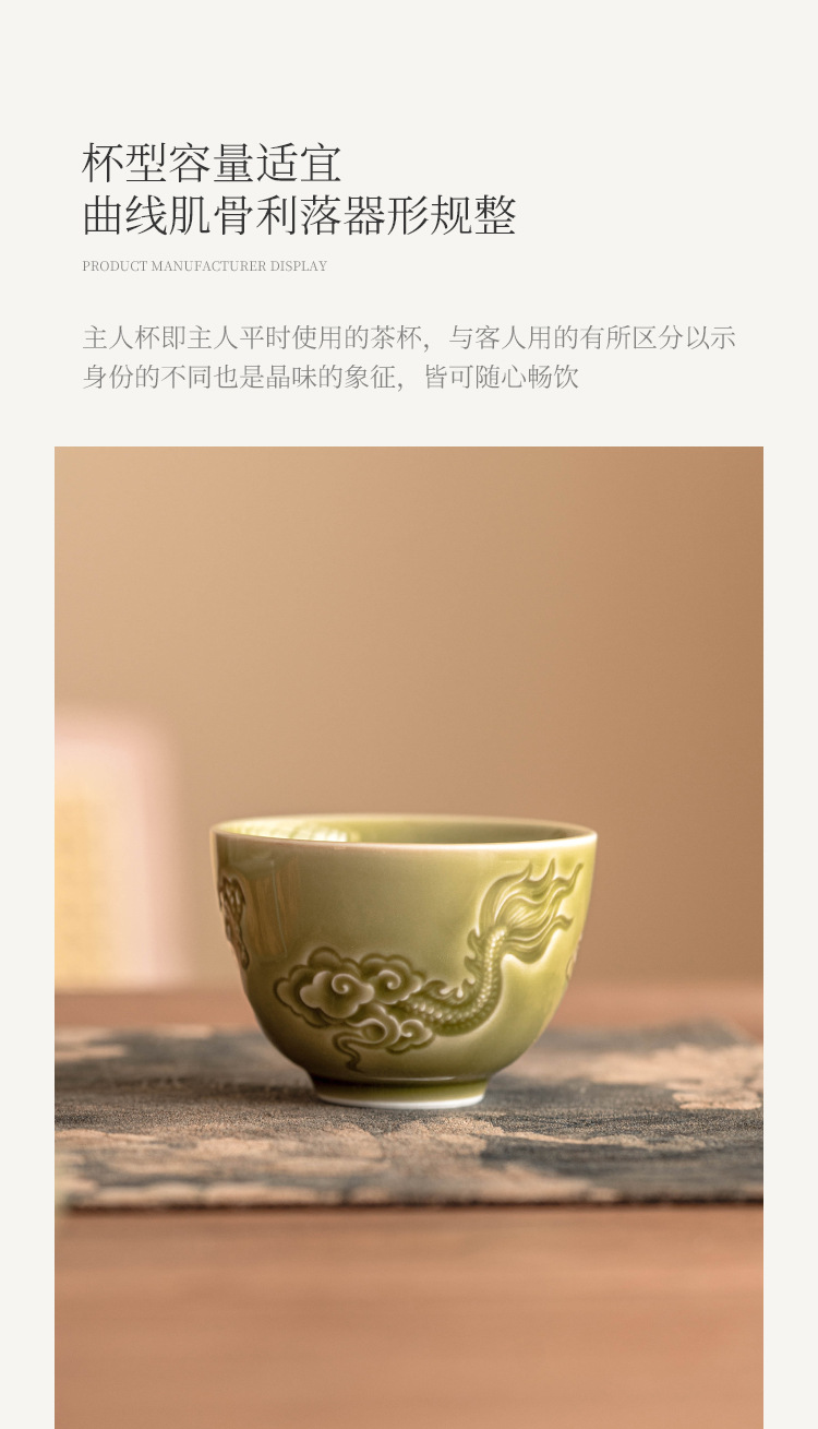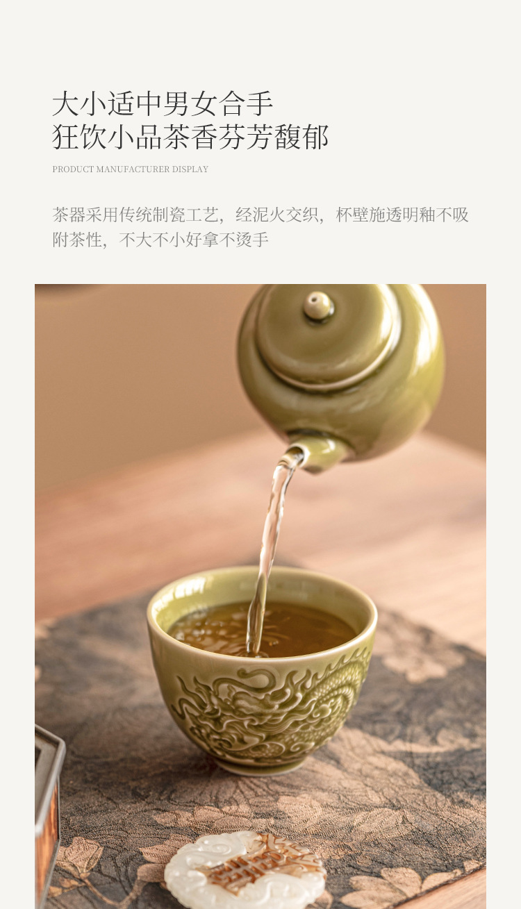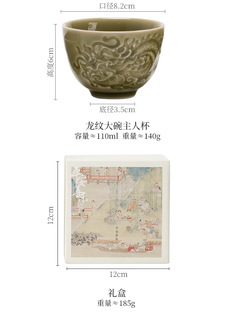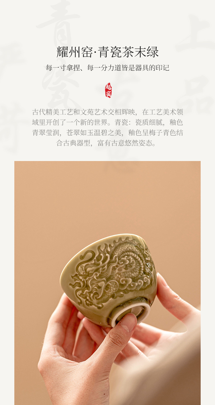 - Cốc chủ nhân bát lớn hình rồng lò Yaozhou cốc đơn cốc trà cá nhân cao cấp cốc uống trà Kung Fu nổi kiểu Trung Quốc cốc đơn