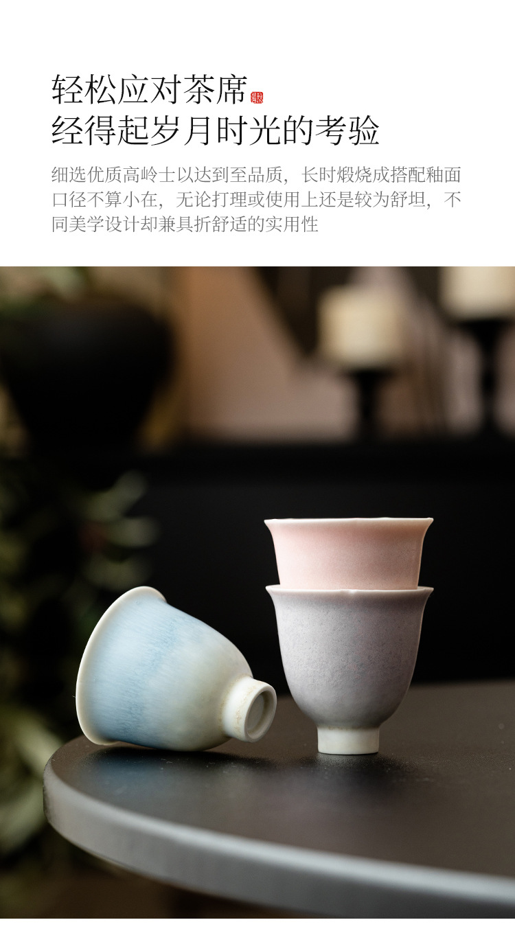 Cốc chủ nhân biến đổi lò Macaron màu tím quyến rũ chân cao hoa thần cốc trà cốc trà gốm sứ gia dụng cốc trà bộ trà Kung Fu