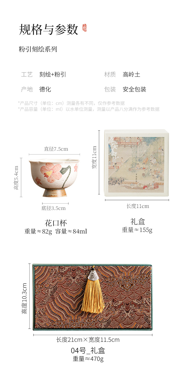 Cốc chủ nhân cao cấp, cốc miệng hoa sừng được chạm khắc bằng bột, cốc trà Kung Fu, bộ trà nữ gốm sứ, cốc trà cỡ lớn