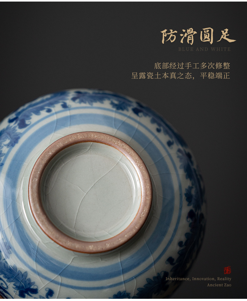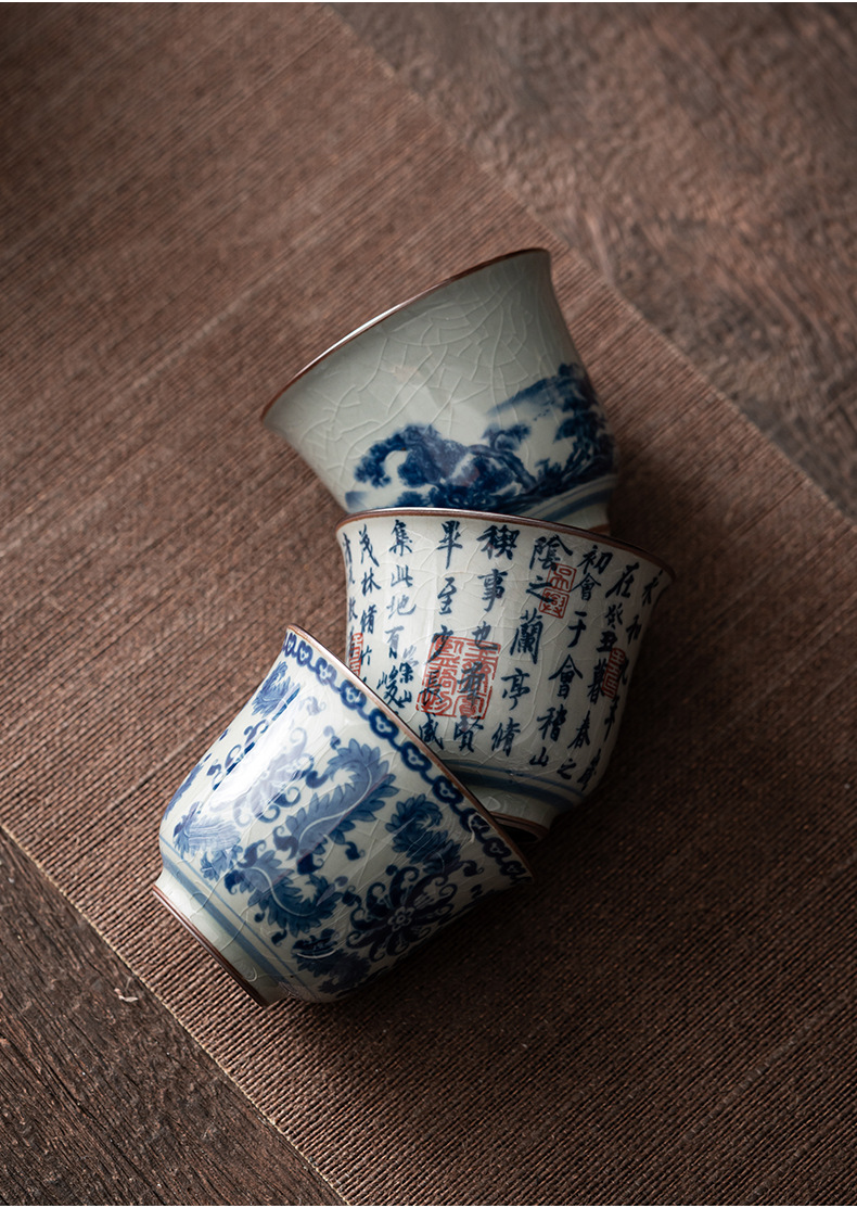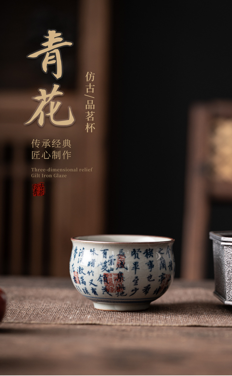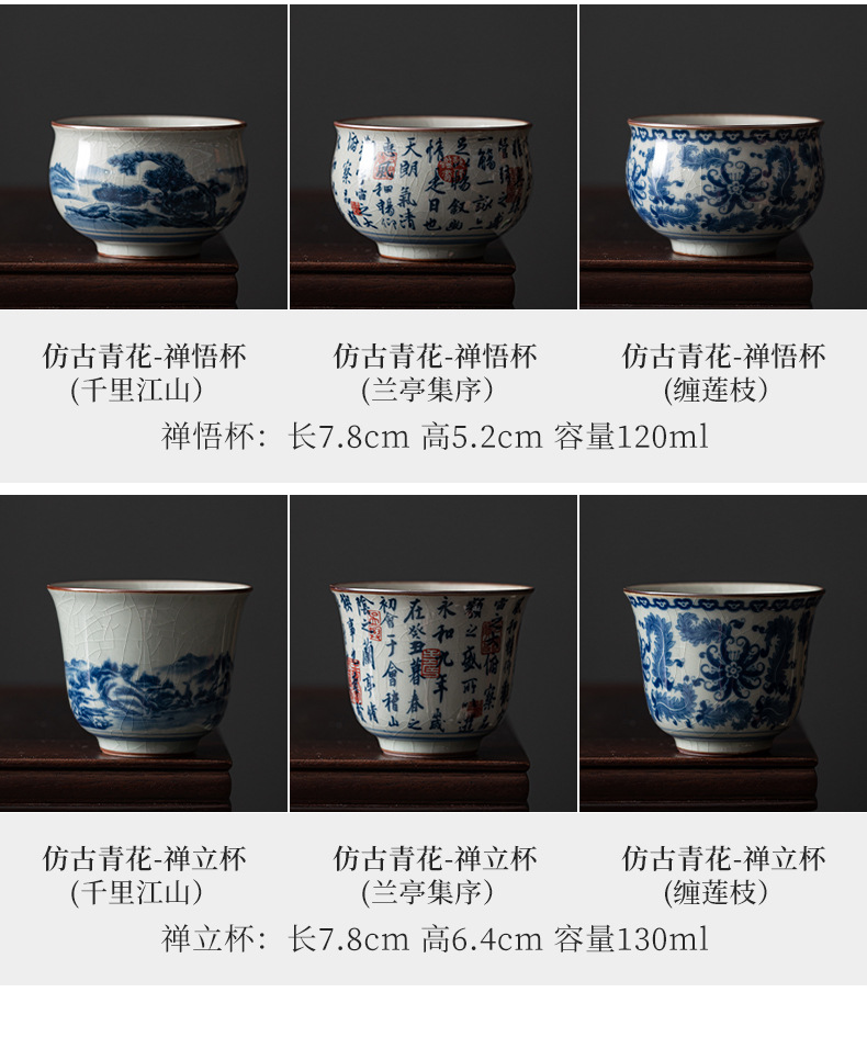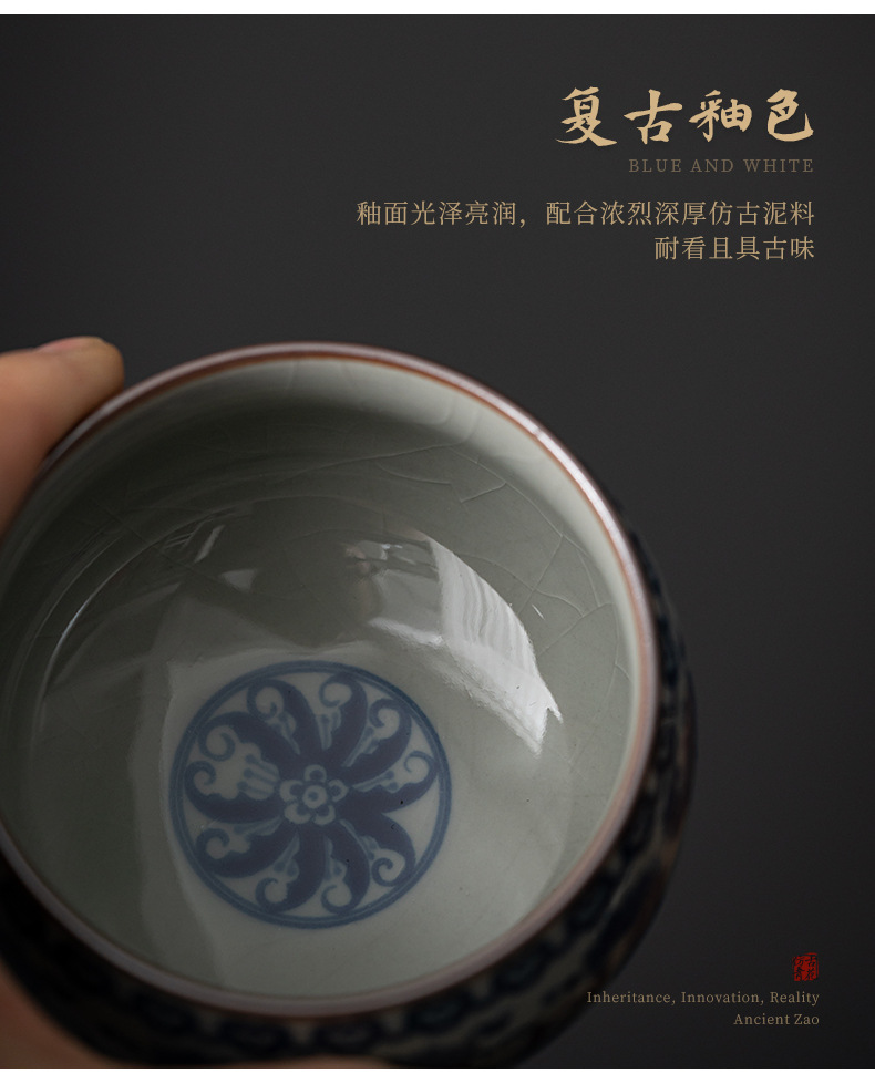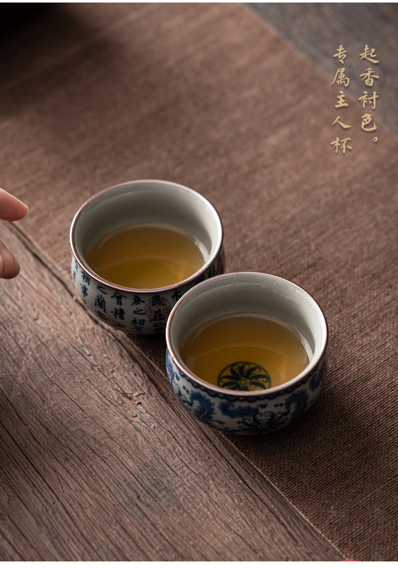 - Cốc chủ nhân gốm sứ dày màu xanh và trắng cổ cốc đơn Lanting chuỗi Retro tách trà nhỏ chén trà chén trà Bộ trà Kung Fu