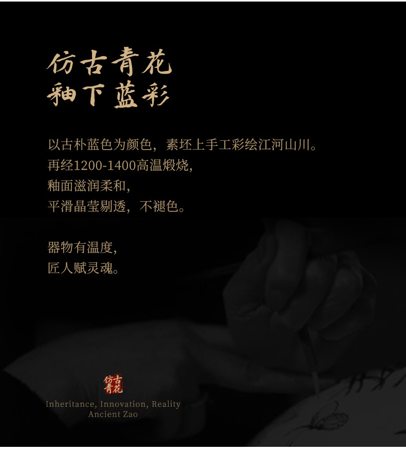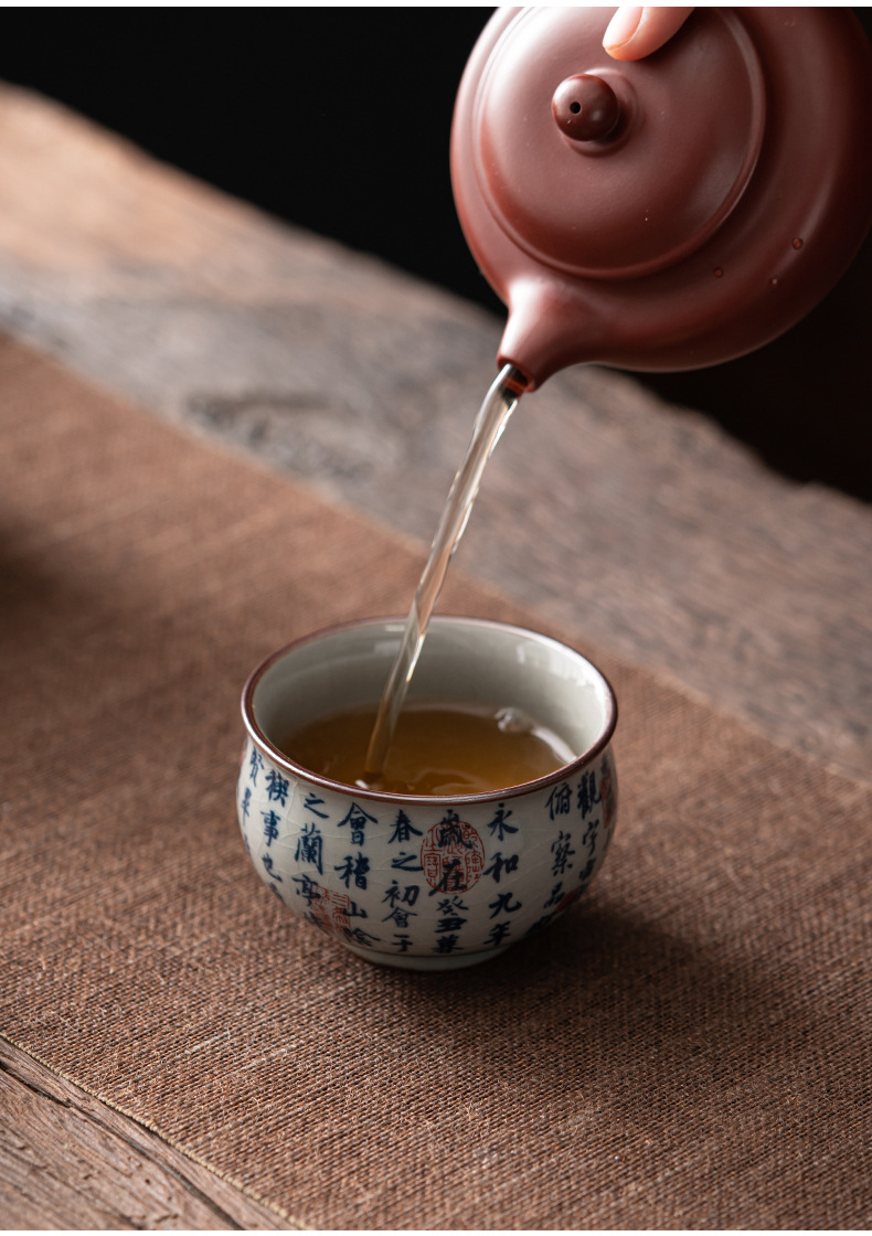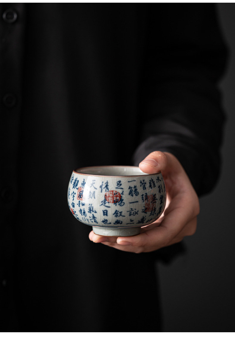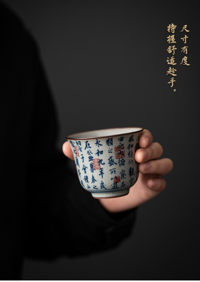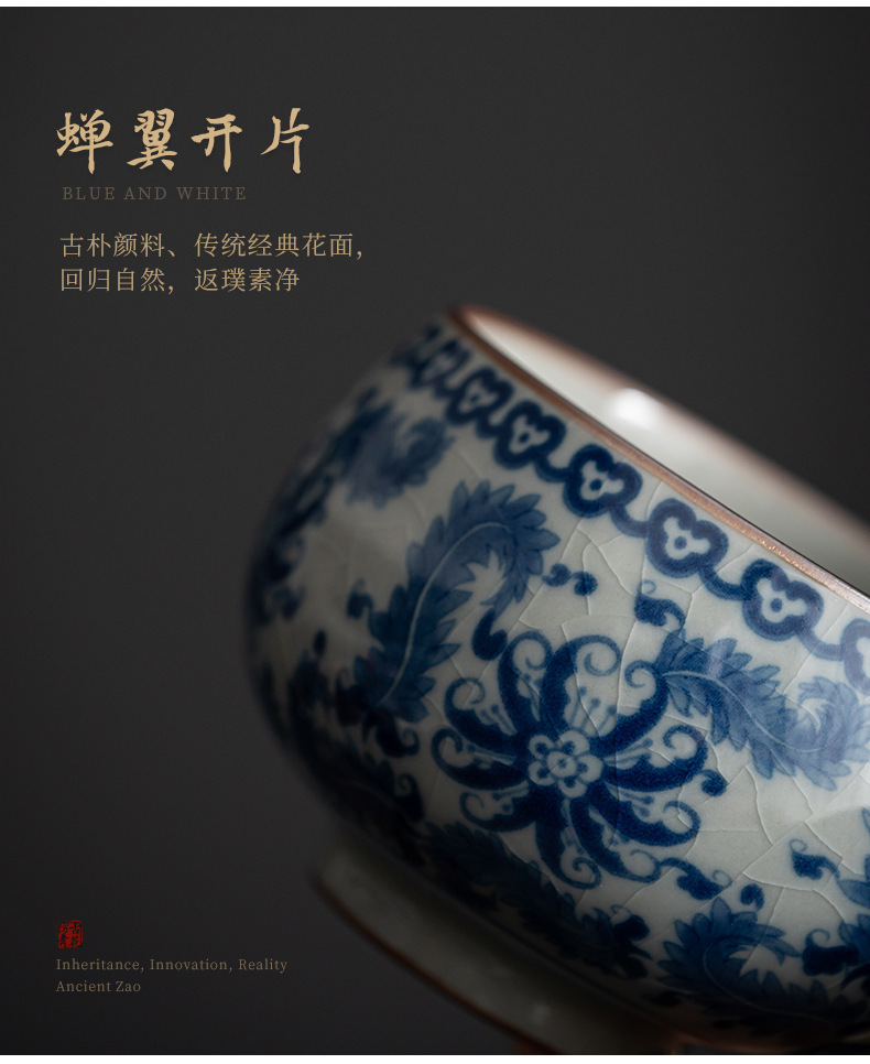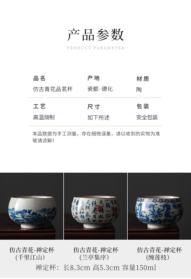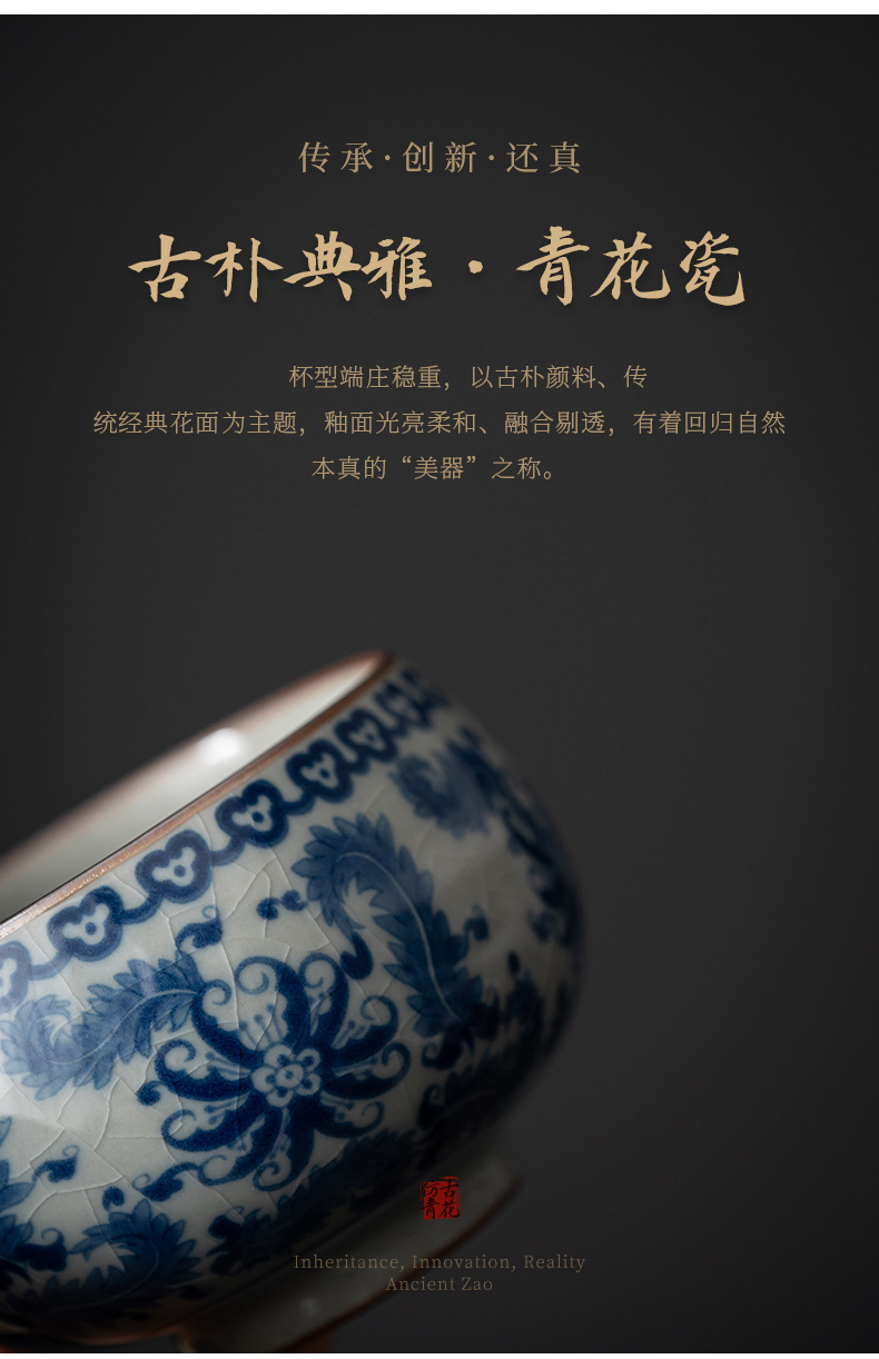 - Cốc chủ nhân gốm sứ dày màu xanh và trắng cổ cốc đơn Lanting chuỗi Retro tách trà nhỏ chén trà chén trà Bộ trà Kung Fu