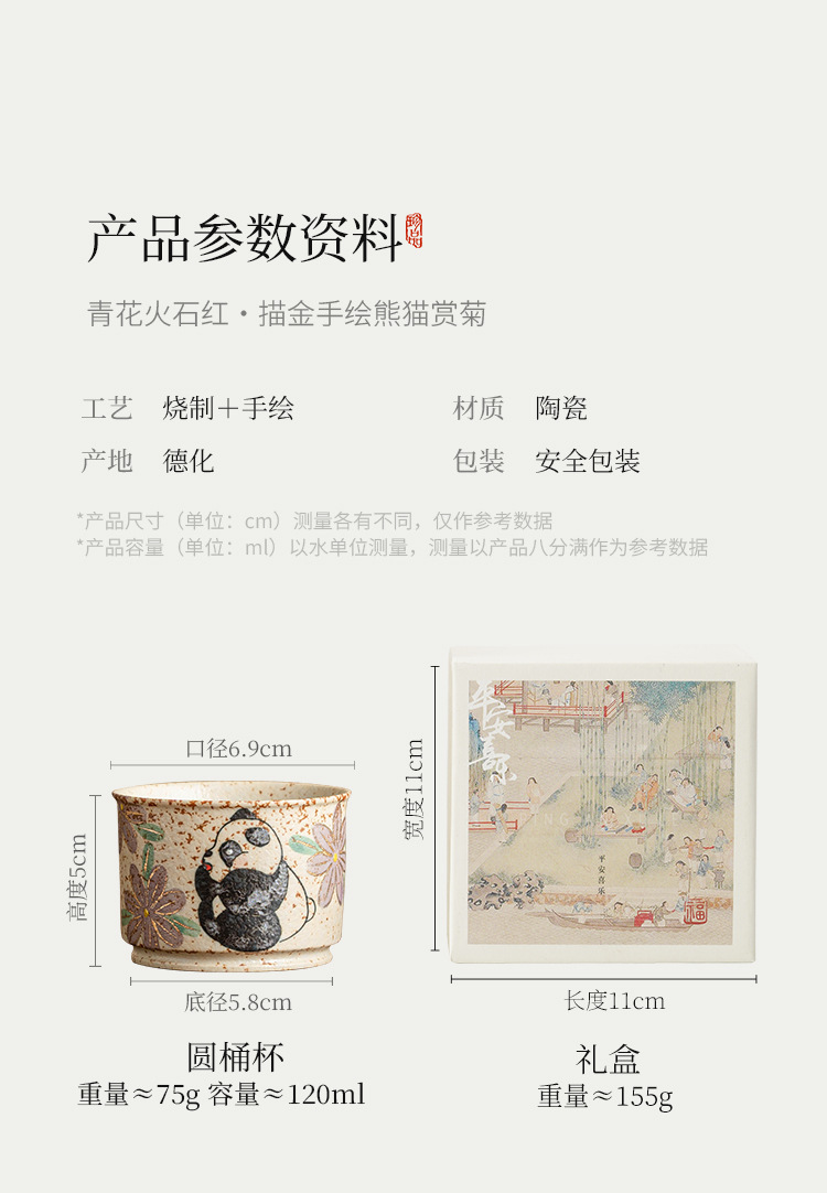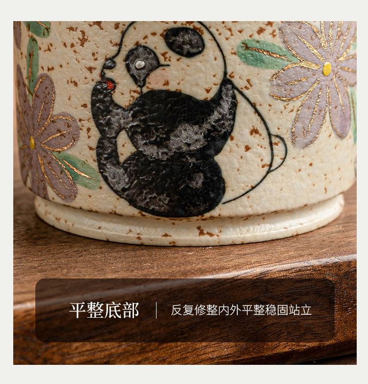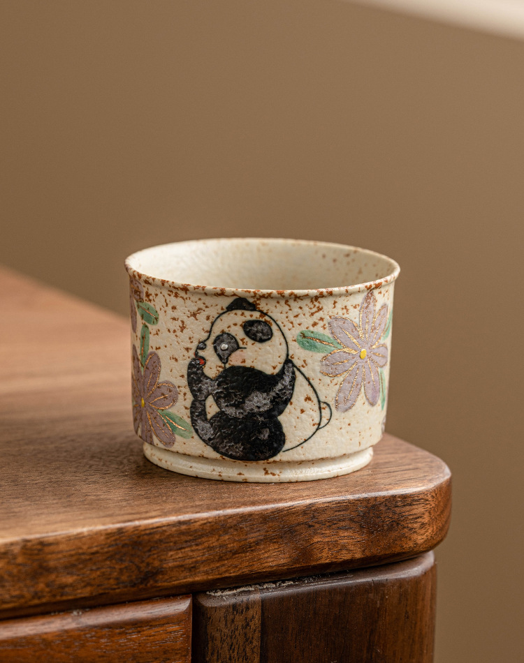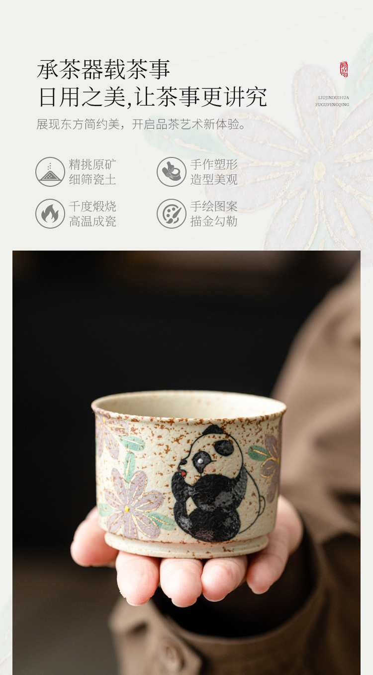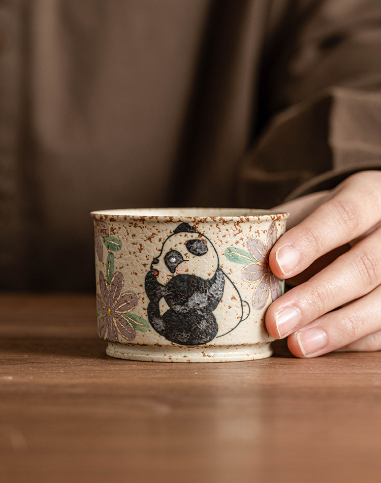 - Cốc chủ nhân gốm sứ đỏ đá lửa trắng chạm khắc vàng gấu trúc vẽ tay hoa cúc cốc tròn cốc trà lớn gia dụng