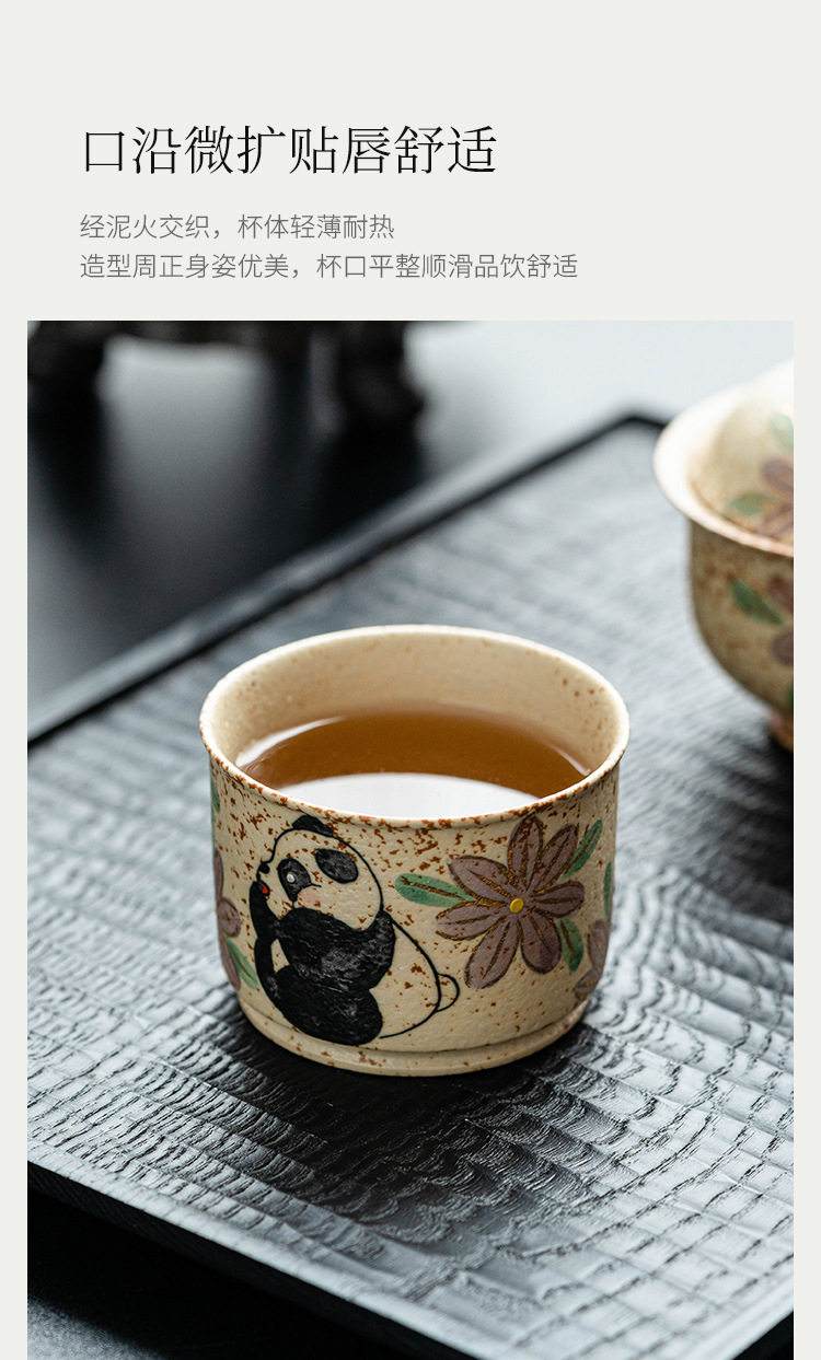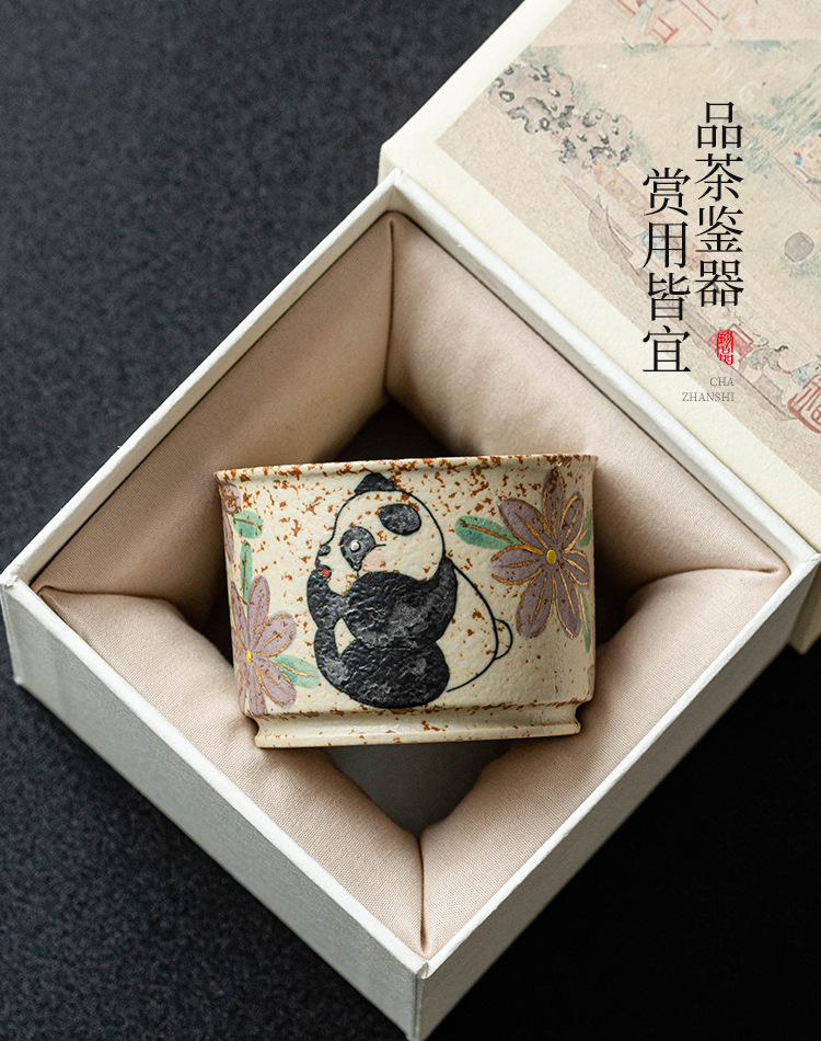 Cốc chủ nhân gốm sứ đỏ đá lửa trắng chạm khắc vàng gấu trúc vẽ tay hoa cúc cốc tròn cốc trà lớn gia dụng
