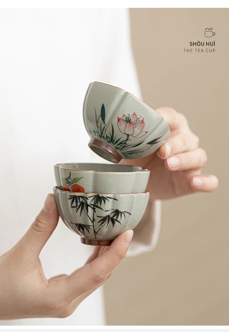 Cốc chủ nhân gốm vẽ tay Ge Kiln cốc đơn dành cho nam và nữ cao cấp Kung Fu mở cổ điển tách trà chén trà chén trà bát