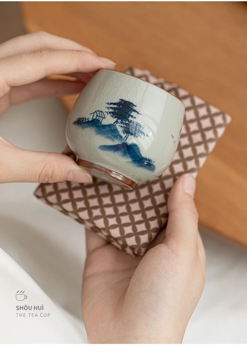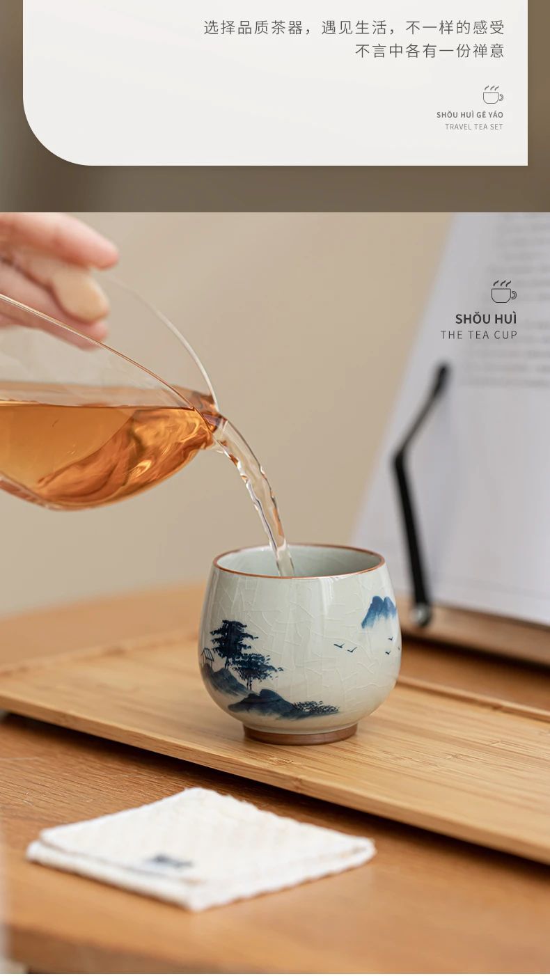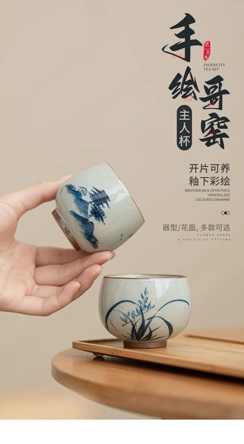 - Cốc chủ nhân gốm vẽ tay Ge Kiln cốc đơn dành cho nam và nữ cao cấp Kung Fu mở cổ điển tách trà chén trà chén trà bát