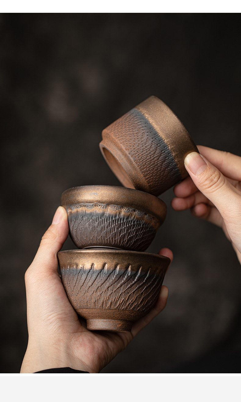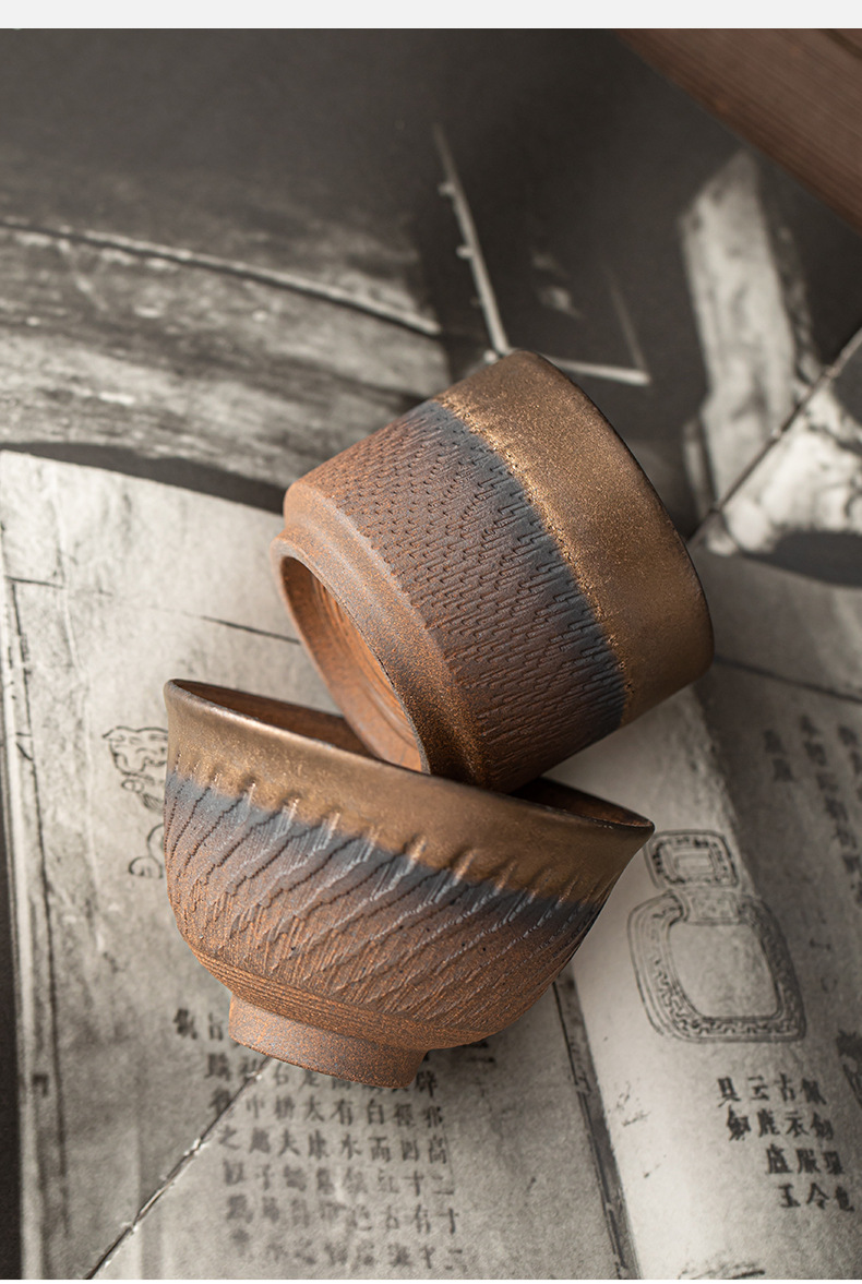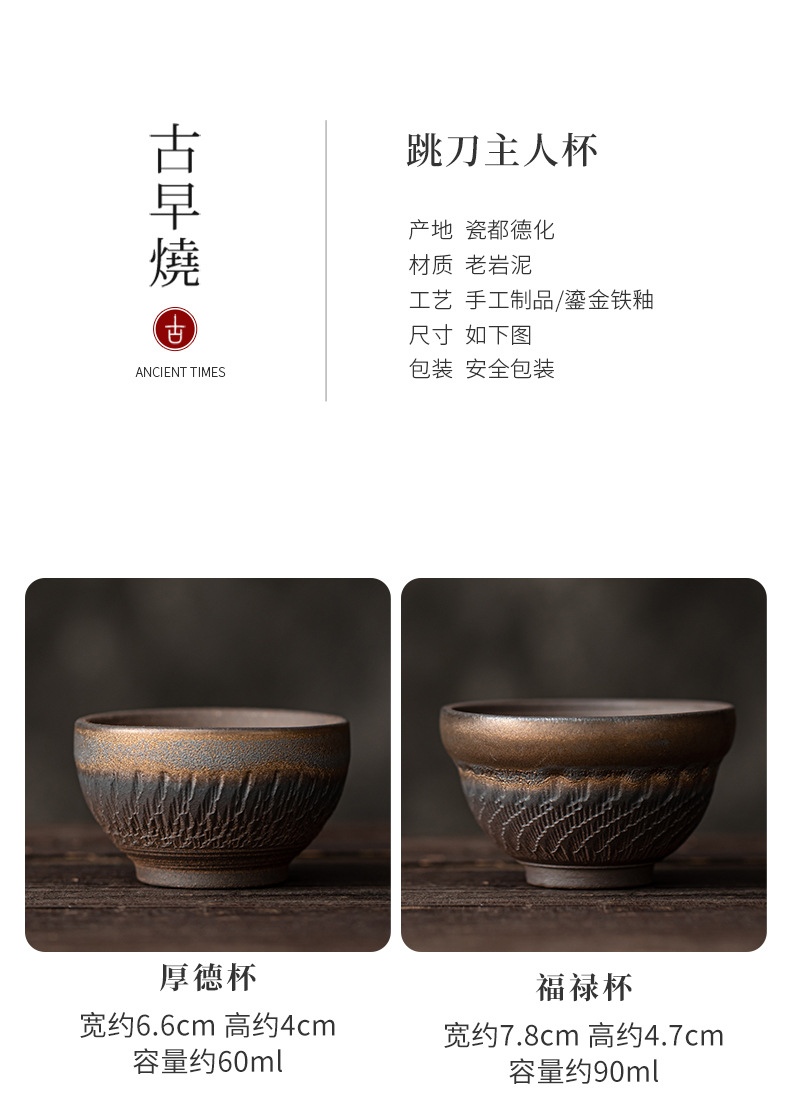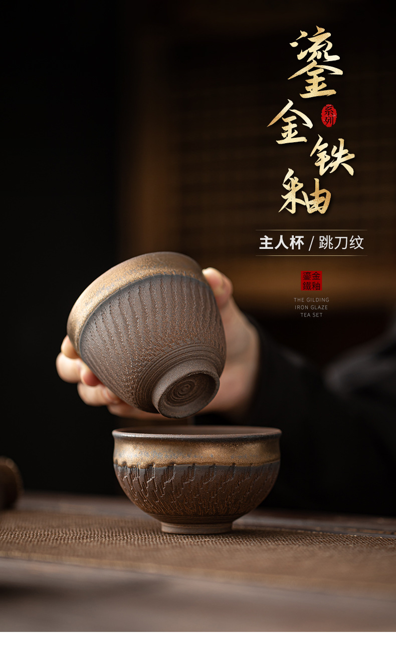 - Cốc chủ nhân hình dao nhảy tráng men mạ vàng, cốc trà, bộ trà công phu gốm sứ, cốc trà, cốc đơn thủ công cổ điển