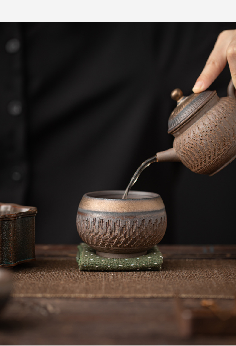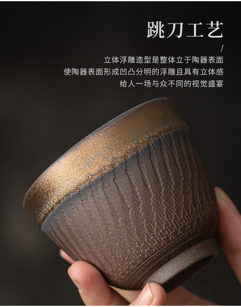Cốc chủ nhân hình dao nhảy tráng men mạ vàng, cốc trà, bộ trà công phu gốm sứ, cốc trà, cốc đơn thủ công cổ điển
