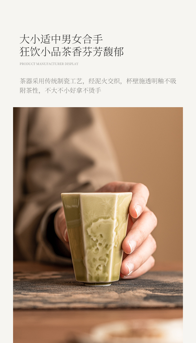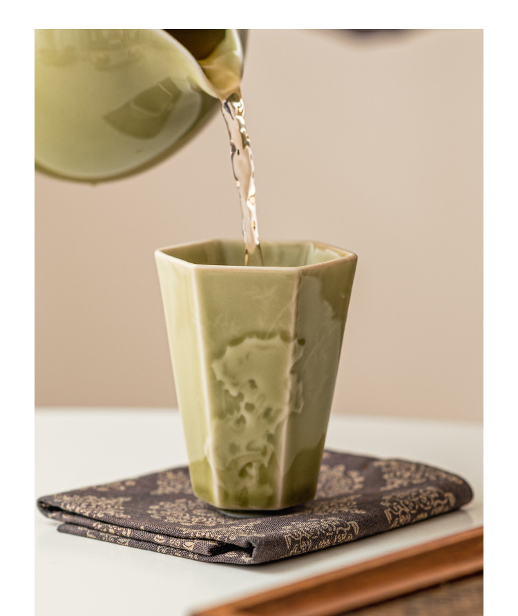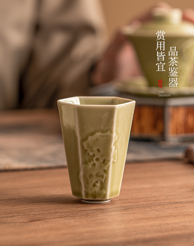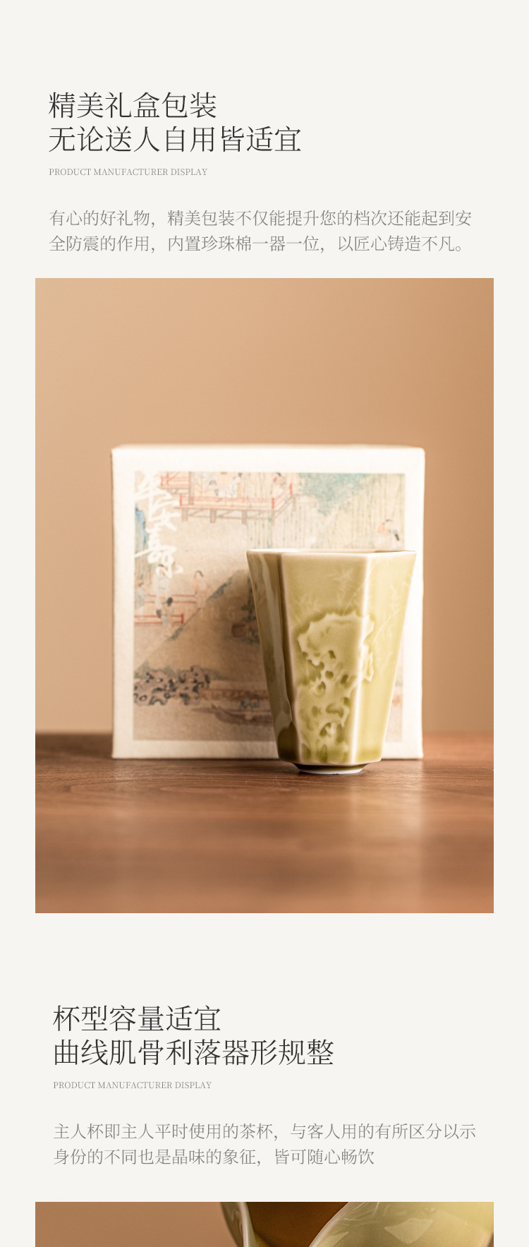 - Cốc chủ nhân hình lục giác lò Yaozhou cốc đơn cốc uống trà phù điêu cao cấp Trung Quốc cốc trà đơn bộ trà Kung Fu hộp quà