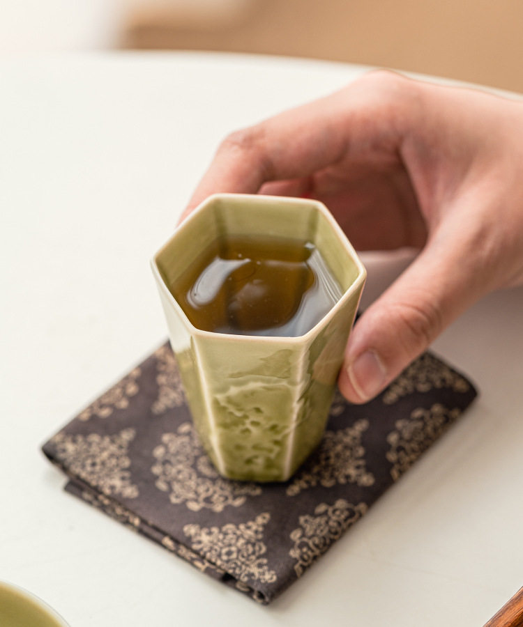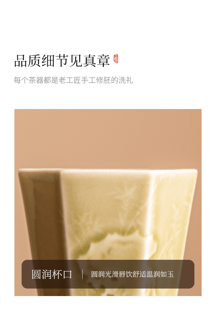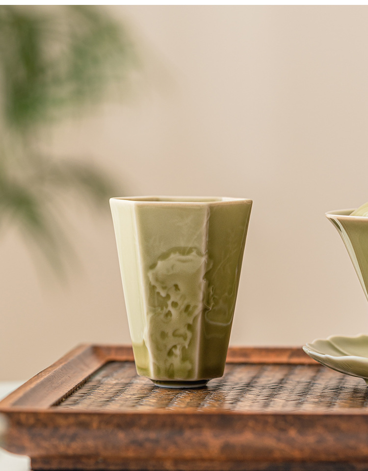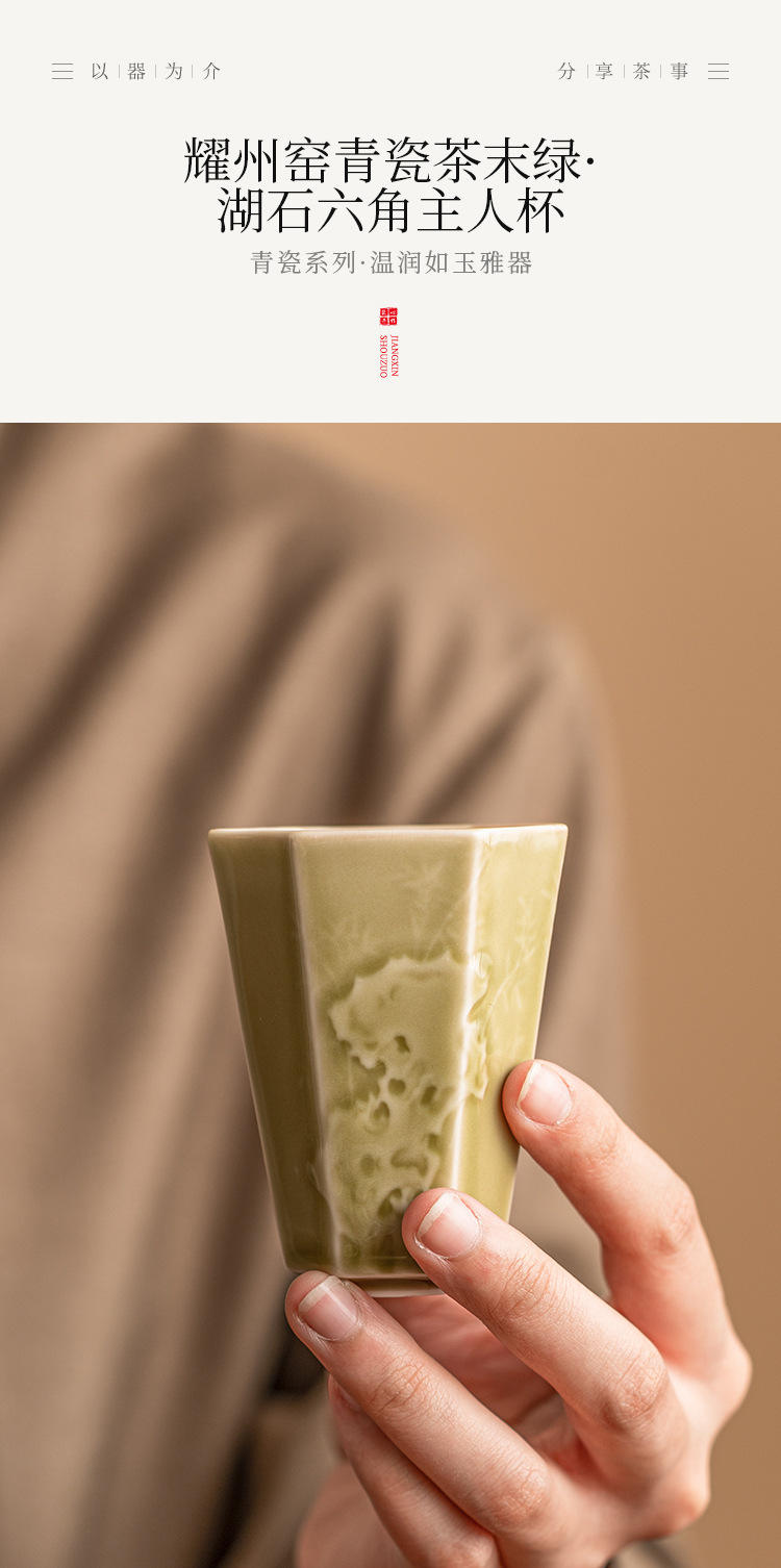 - Cốc chủ nhân hình lục giác lò Yaozhou cốc đơn cốc uống trà phù điêu cao cấp Trung Quốc cốc trà đơn bộ trà Kung Fu hộp quà