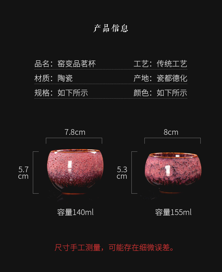 高档建盏主人杯茶杯茶具五行斗笠杯套装窑变陶瓷功夫茶杯高端