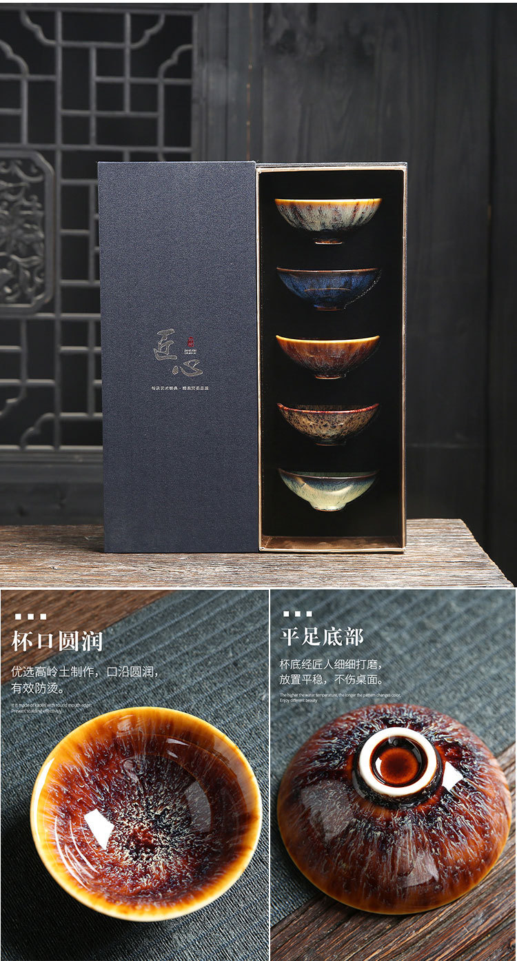 Cốc chủ nhân Jianzhan cao cấp tách trà Bộ đồ Trà Ngũ Hành Bộ Cốc Cốc Cốc gốm sứ Kung Fu cao cấp