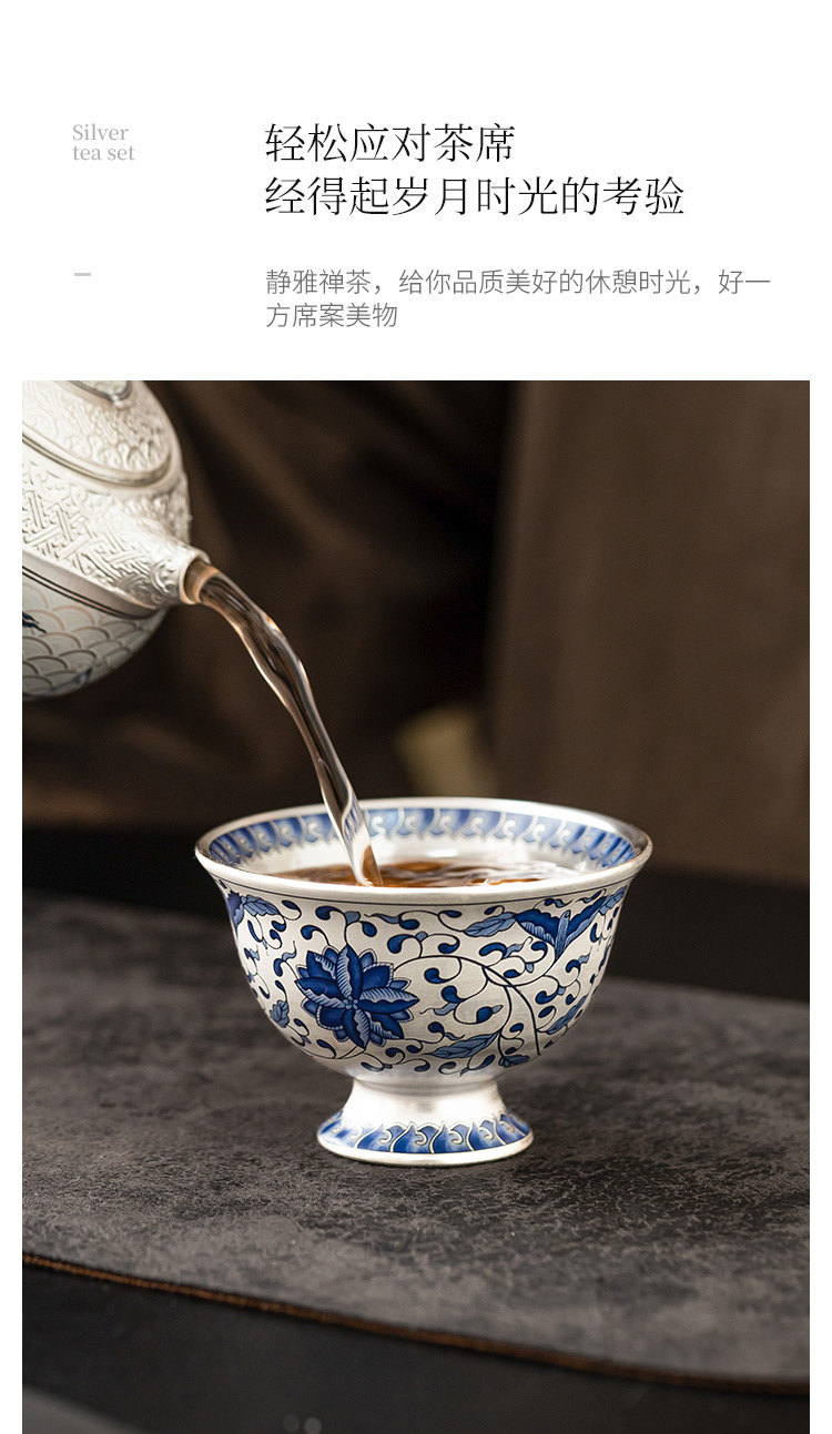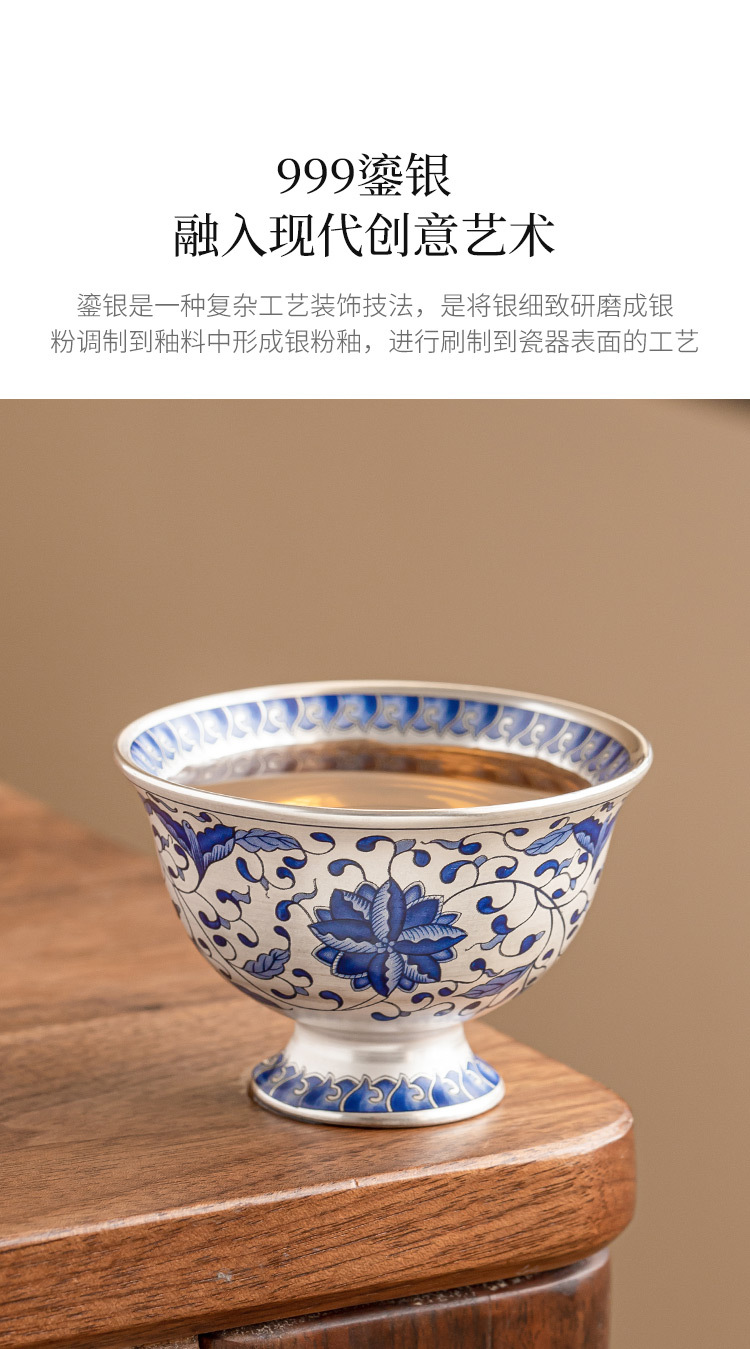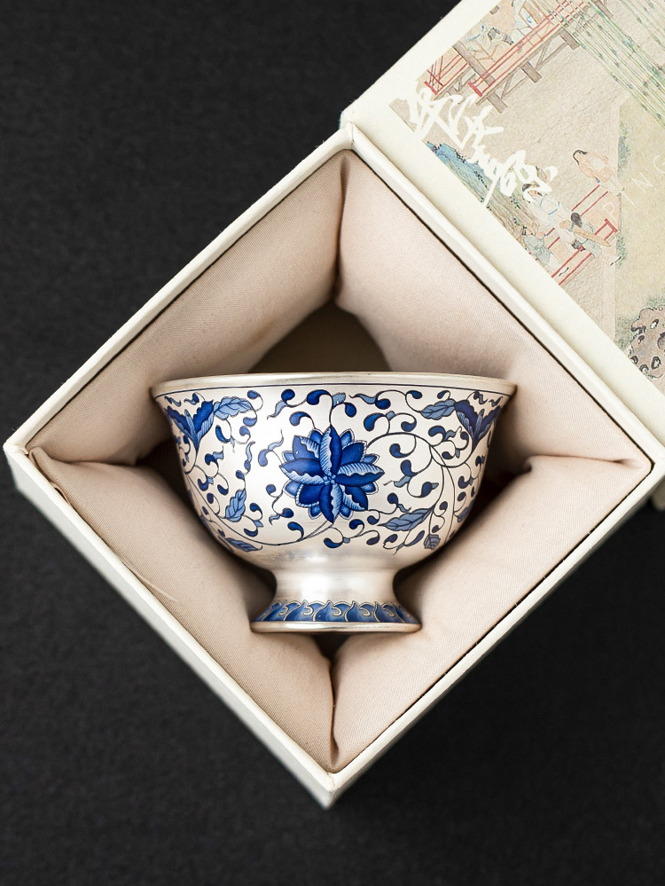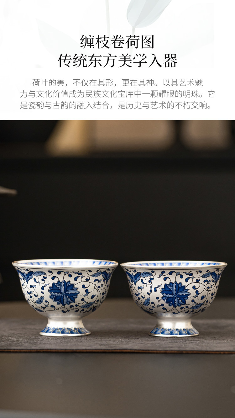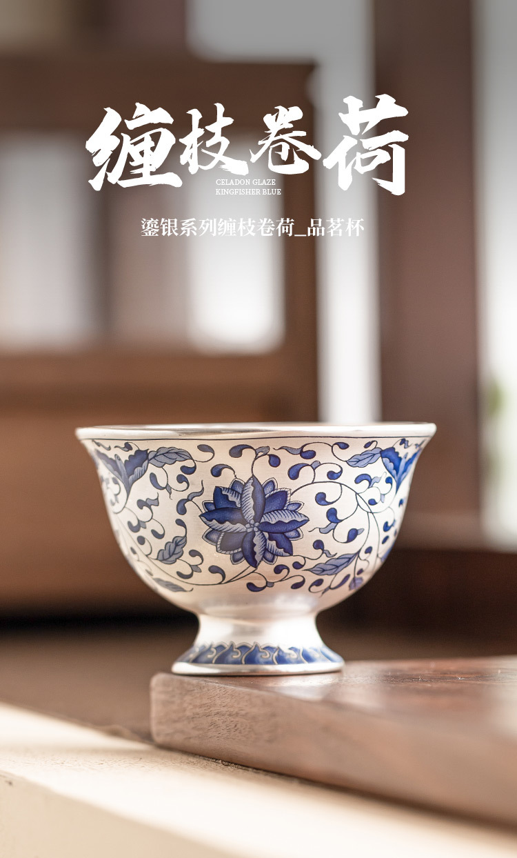 Cốc chủ nhân mạ bạc 999 cốc sen cuộn xoắn cao cấp bộ trà kungfu cốc trà gia dụng