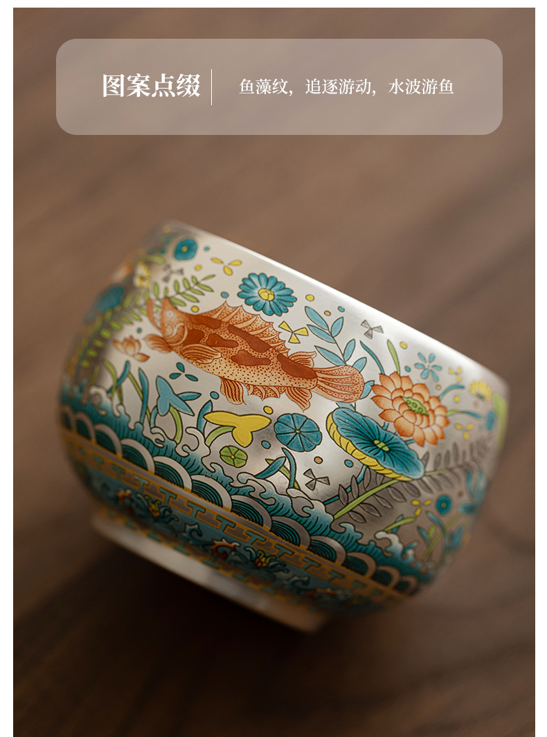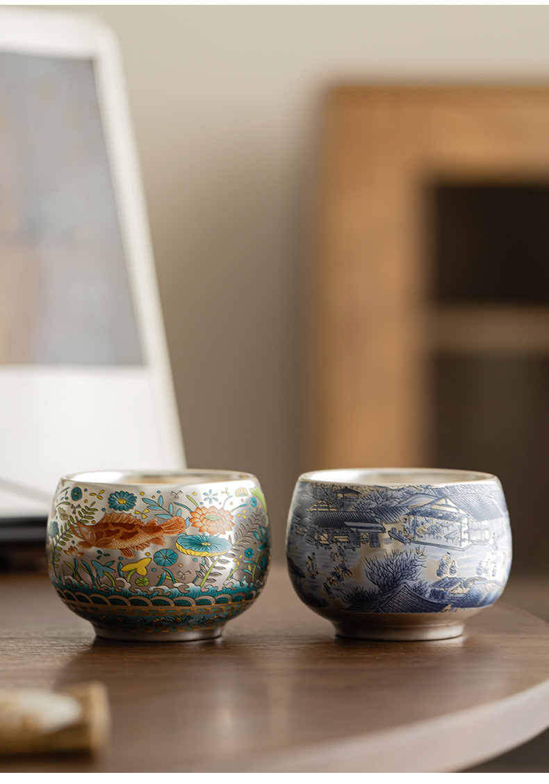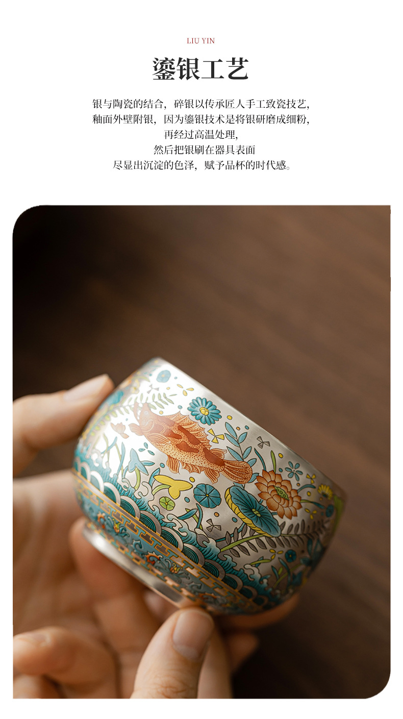 - Cốc chủ nhân mạ bạc hoa văn tảo cá Chiyo tách trà cốc gốm sứ mạ bạc bát trà dung tích lớn cốc đơn