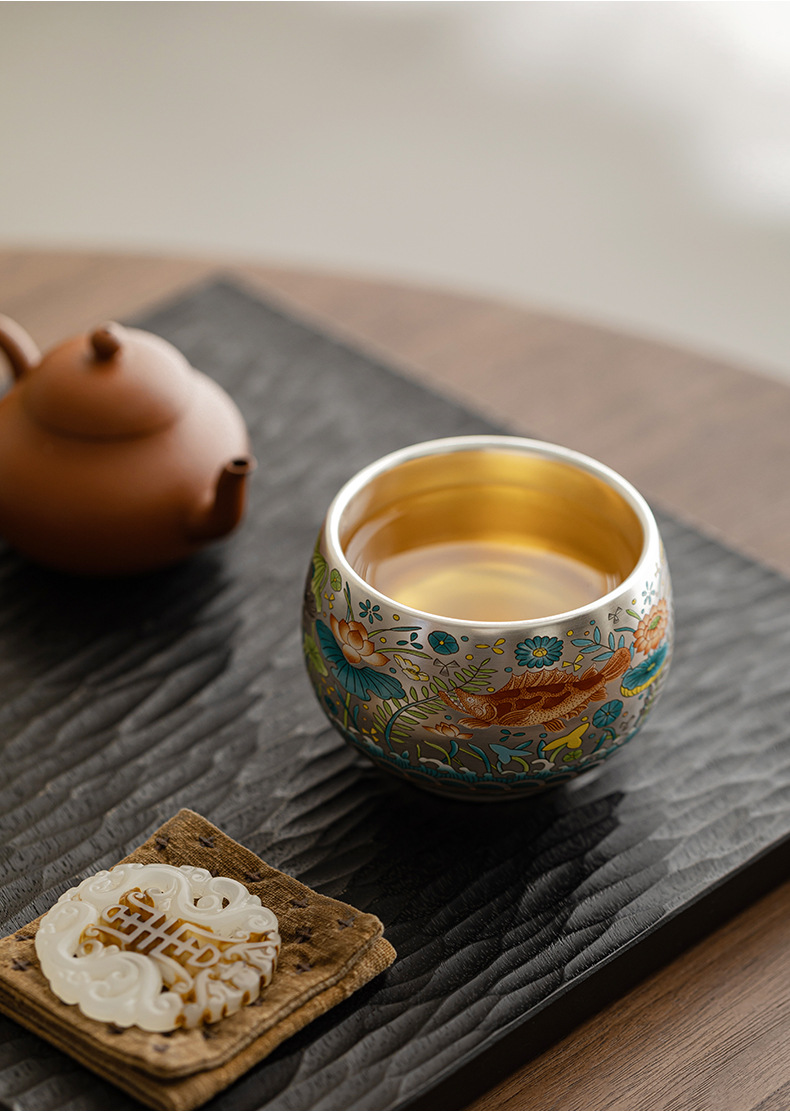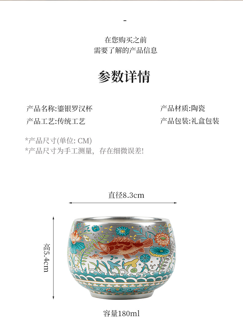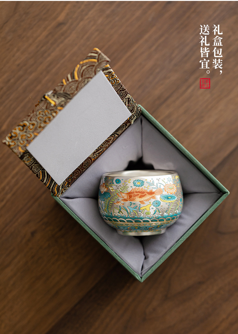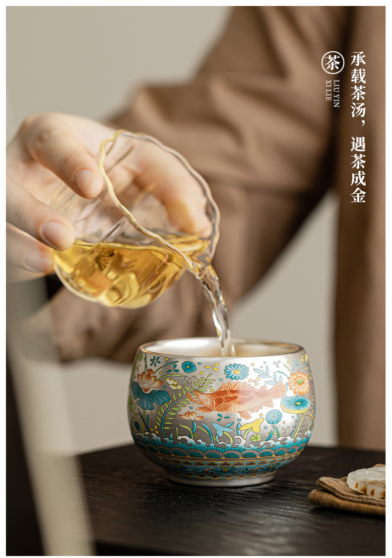 - Cốc chủ nhân mạ bạc hoa văn tảo cá Chiyo tách trà cốc gốm sứ mạ bạc bát trà dung tích lớn cốc đơn