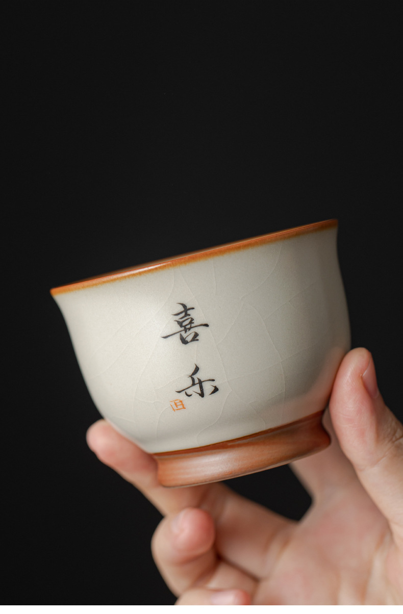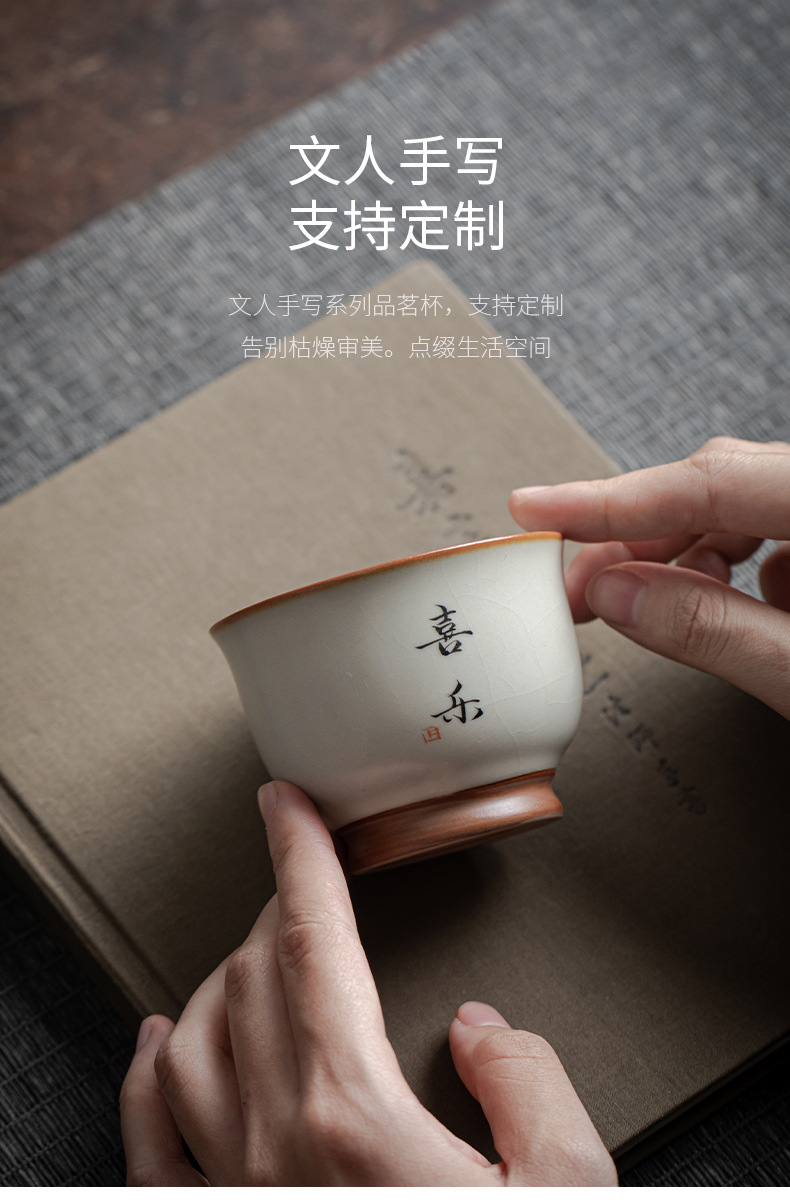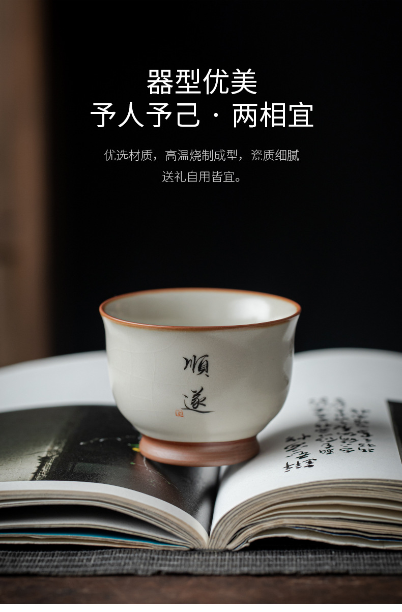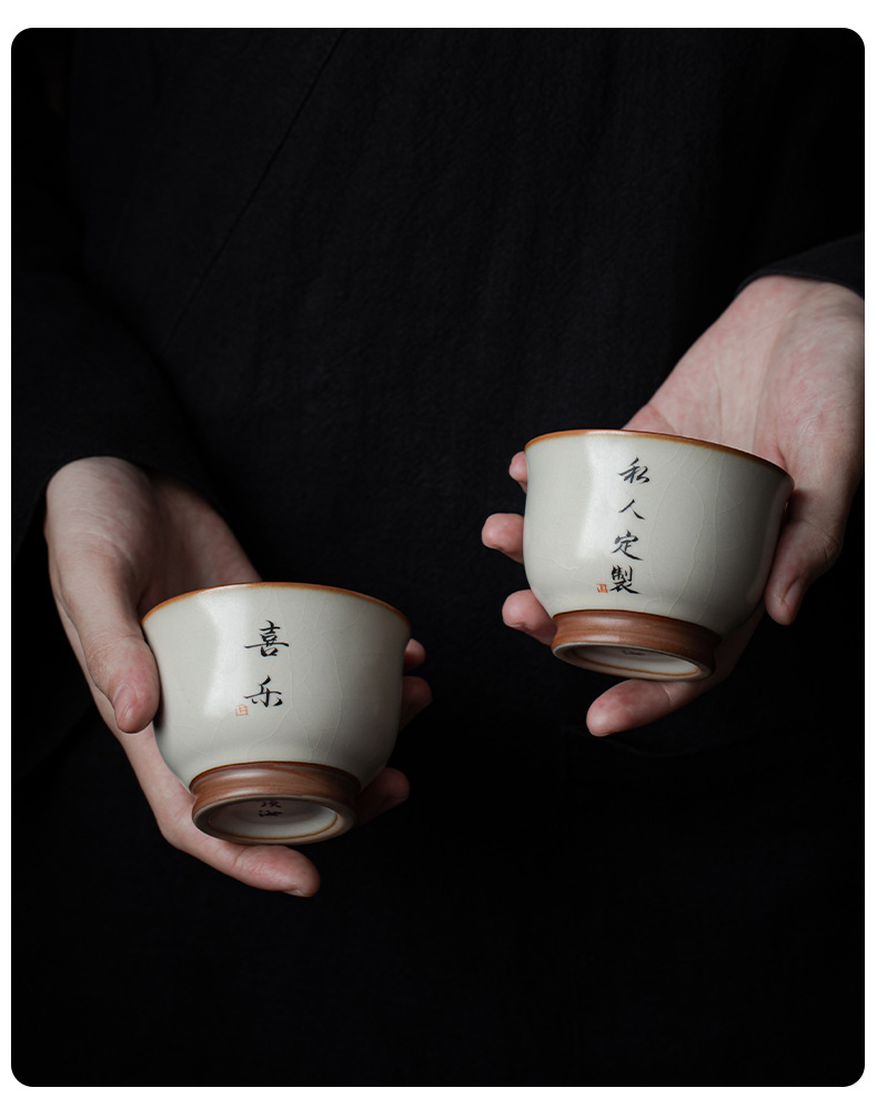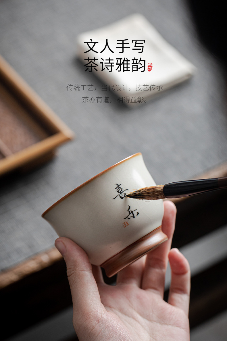 - Cốc chủ nhân màu be Ru Kiln bát chén trà lớn gia dụng cốc đơn cốc gốm sứ sản phẩm viết tay chuyên dụng cá nhân cốc trà