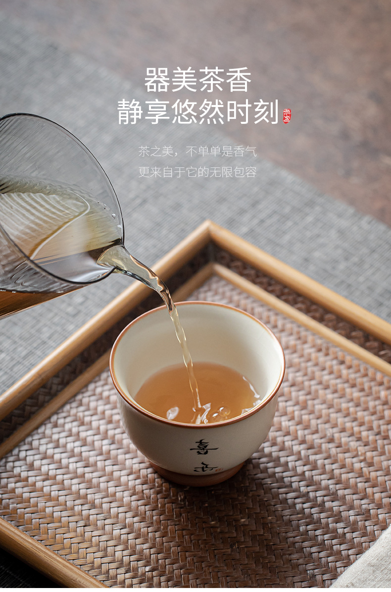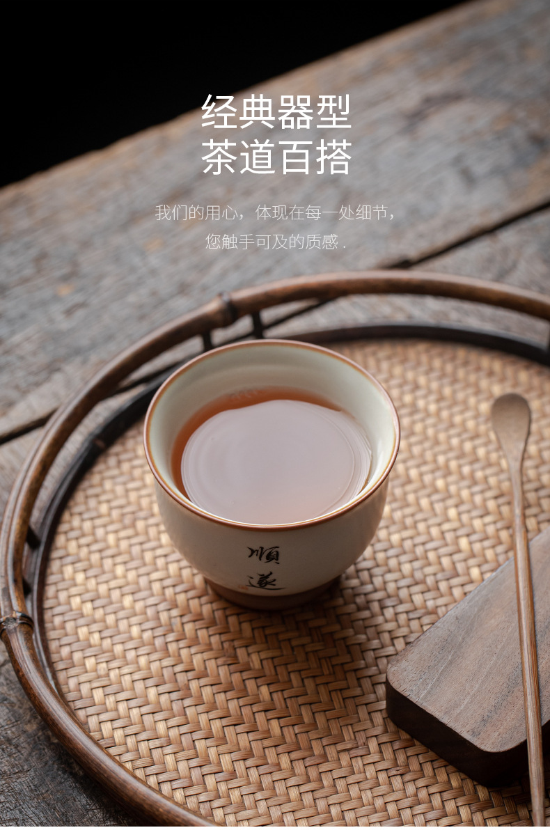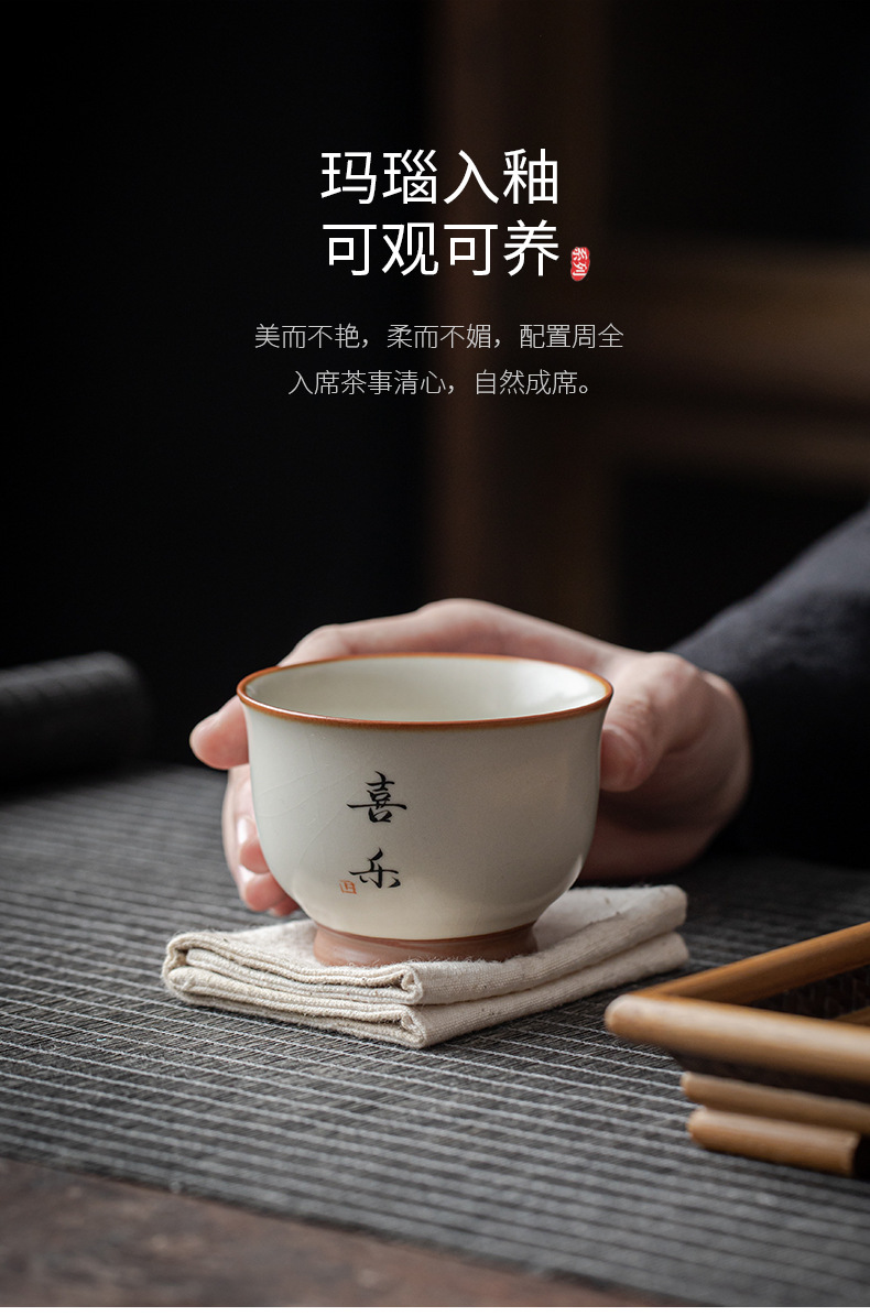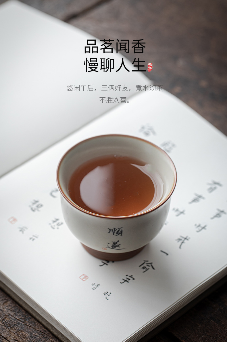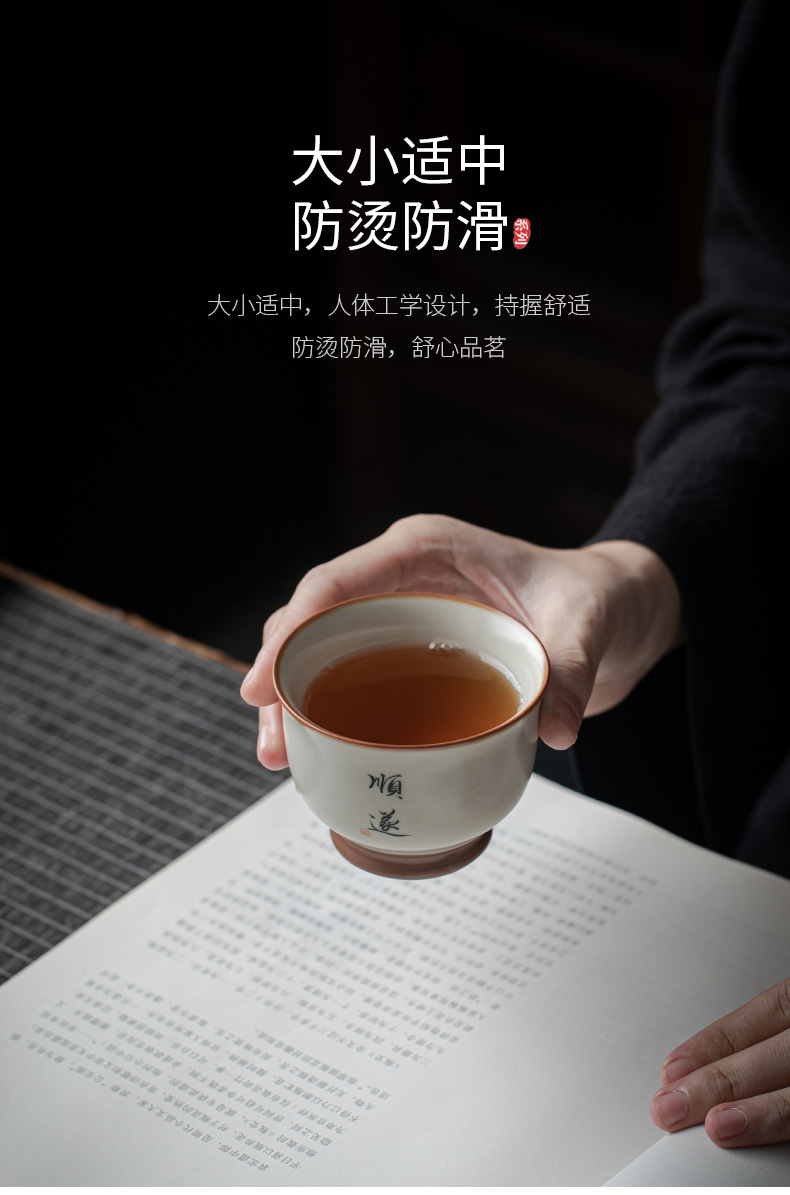 - Cốc chủ nhân màu be Ru Kiln bát chén trà lớn gia dụng cốc đơn cốc gốm sứ sản phẩm viết tay chuyên dụng cá nhân cốc trà