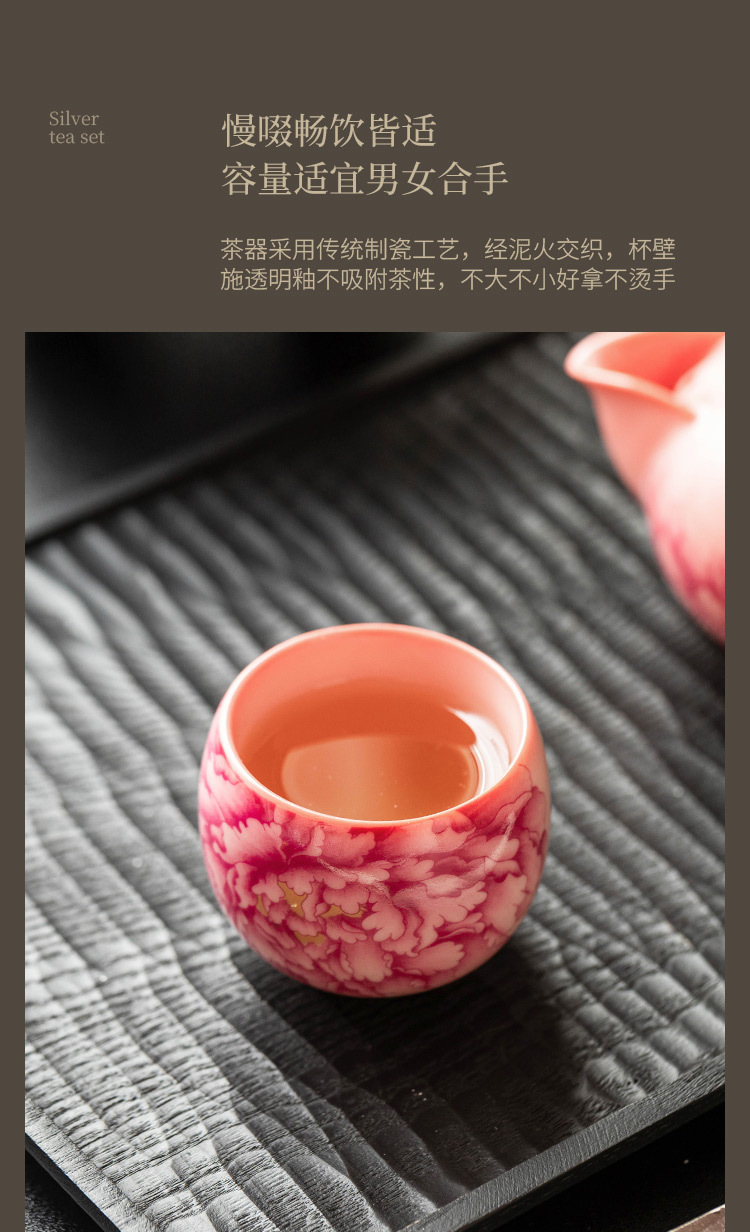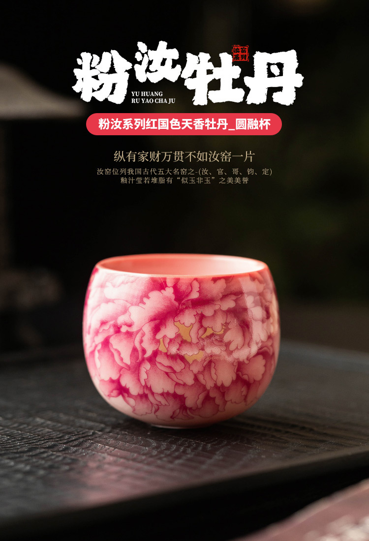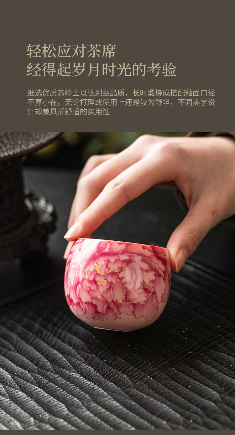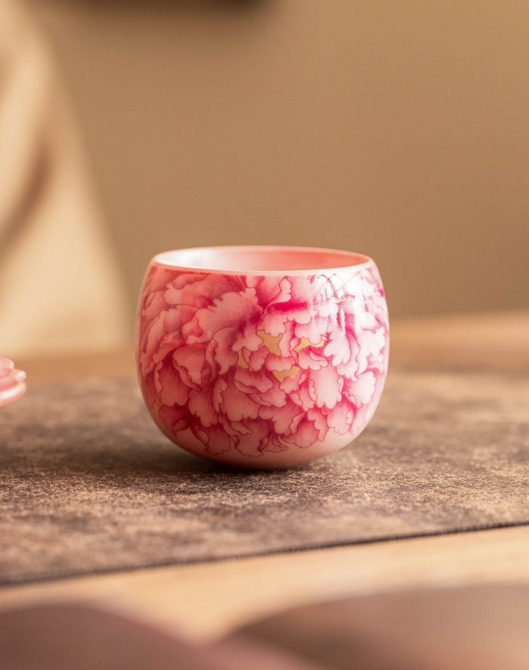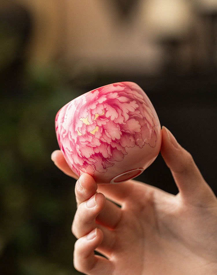 Cốc chủ nhân màu hồng, màu đỏ quốc gia, hoa mẫu đơn, bộ trà gốm sứ gia dụng, tách trà, tách trà, tách đơn