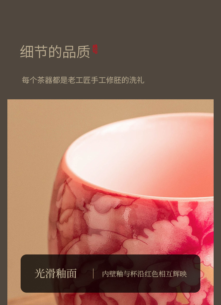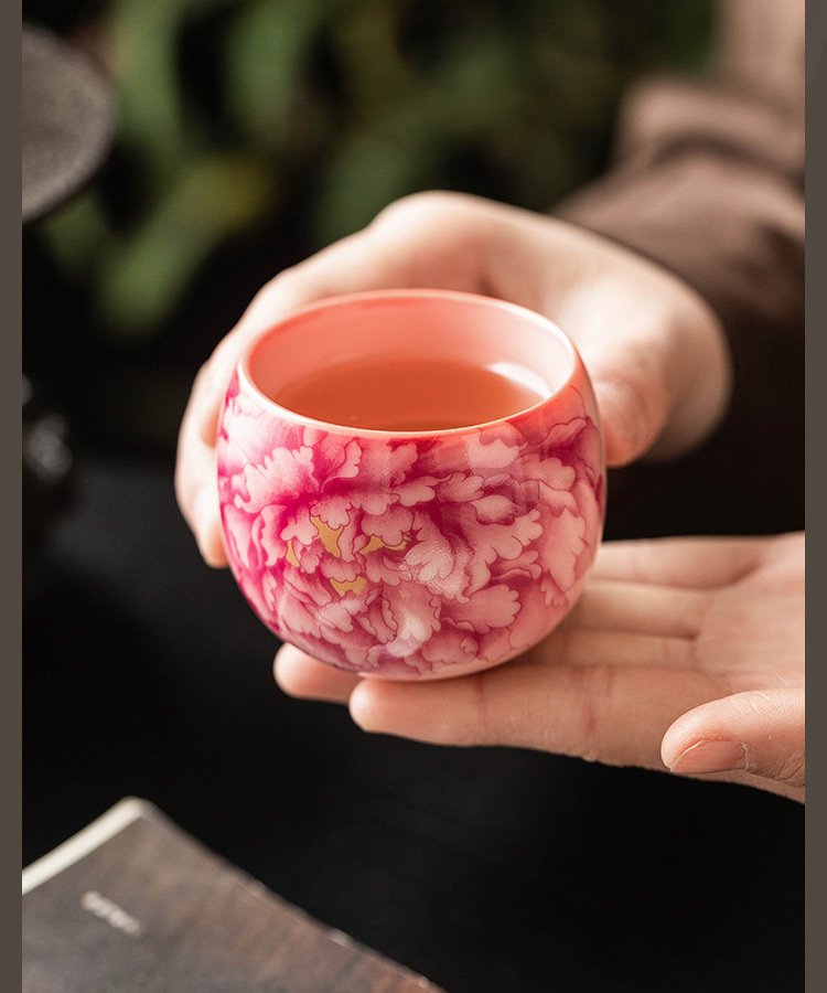 - Cốc chủ nhân màu hồng, màu đỏ quốc gia, hoa mẫu đơn, bộ trà gốm sứ gia dụng, tách trà, tách trà, tách đơn