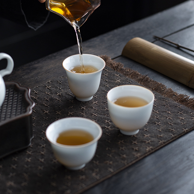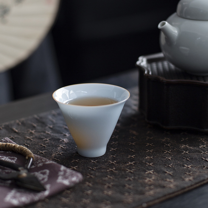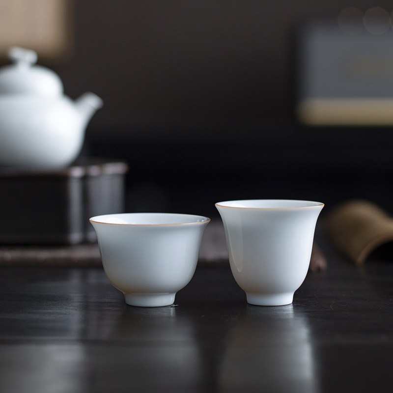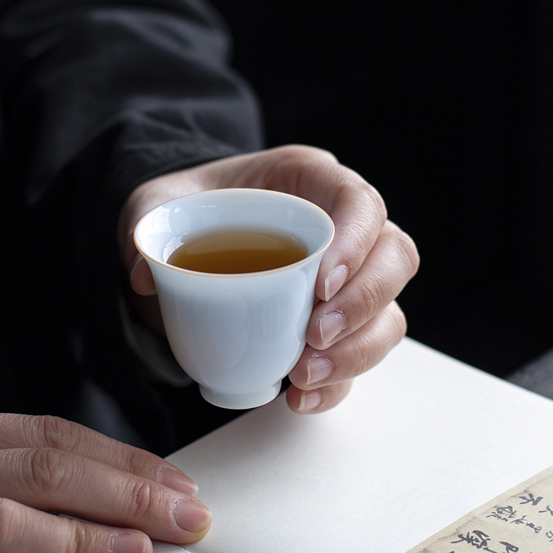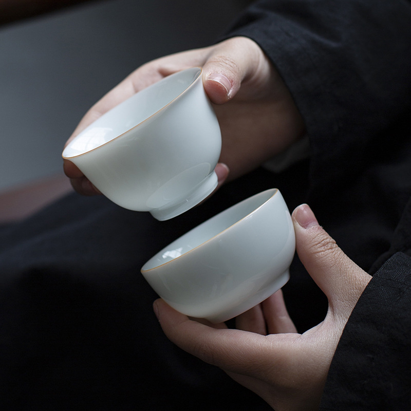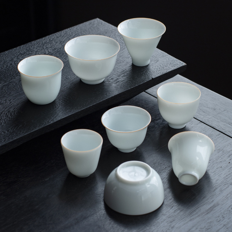 Cốc chủ nhân màu xanh bóng trắng sứ Đức Hoa cốc khách bào thai mỏng thủ công cốc trà cốc trà Kung Fu cốc trà uống trà gia dụng cốc trà kiểu Trung Quốc