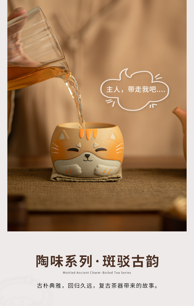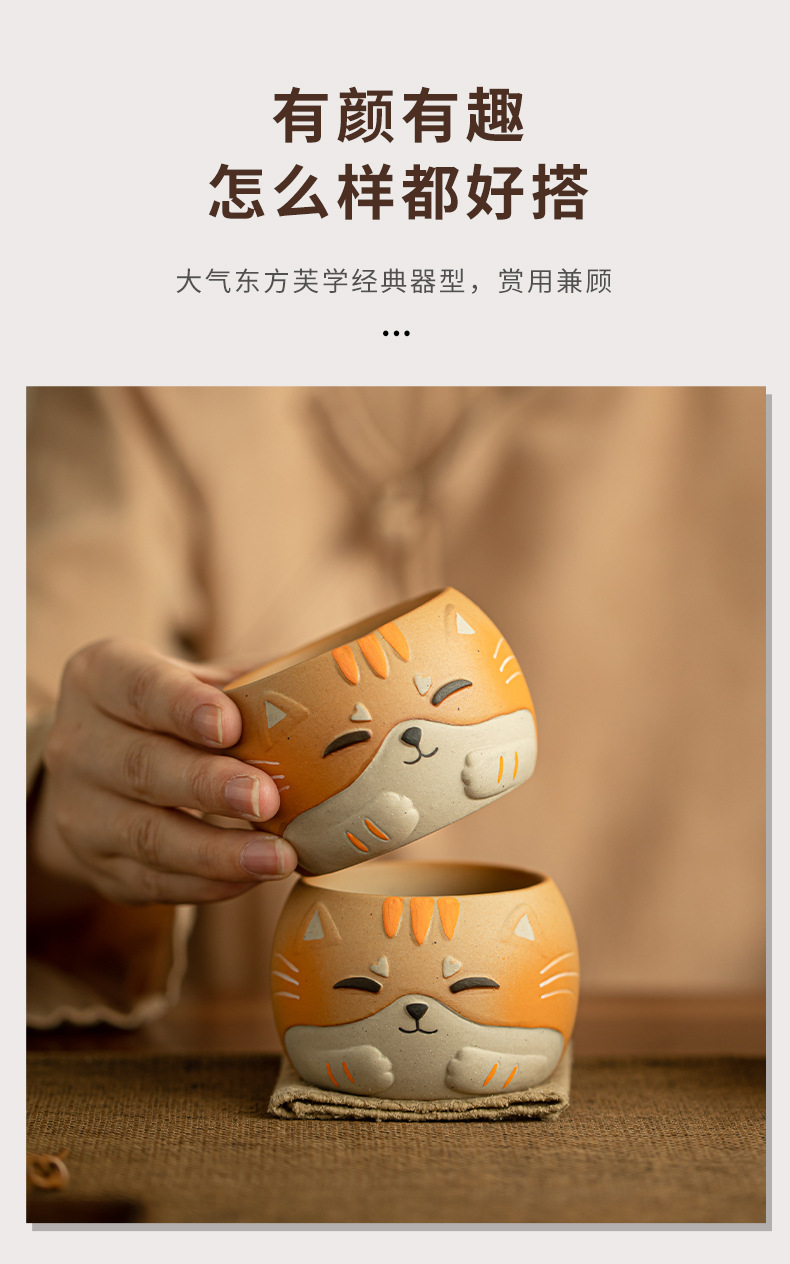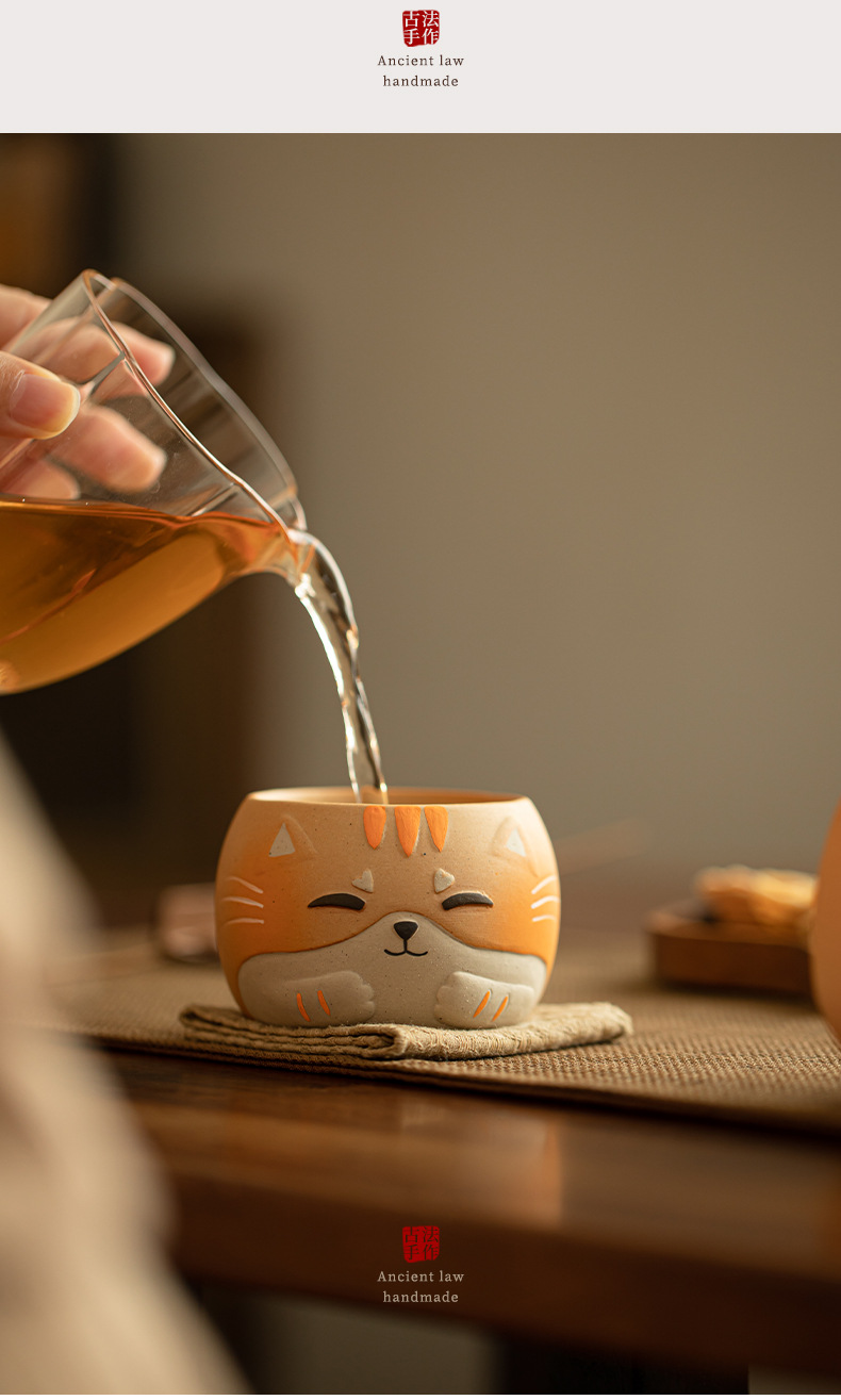 - Cốc chủ nhân mèo cá gỗ vẽ tay hoạt hình bộ tách trà dụng cụ trà kungfu gia dụng