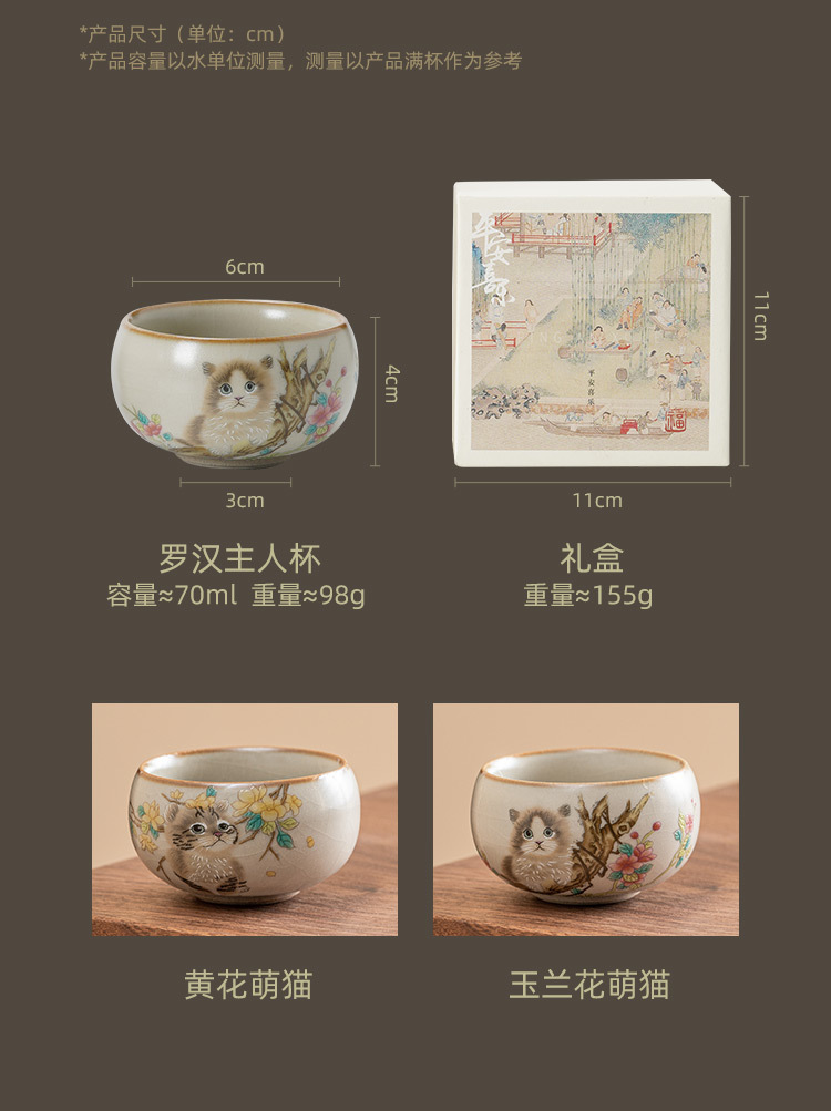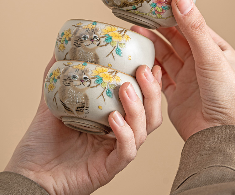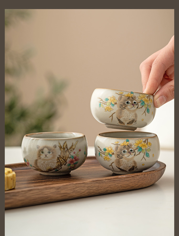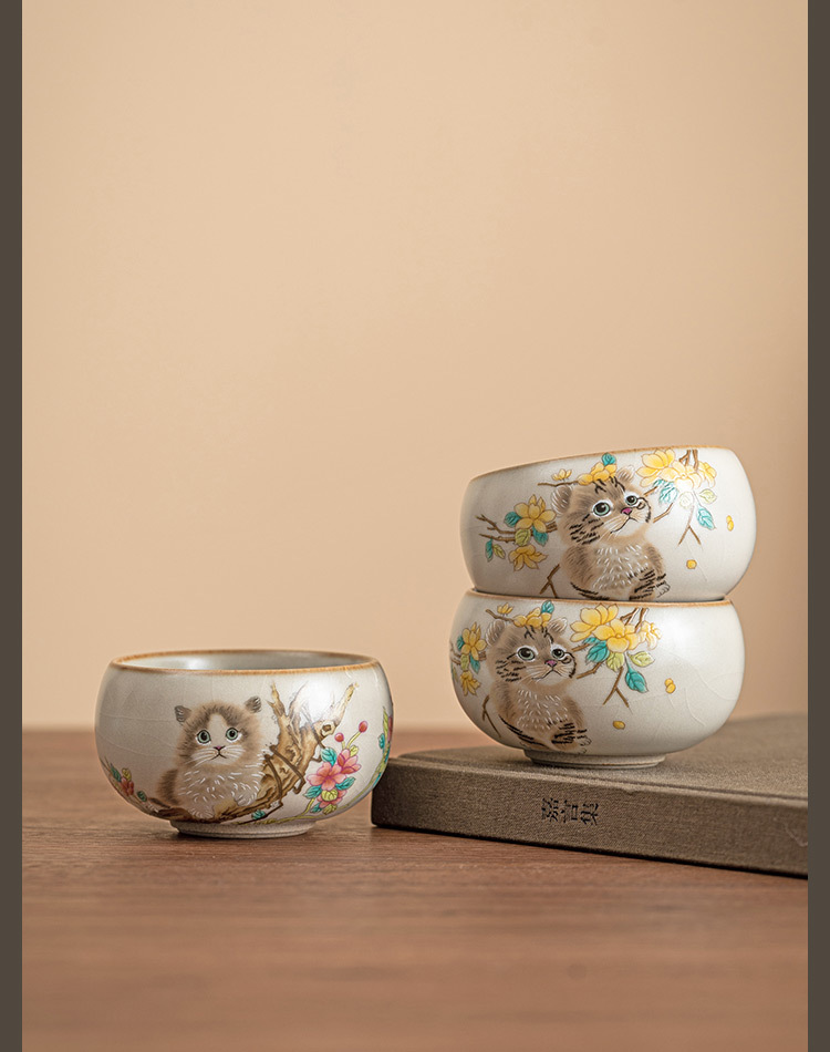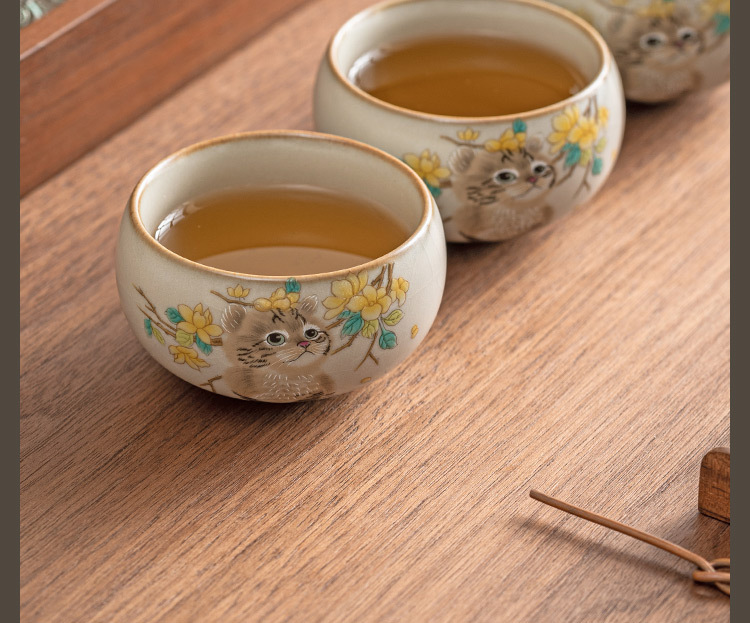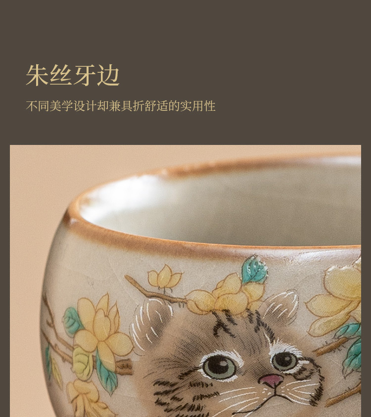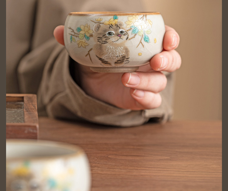 - Cốc chủ nhân mèo dễ thương hoa vàng Ru Kiln cốc đơn gia dụng có thể mở cốc uống trà cốc gốm sứ dễ thương cao cấp cốc trà
