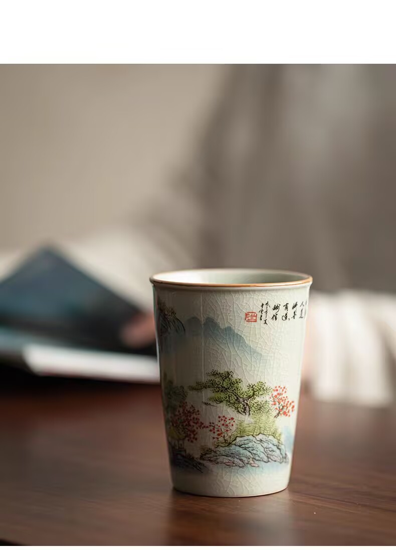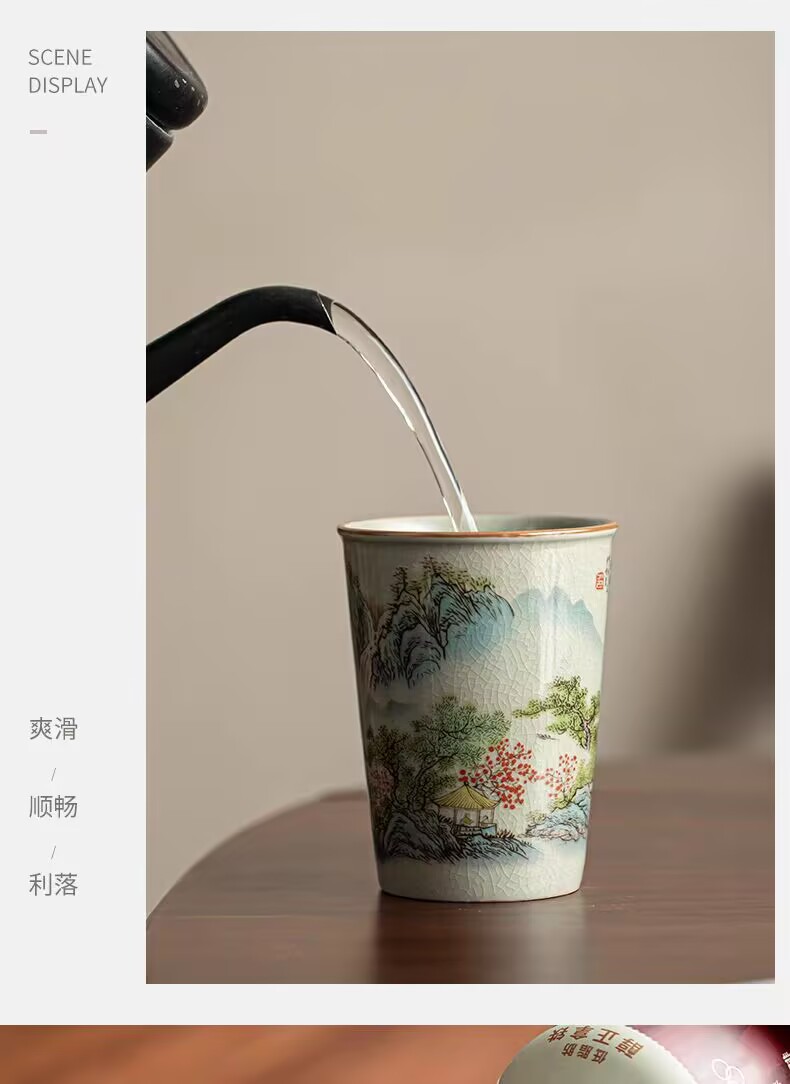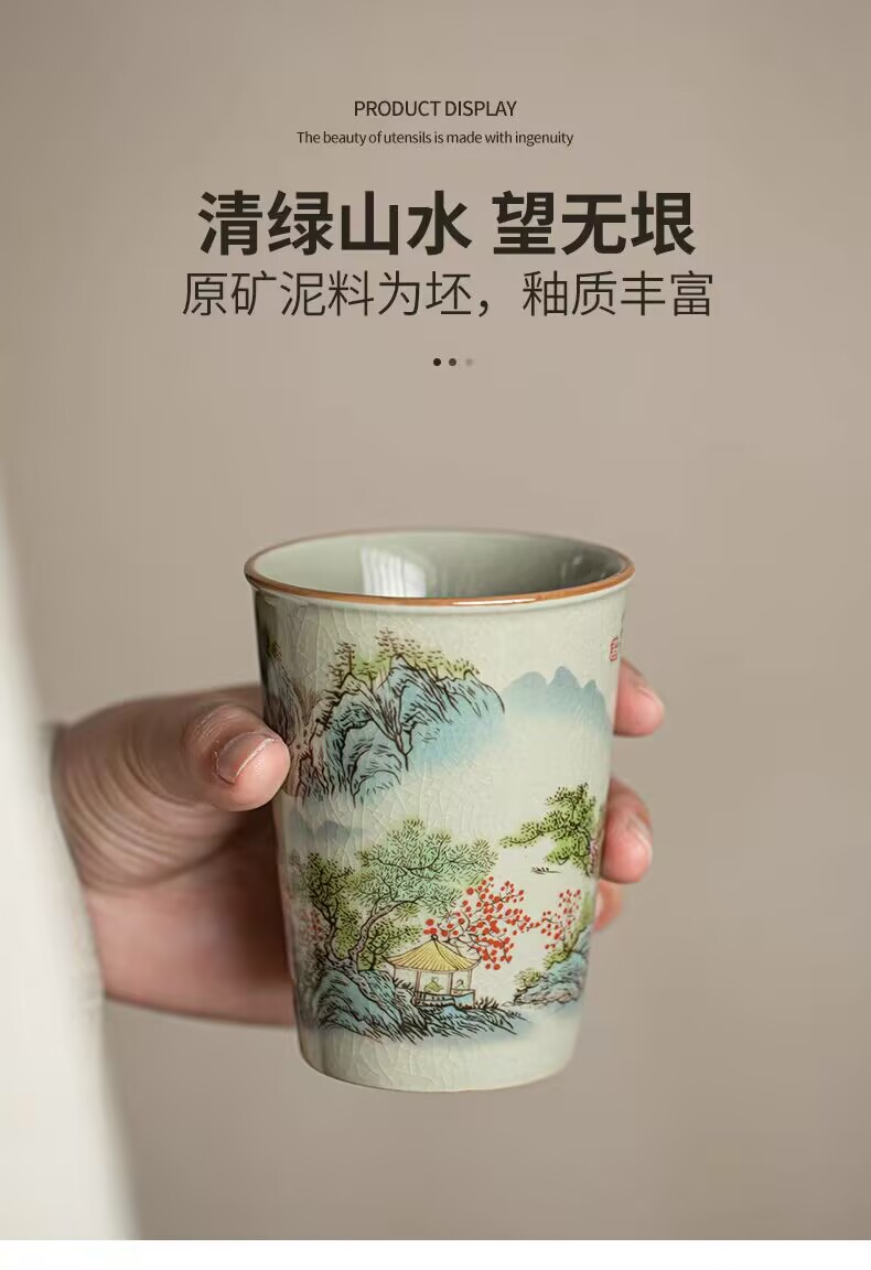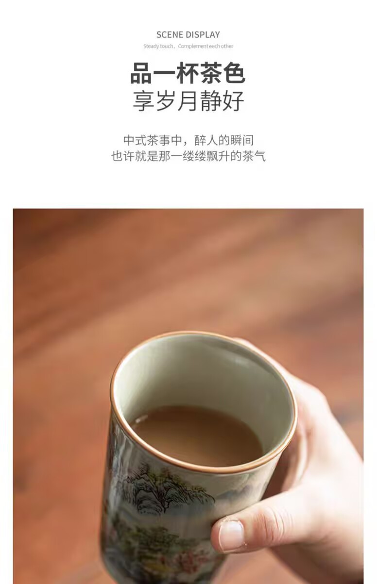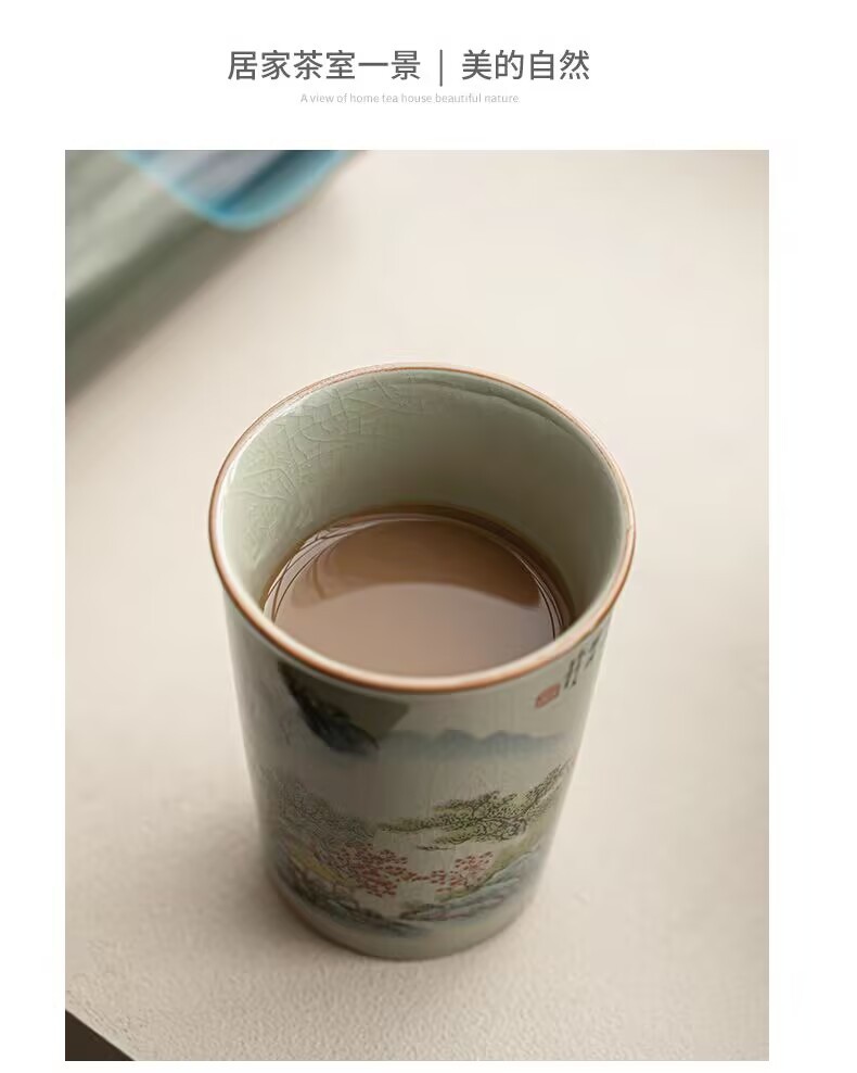 - Cốc chủ nhân Ru Kiln cốc trà gốm sứ gia dụng cốc đơn mở tấm chuyên dụng cá nhân cốc coca bộ trà kungfu bát trà đơn