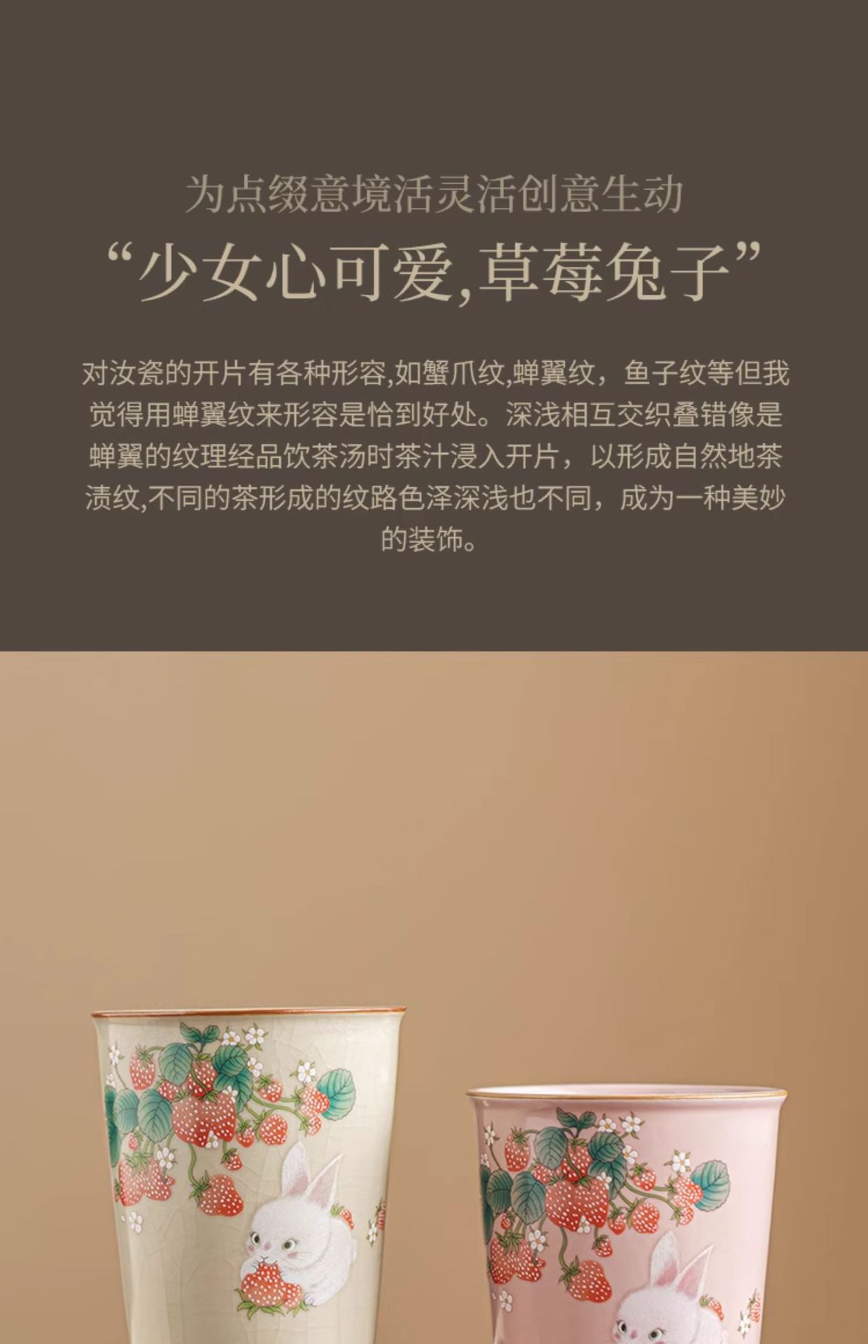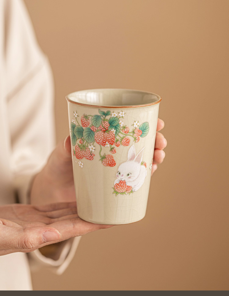 - Cốc chủ nhân thỏ dâu tây Ruyao cốc đơn cốc trà cá nhân nữ cốc tiện dụng cốc trà Trung Quốc dung tích lớn