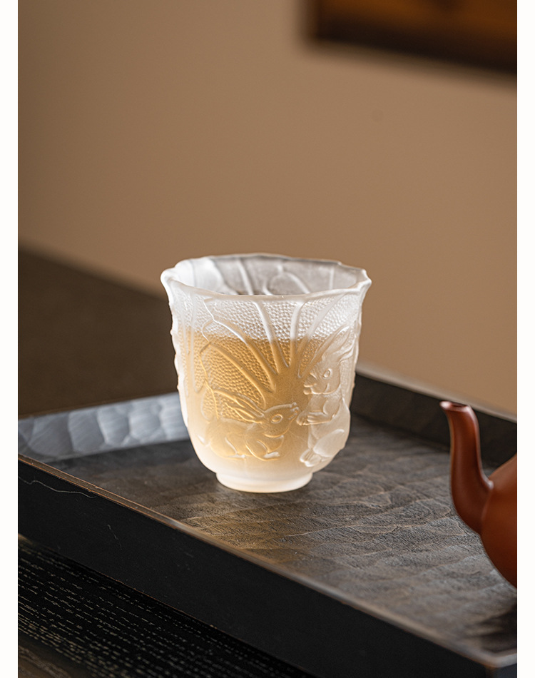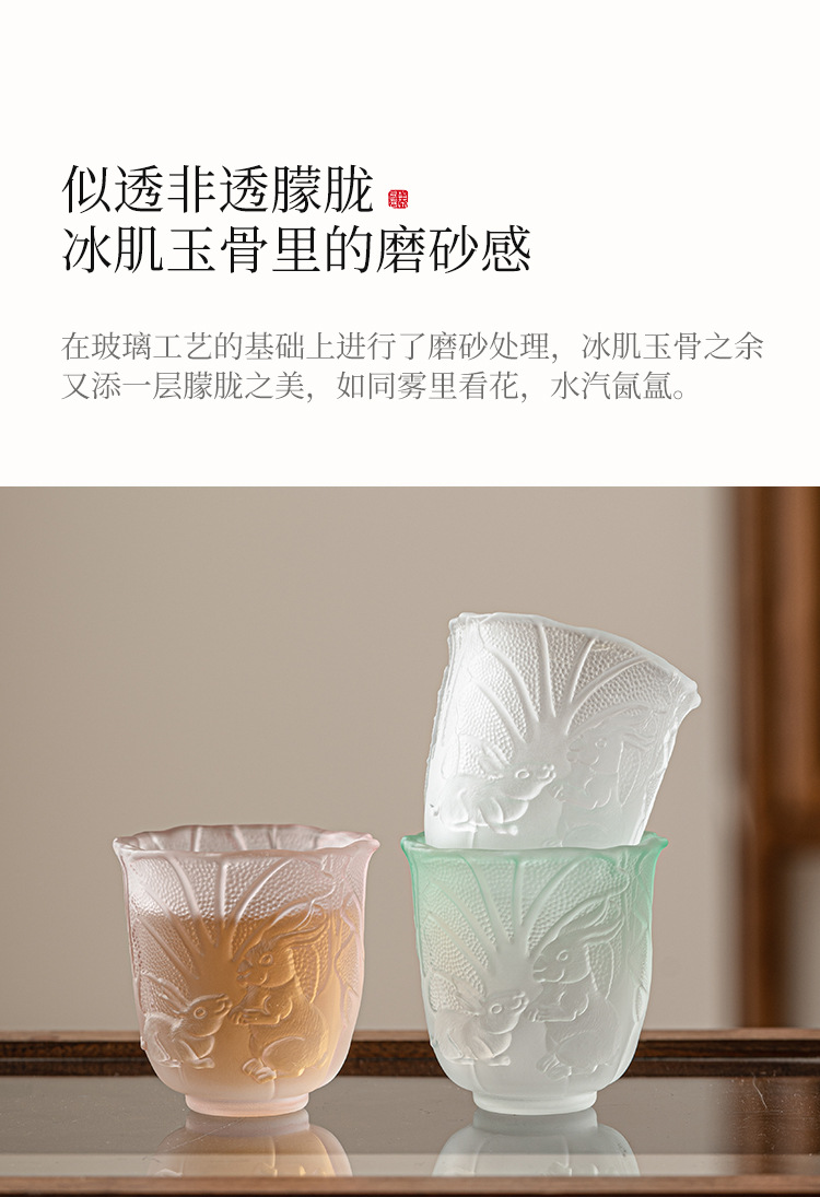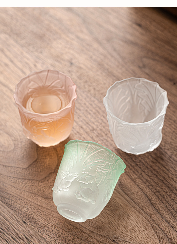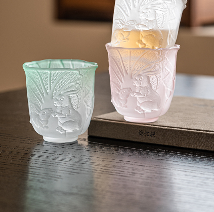 Cốc chủ nhân thỏ ngọc bắp cải cốc đơn cốc trà cao cấp cho nữ cốc trà ngon cốc thủy tinh phù điêu cốc trà công phu cốc cặp đôi