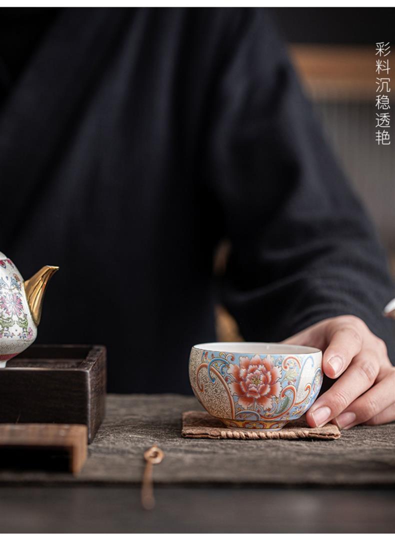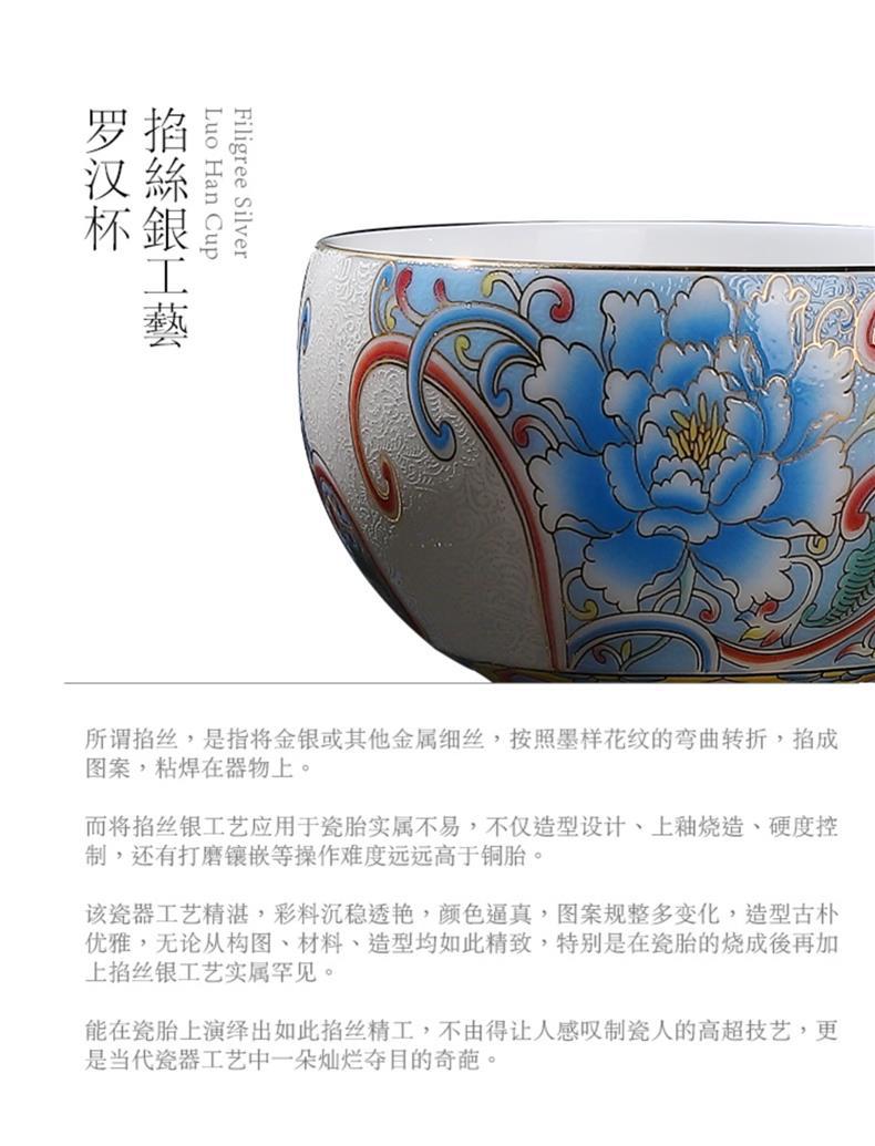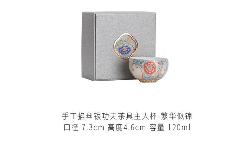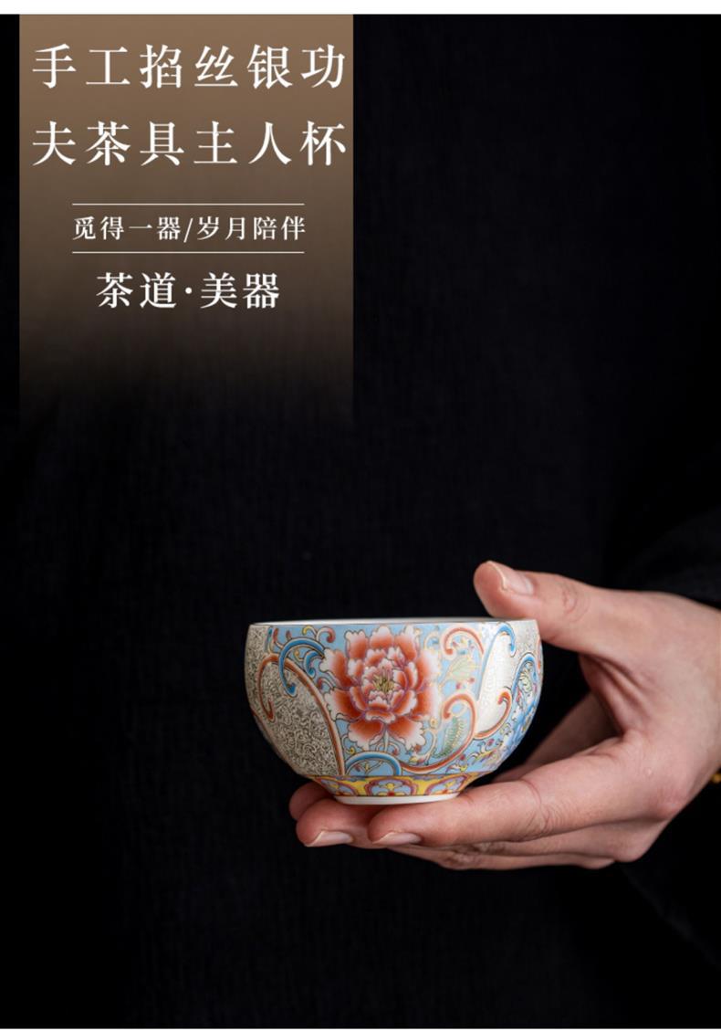 - Cốc chủ nhân thủ công bạc chạm khắc thủ công cốc trà cỡ lớn cốc trà Kung Fu phong cách cung điện retro hộp quà