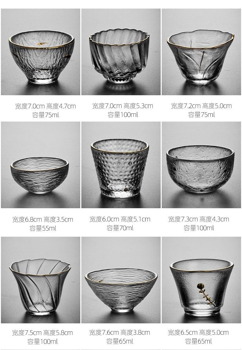 - Cốc chủ nhân thủy tinh kiểu Nhật, dụng cụ trà gia dụng, cốc trà, cốc nhỏ đơn giản, cốc trà nhỏ có hình búa dày, cốc đơn Sake