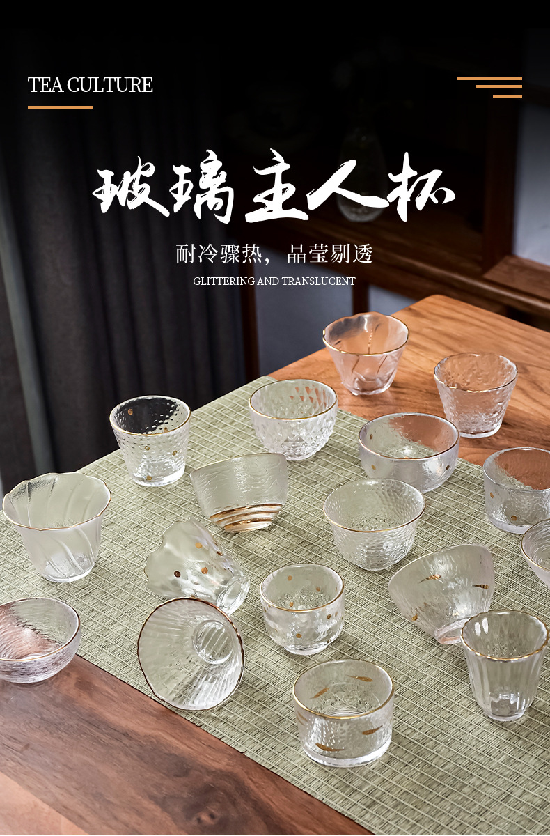 Cốc chủ nhân thủy tinh kiểu Nhật, dụng cụ trà gia dụng, cốc trà, cốc nhỏ đơn giản, cốc trà nhỏ có hình búa dày, cốc đơn Sake