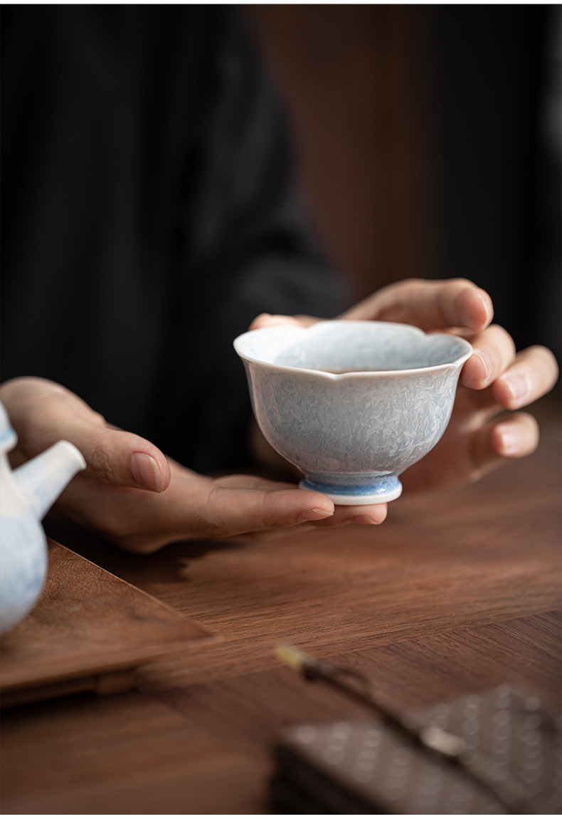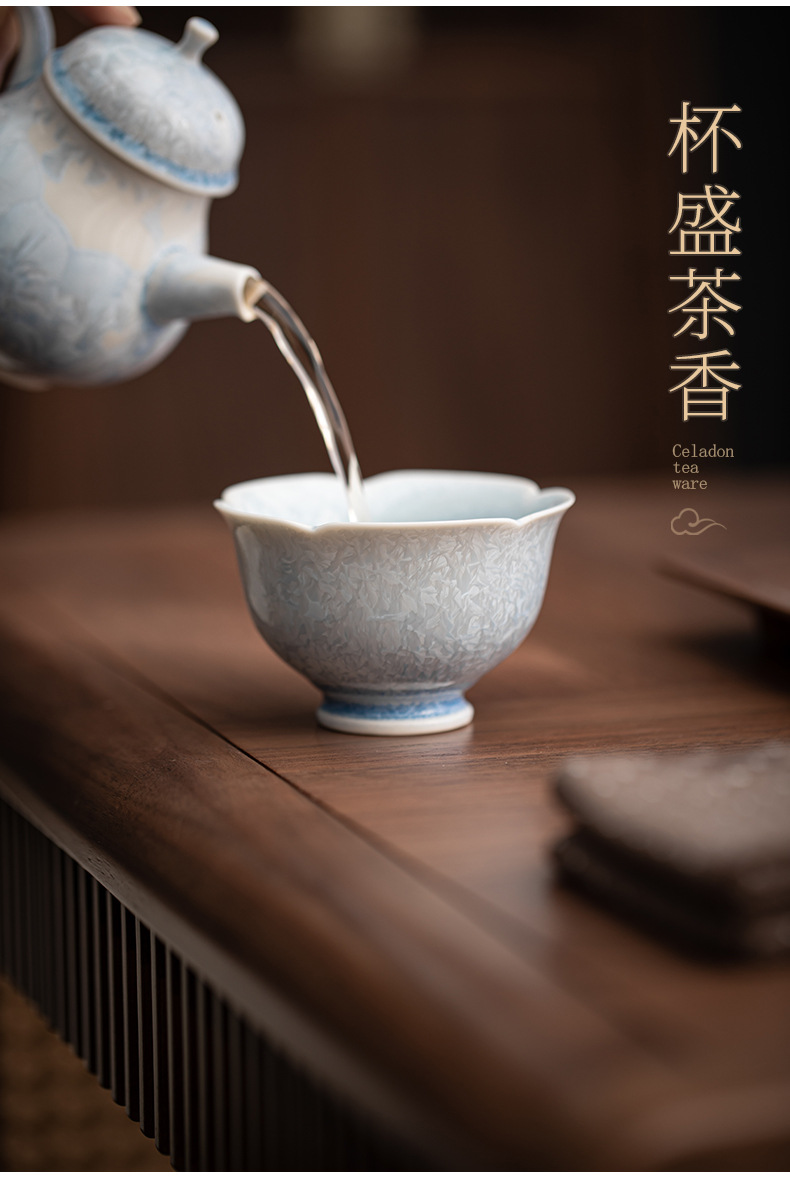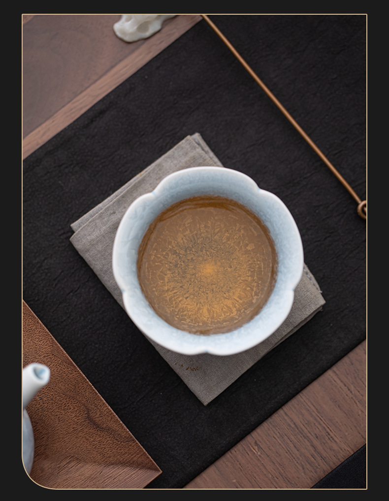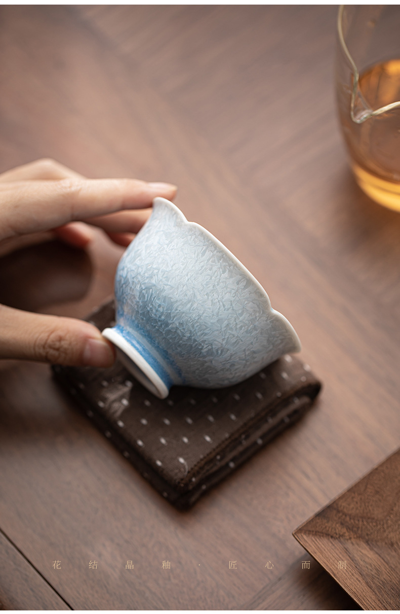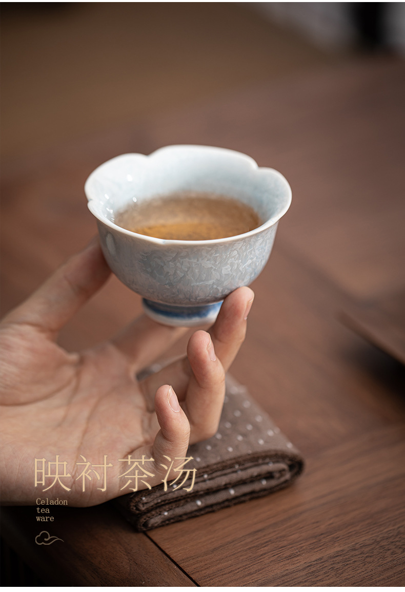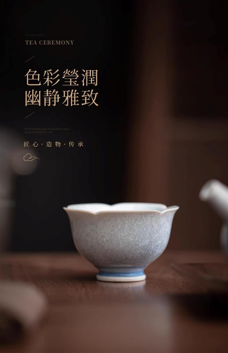 Cốc chủ nhân tráng men pha lê có giá trị cao, cốc cánh hoa gốm sứ, bộ trà Kung Fu, cốc trà sang trọng nhẹ, bán buôn quà lưu niệm