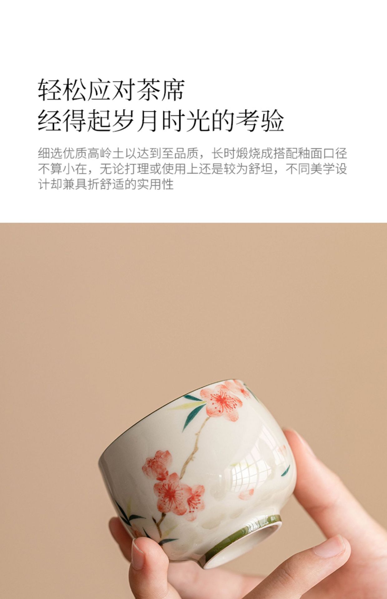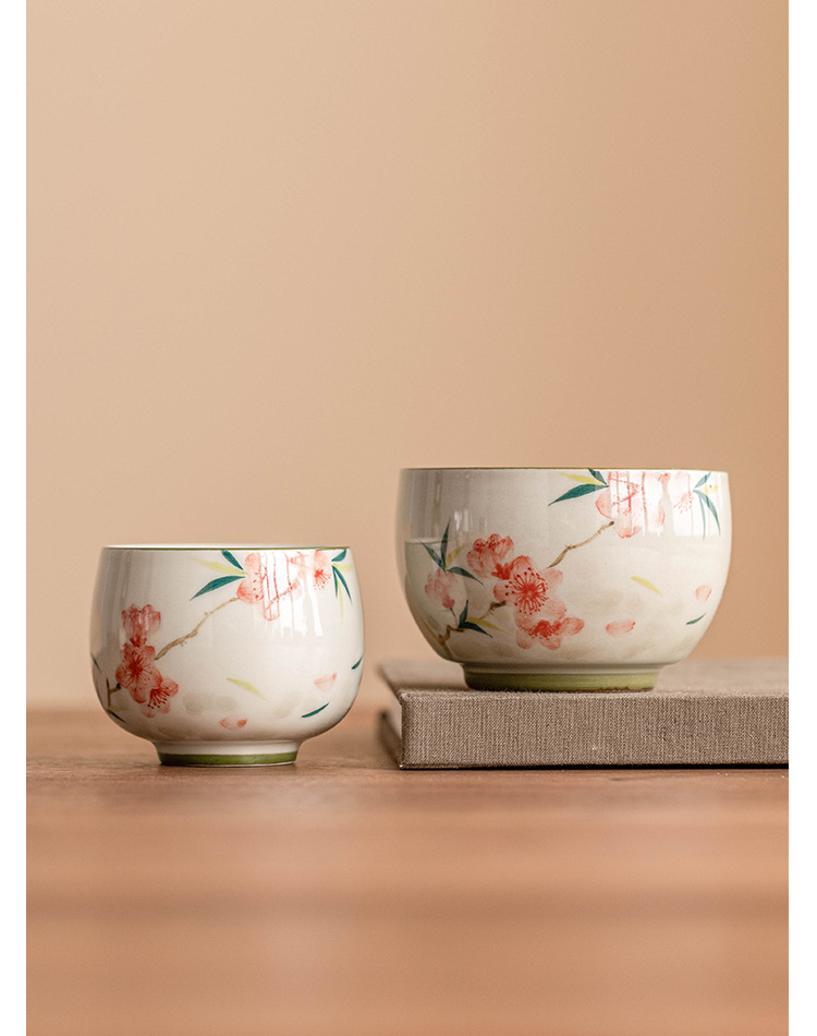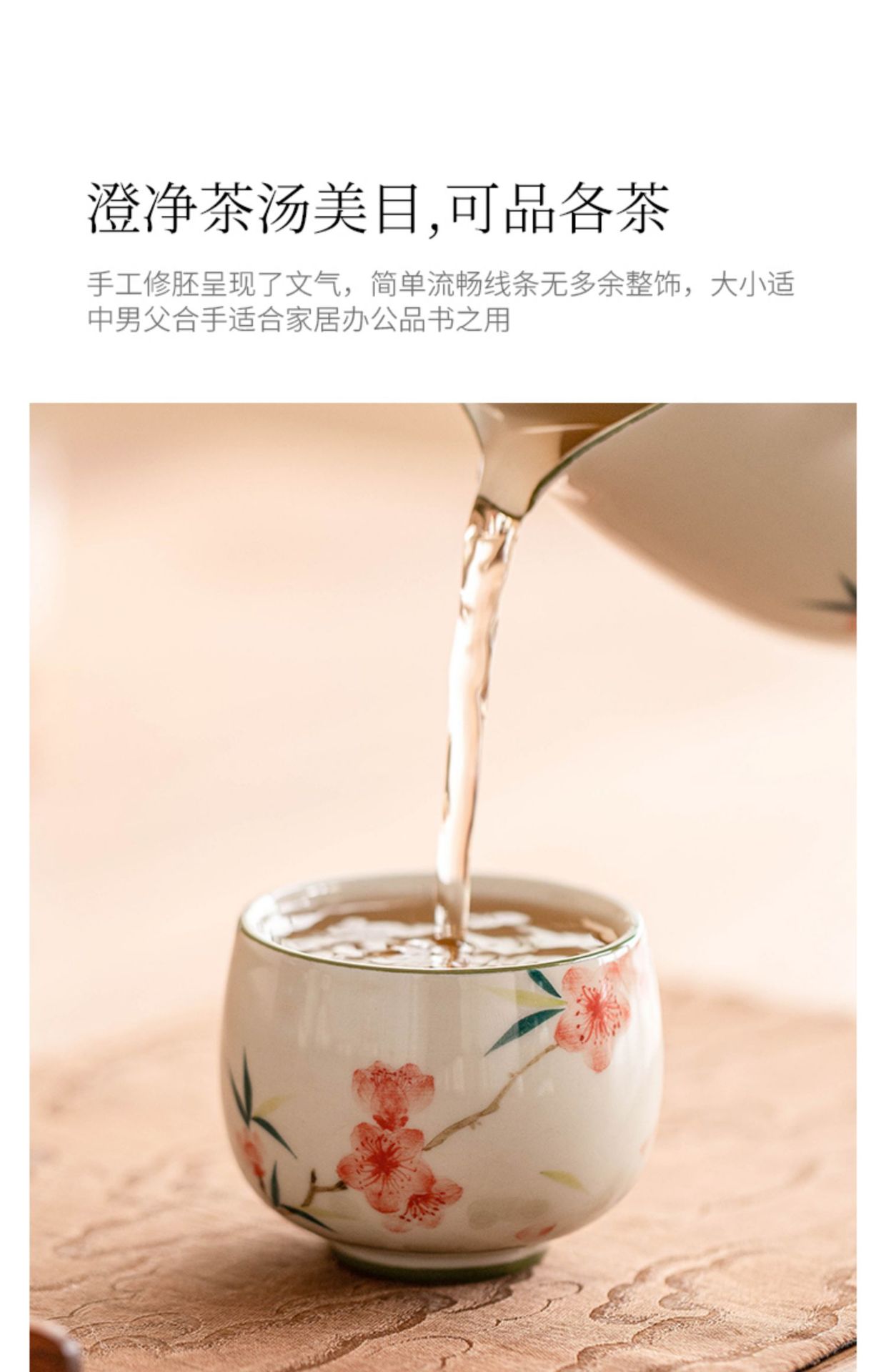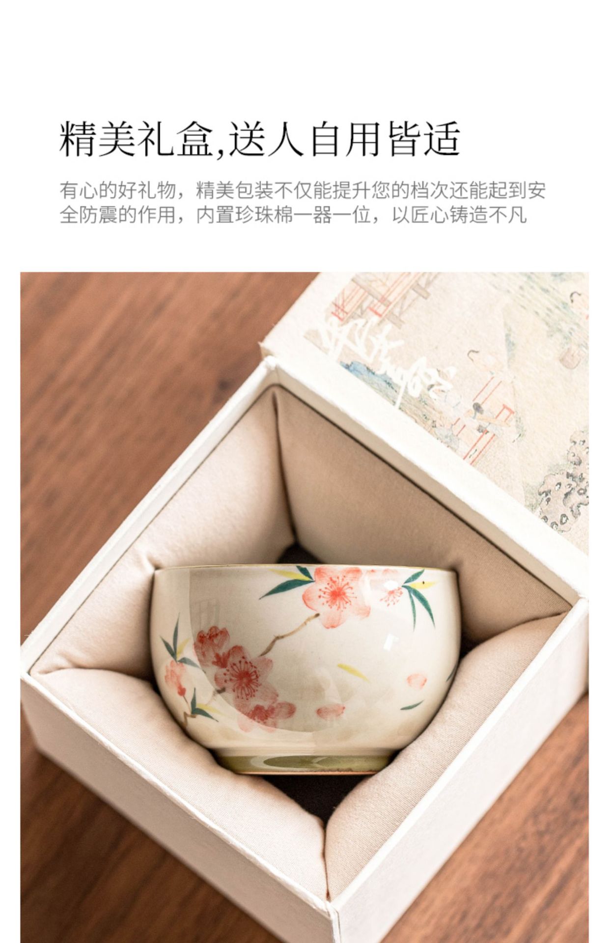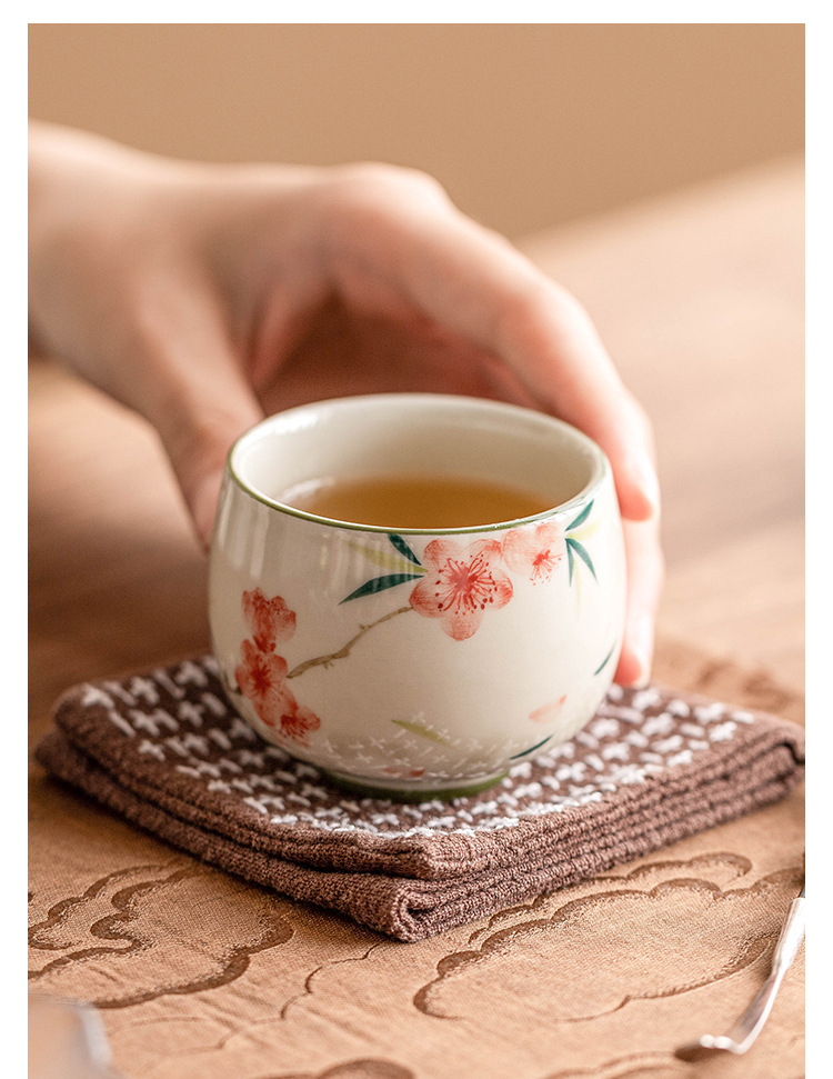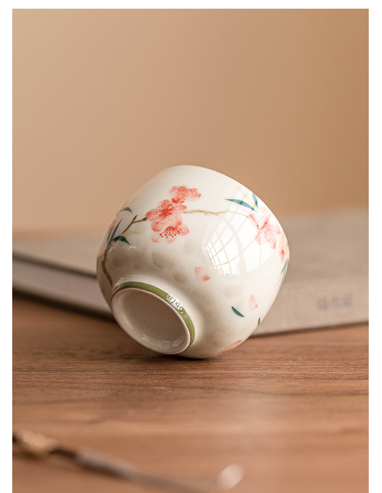 - Cốc chủ nhân vẽ tay hoa đào cốc đơn trà Kung Fu cao cấp Trung Quốc cốc trà Bộ trà gốm sứ cá nhân tách trà nhỏ