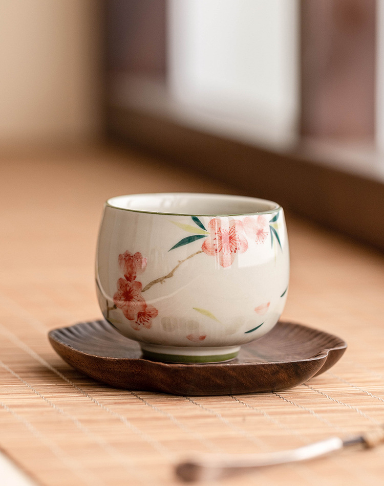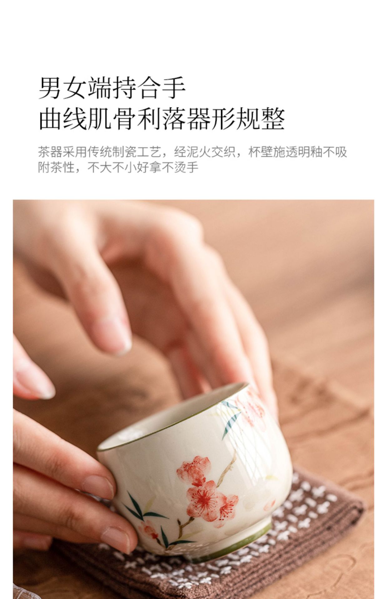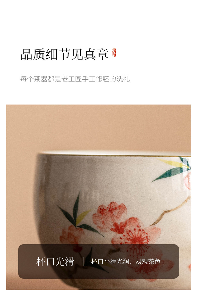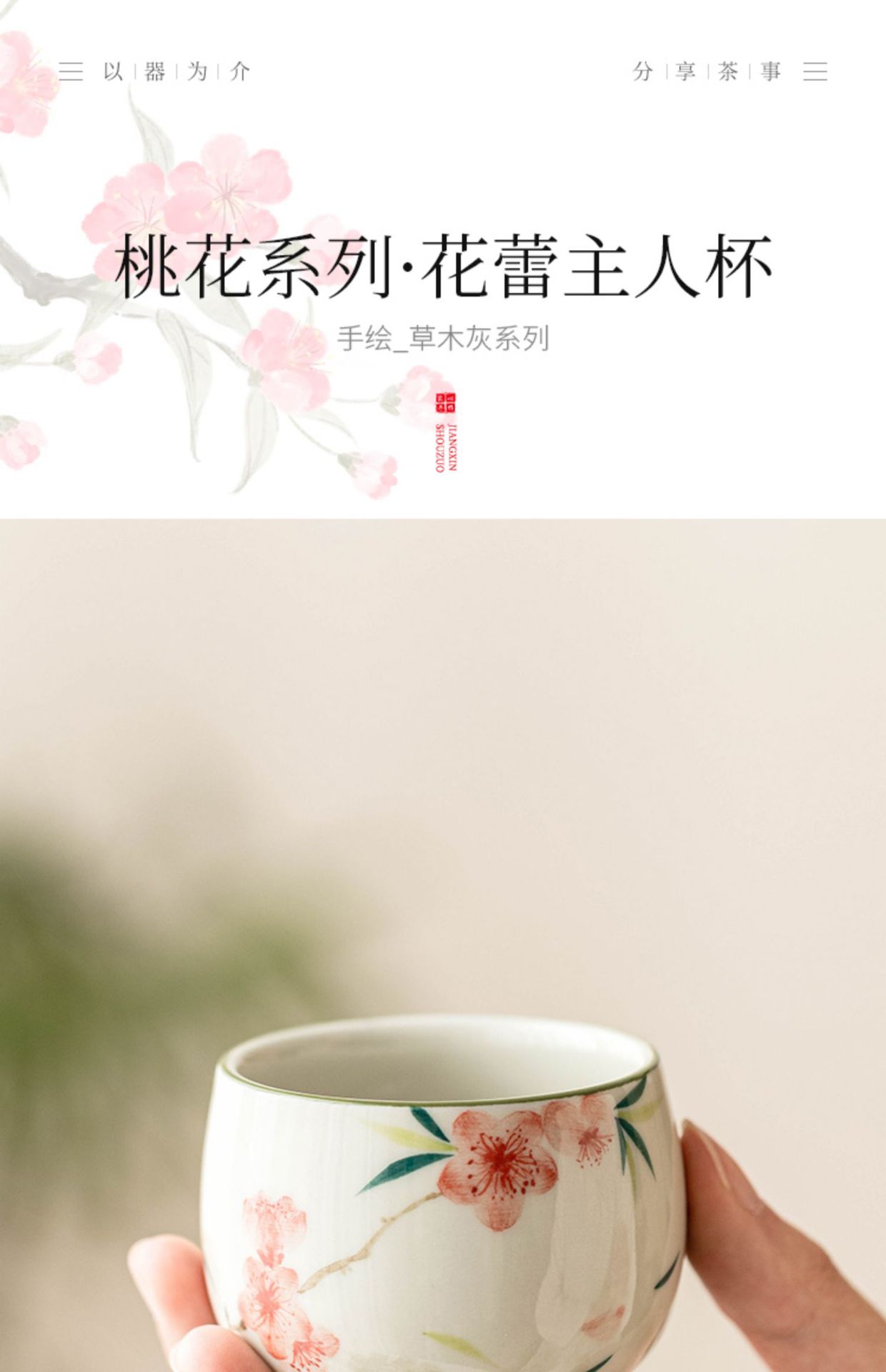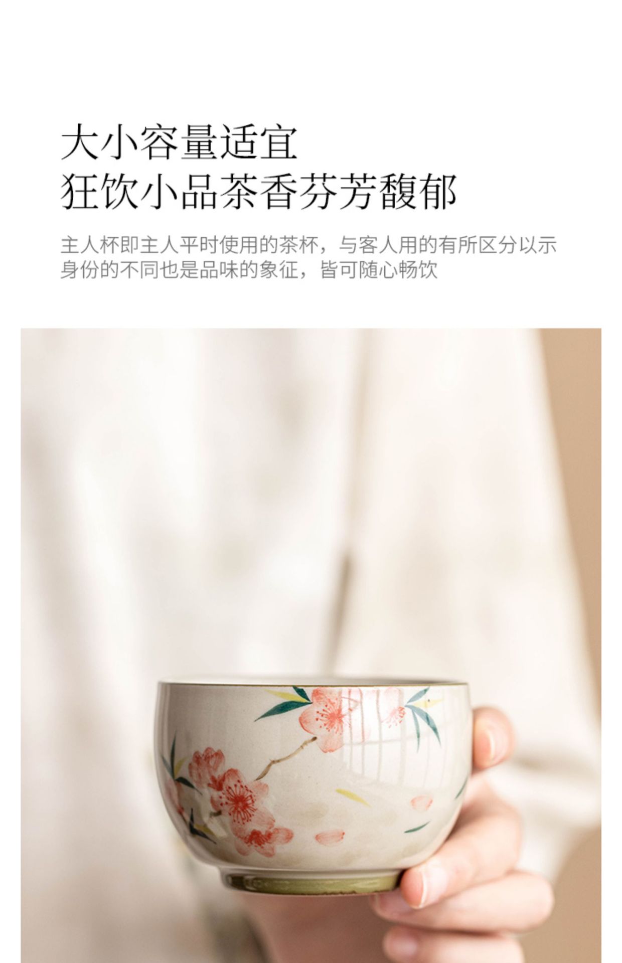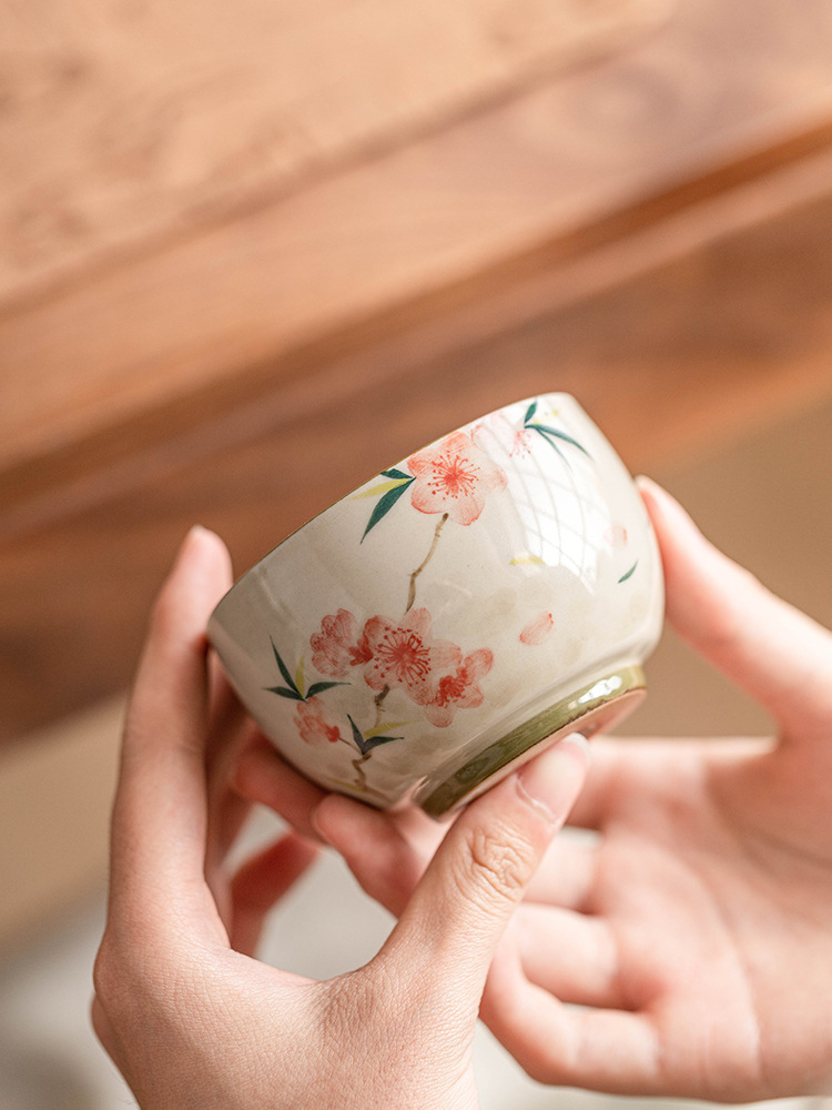 - Cốc chủ nhân vẽ tay hoa đào cốc đơn trà Kung Fu cao cấp Trung Quốc cốc trà Bộ trà gốm sứ cá nhân tách trà nhỏ