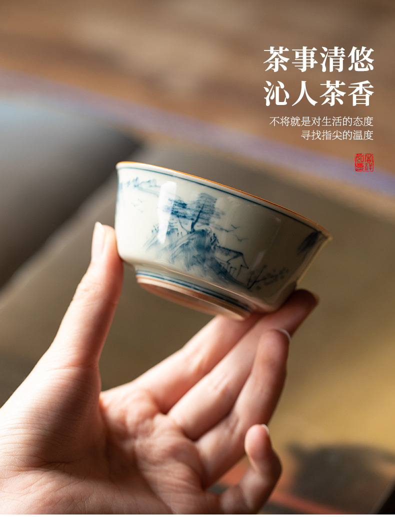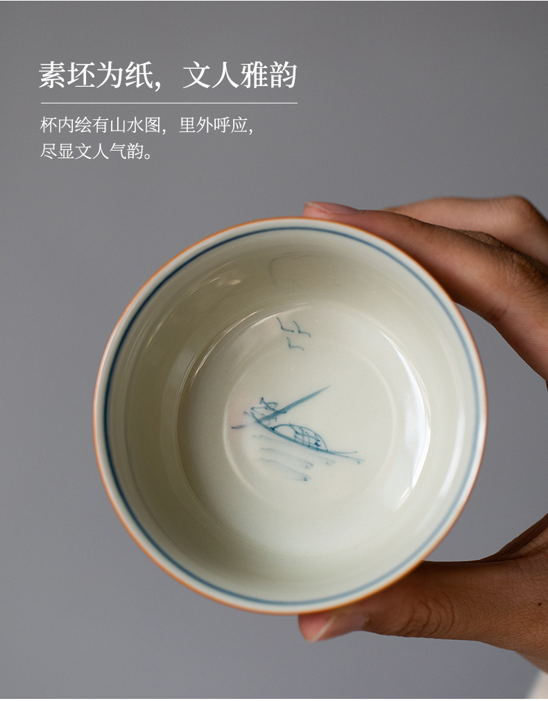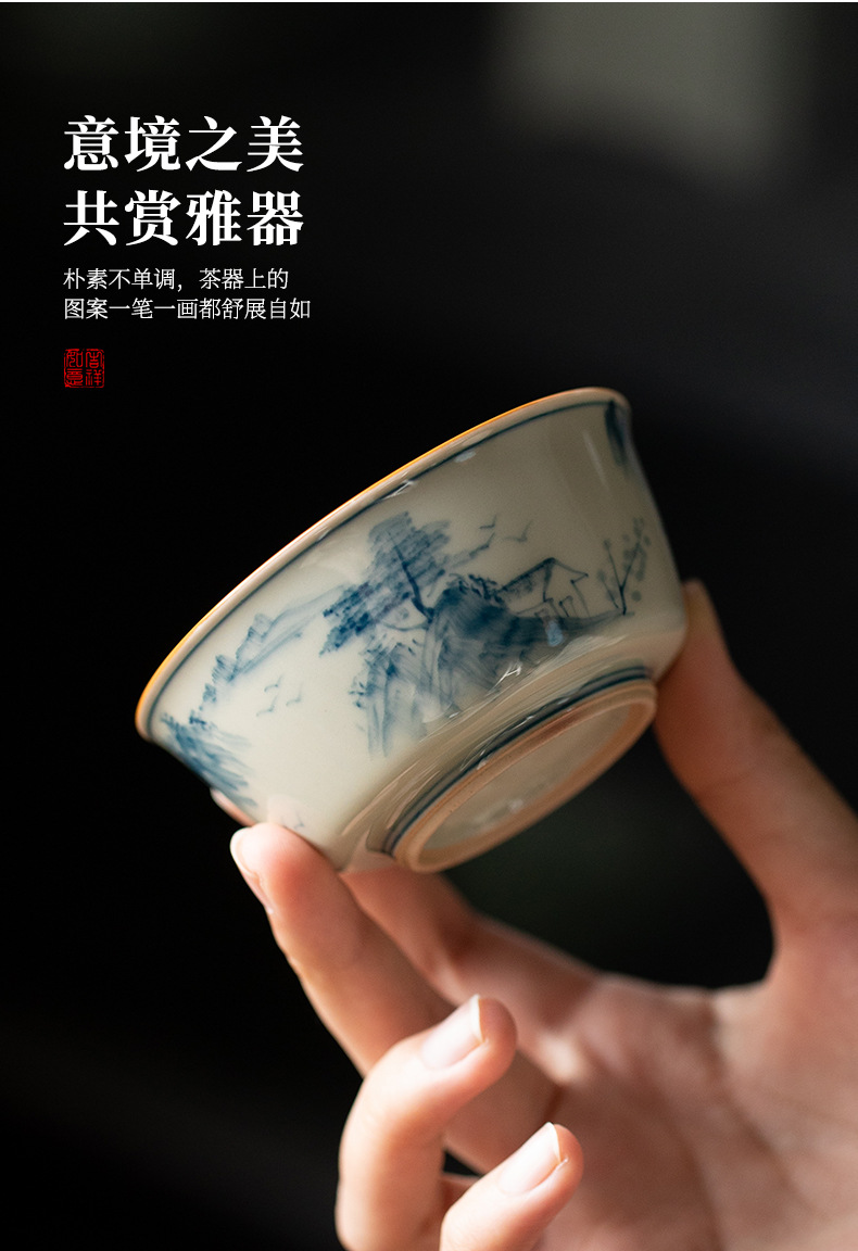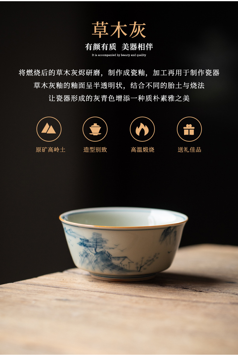 - Cốc chủ nhân vẽ tay tinh khiết màu xám thực vật cốc đơn cốc trà lớn chuyên dụng cá nhân cốc trà Pu'er Bộ trà Kung Fu tách trà