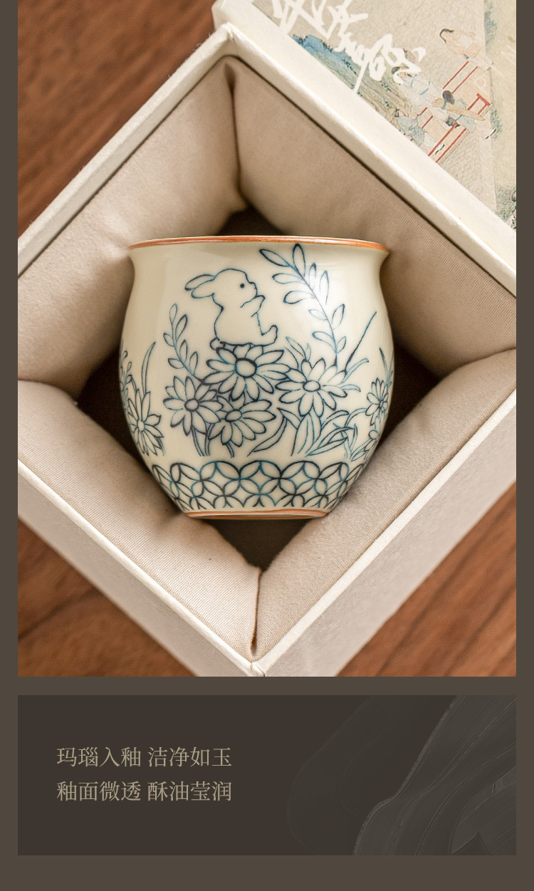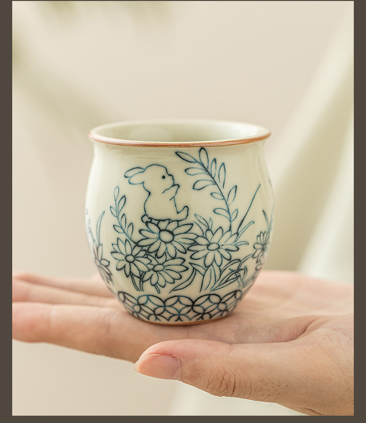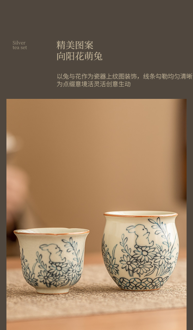 Cốc chủ thỏ dễ thương hoa mặt trời Ru Kiln cốc đơn cốc đơn đồ dùng gia dụng cao cấp cốc trà bộ trà công phu cốc trà