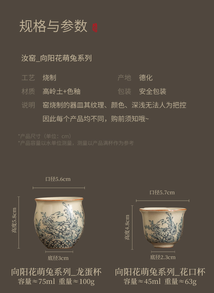 - Cốc chủ thỏ dễ thương hoa mặt trời Ru Kiln cốc đơn cốc đơn đồ dùng gia dụng cao cấp cốc trà bộ trà công phu cốc trà