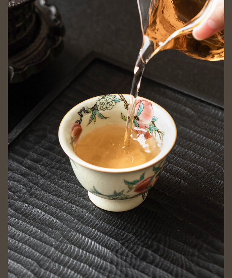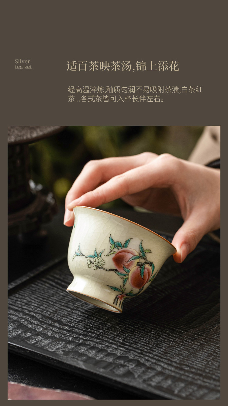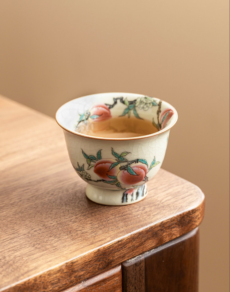 - Cốc cổ chân cao chân cao chín đào Ru Kiln cốc trà gốm sứ gia dụng cốc chủ cao cấp cốc uống trà kiểu Trung Quốc