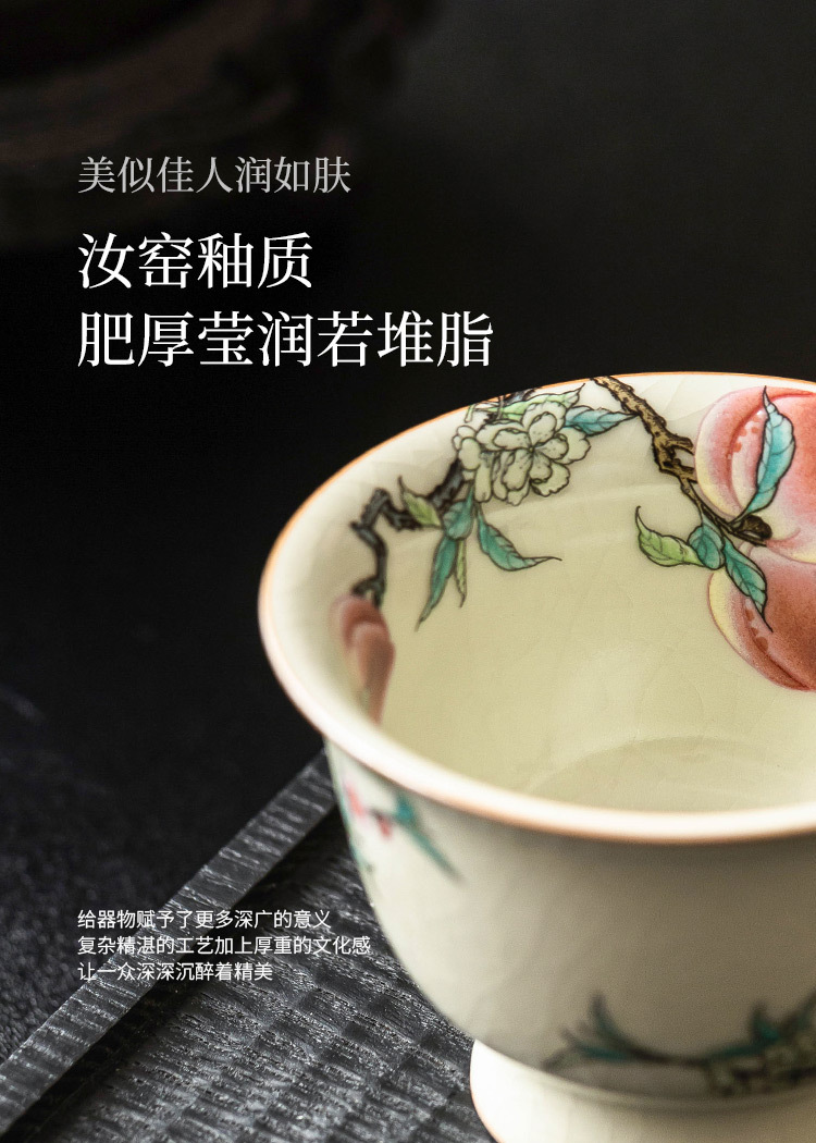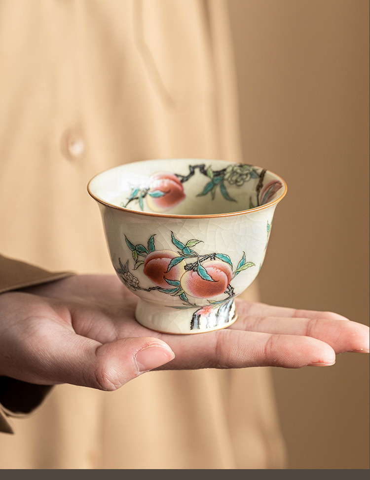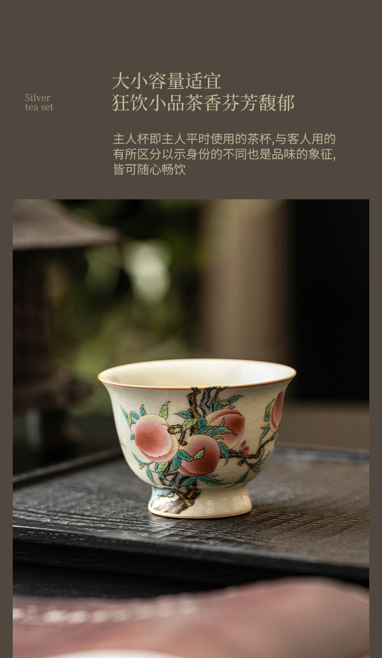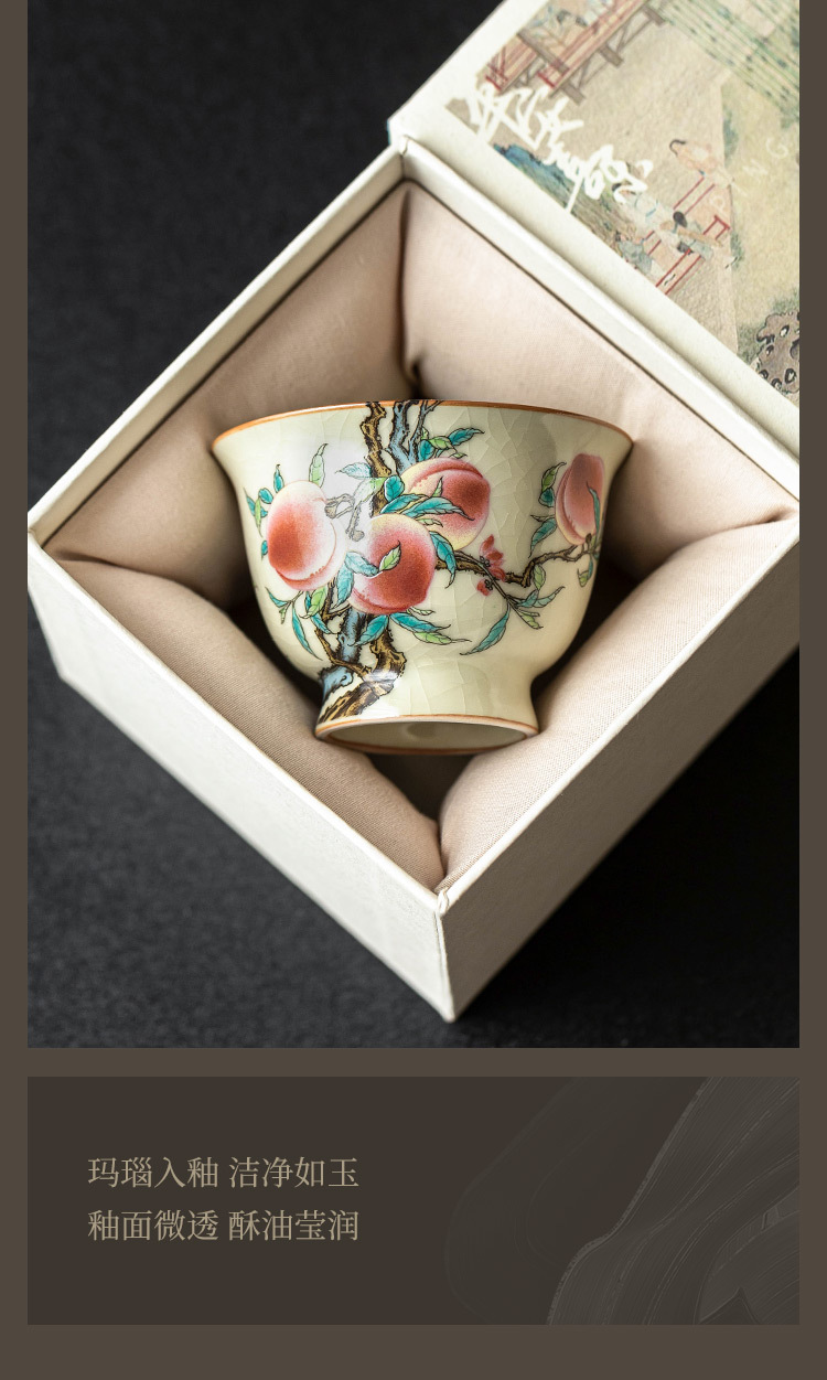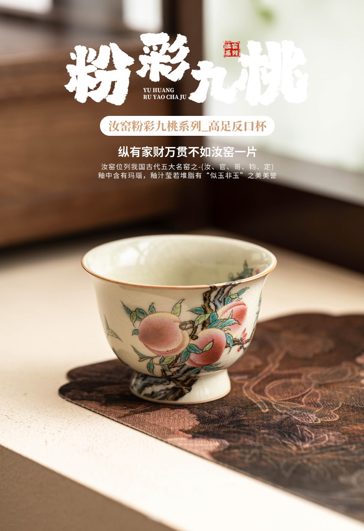 Cốc cổ chân cao chân cao chín đào Ru Kiln cốc trà gốm sứ gia dụng cốc chủ cao cấp cốc uống trà kiểu Trung Quốc