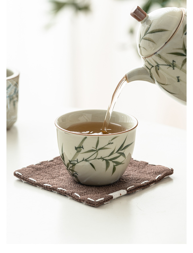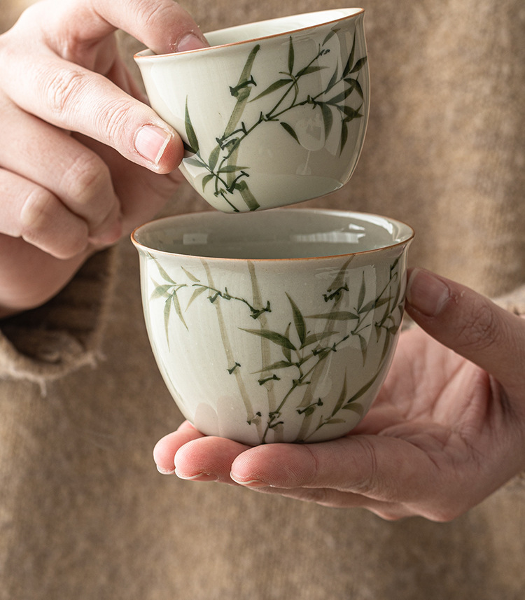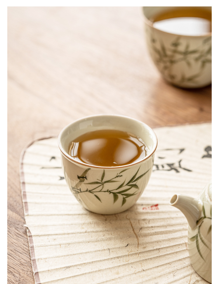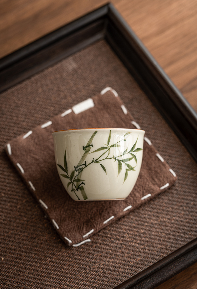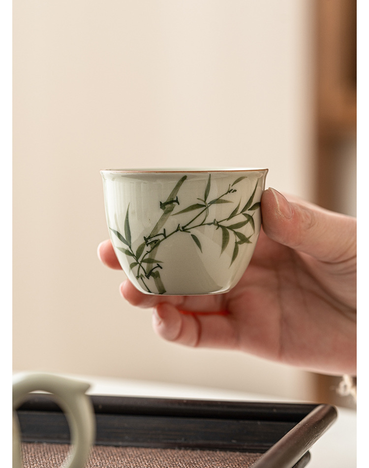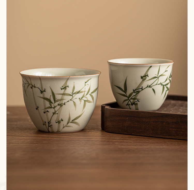 Cốc cốc đựng nước bằng tre xanh ngọc bích cốc chủ nhân cốc đựng trà gốm sứ chén đựng trà gốm sứ dụng cụ trà Kung Fu Trung Quốc cốc trà đơn