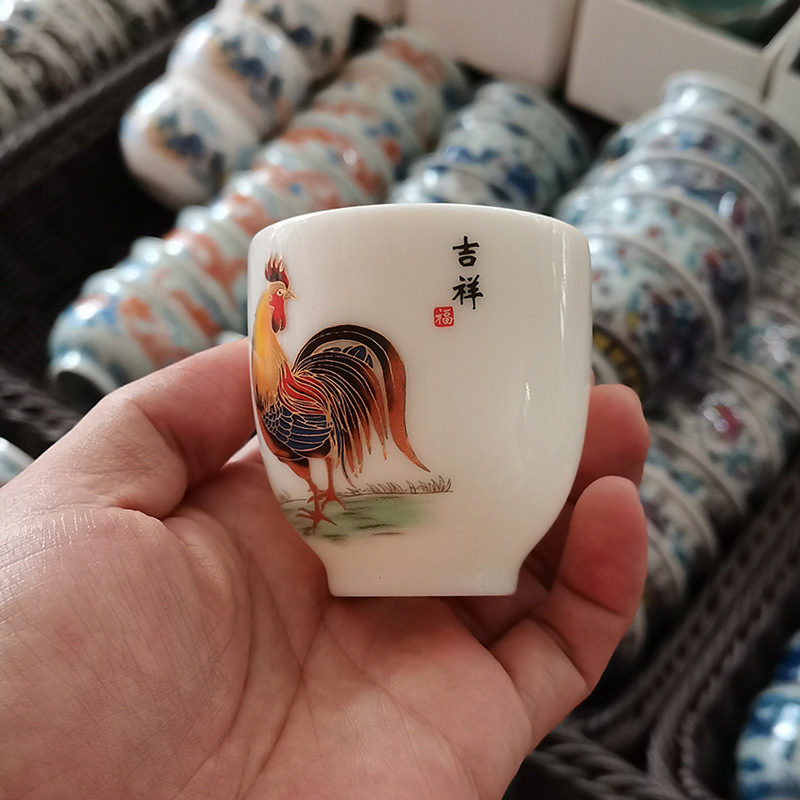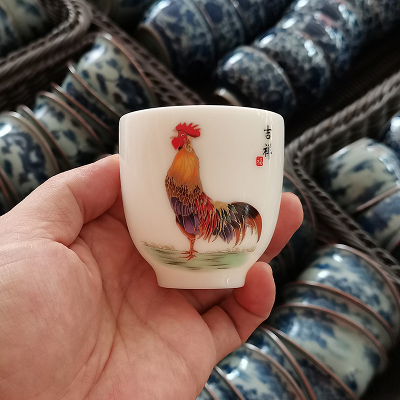 - Cốc cốc gà gốm sứ Jingdezhen cốc chủ sở hữu ngọc bích cao cấp cốc trà bộ đồ trà cốc trà sứ trắng gia dụng cốc trà cảm giác cao cấp