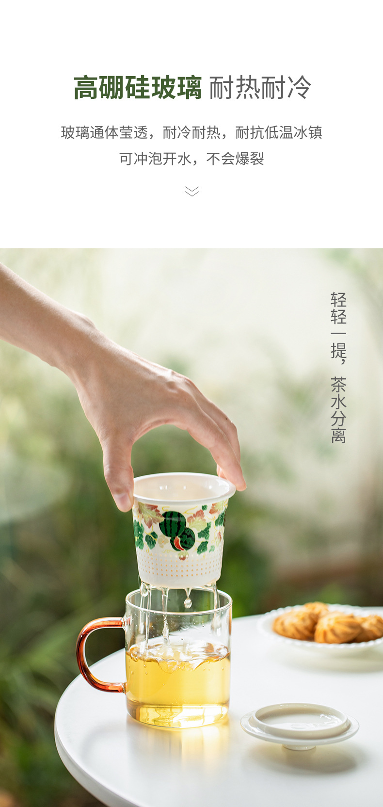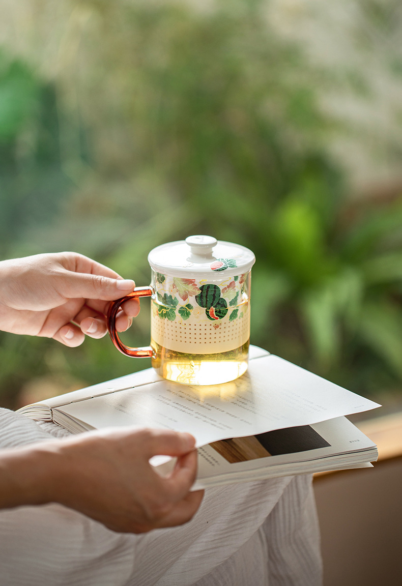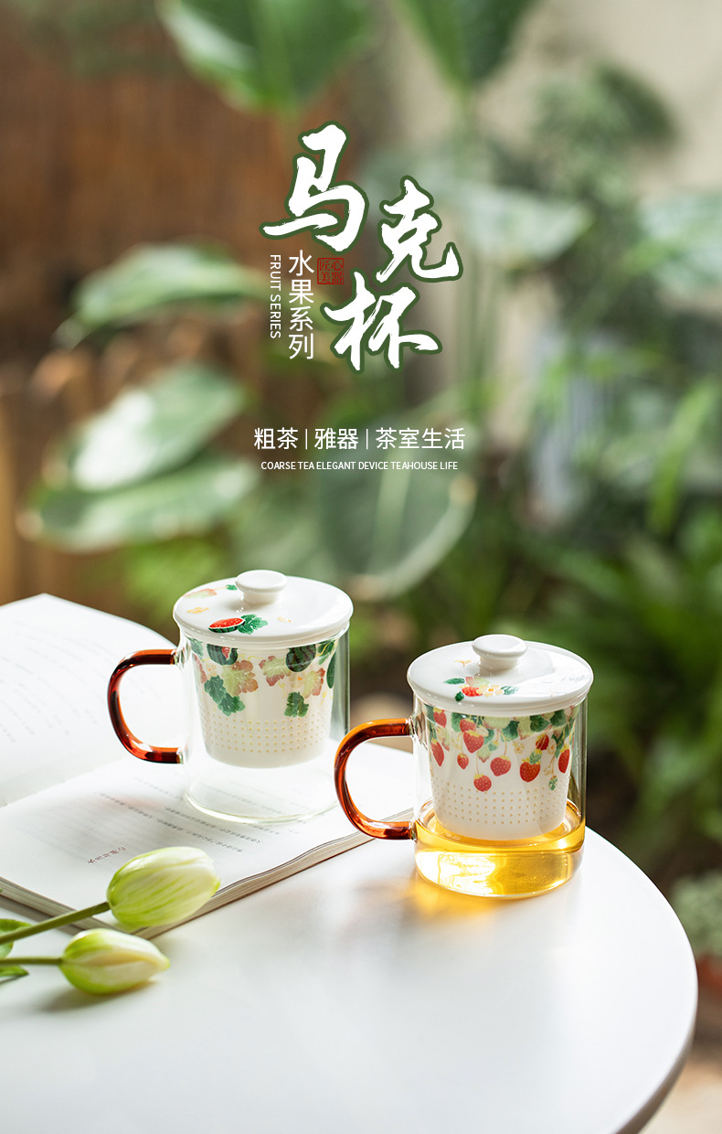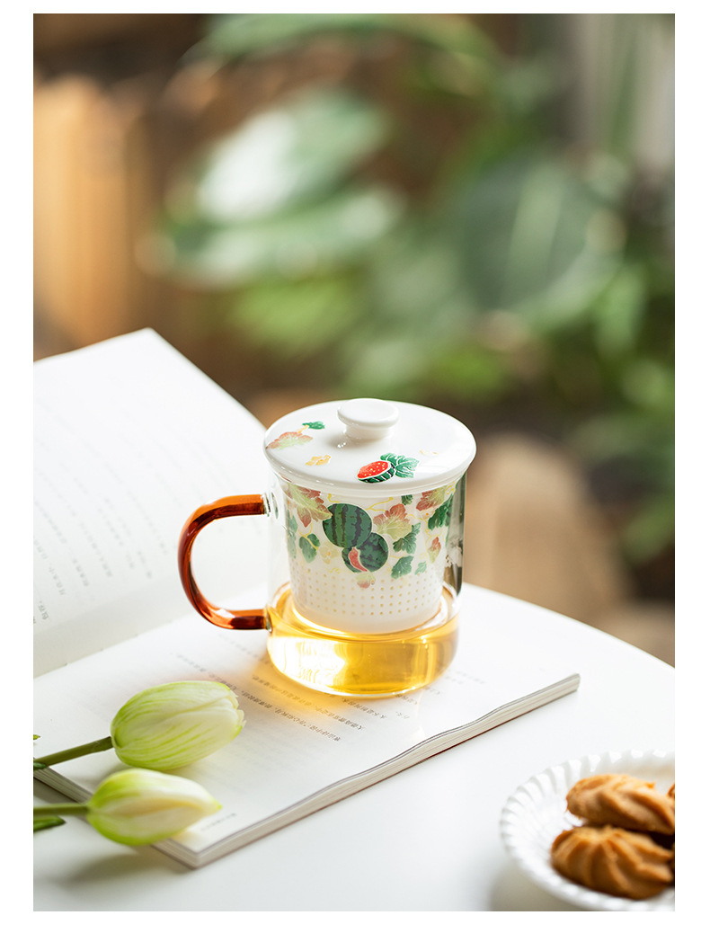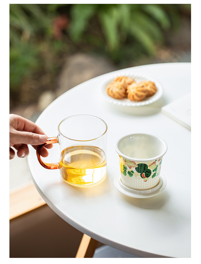 Cốc cốc lọc gốm sứ trái cây cốc tách nước trà có nắp Cốc pha trà cốc thủy tinh chịu nhiệt gia dụng
