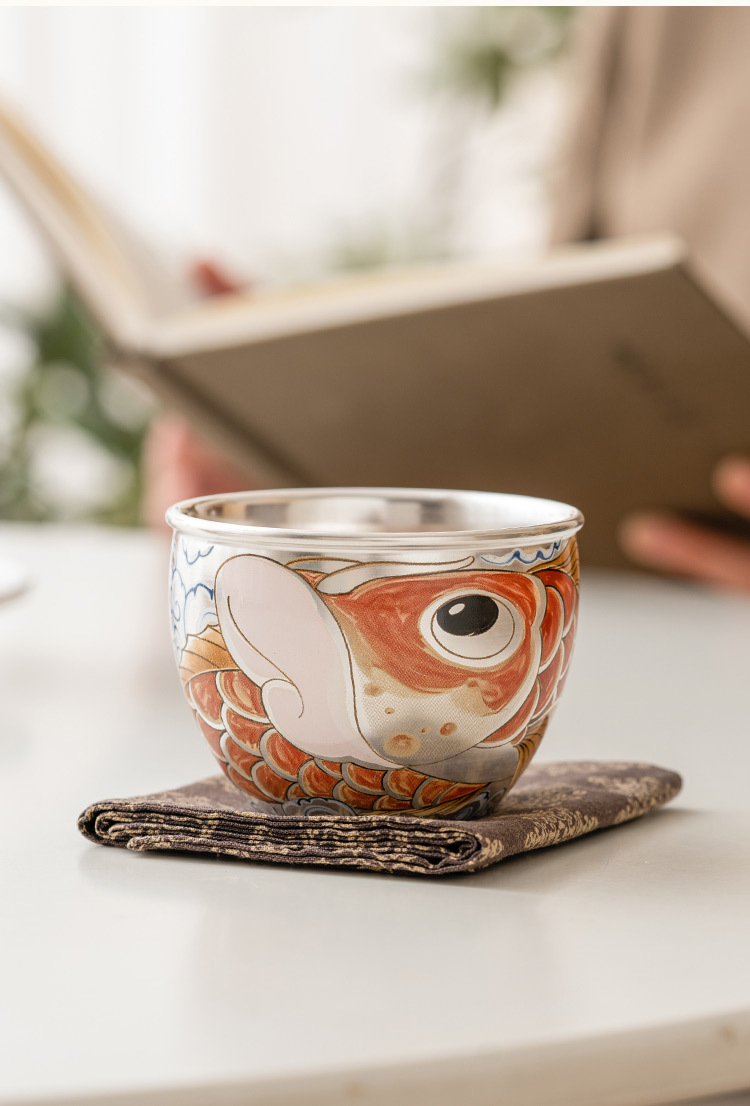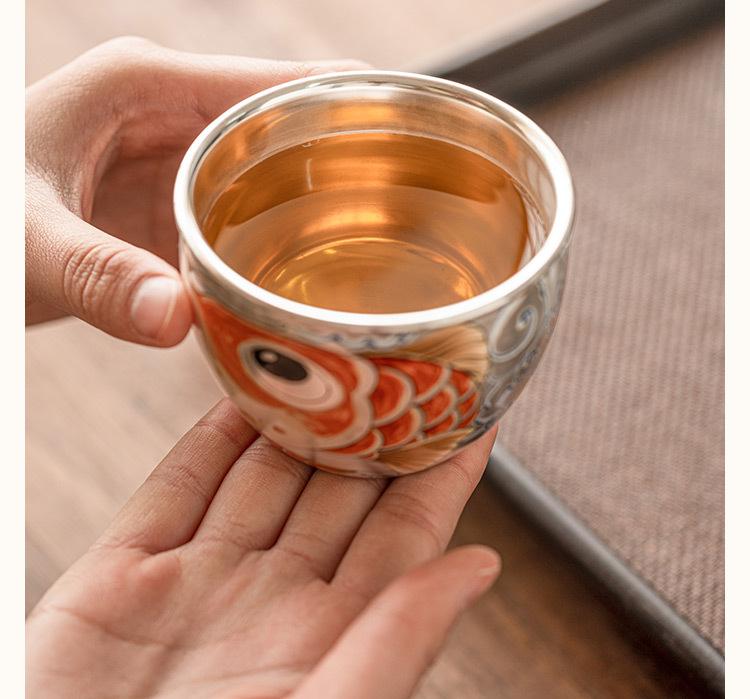 Cốc cốc nước rồng bạc mạ 999 cốc cốc chủ nhân Kung Fu cốc Đơn Lớn cốc trà gia dụng Cốc cá nhân Bộ trà kiểu Trung Quốc