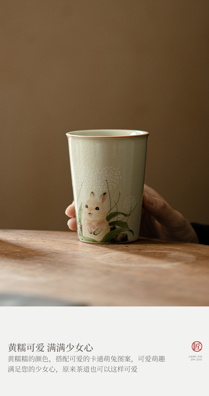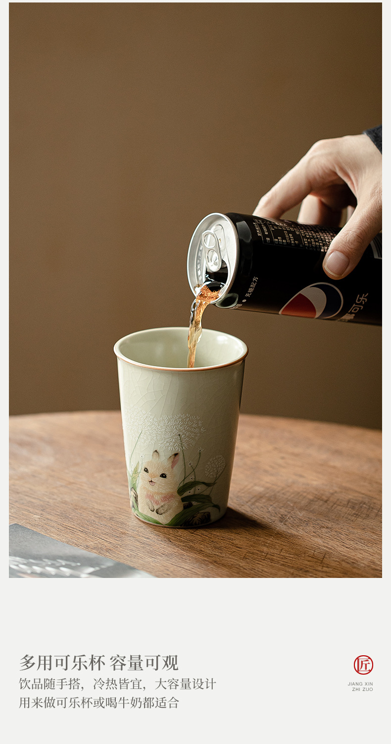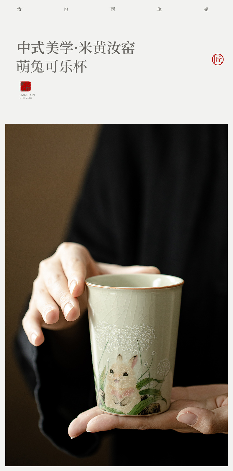 - Cốc Coke thỏ dễ thương màu be Ru Kiln Cốc tiện dụng Cốc pha trà gốm sứ cỡ lớn Cốc đơn Bộ trà Kung Fu