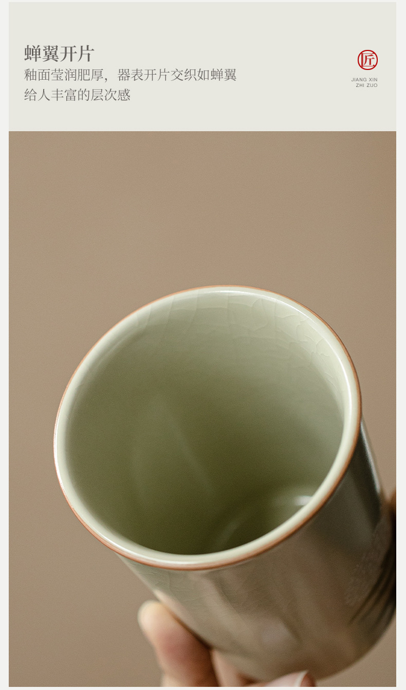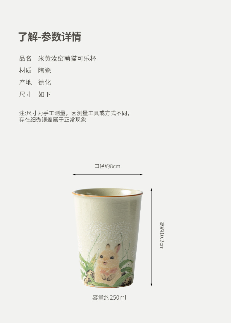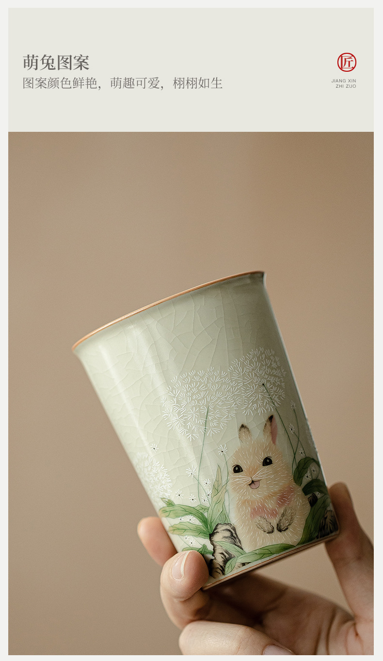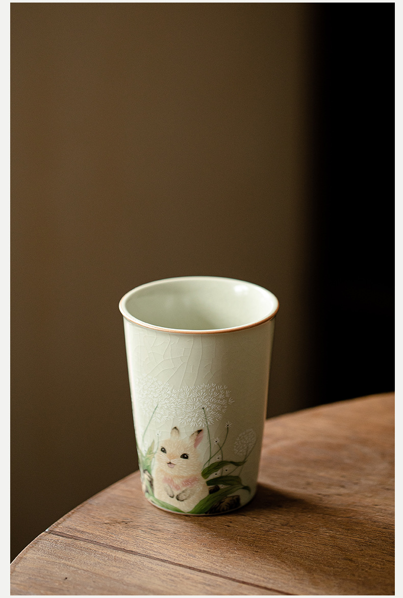 - Cốc Coke thỏ dễ thương màu be Ru Kiln Cốc tiện dụng Cốc pha trà gốm sứ cỡ lớn Cốc đơn Bộ trà Kung Fu