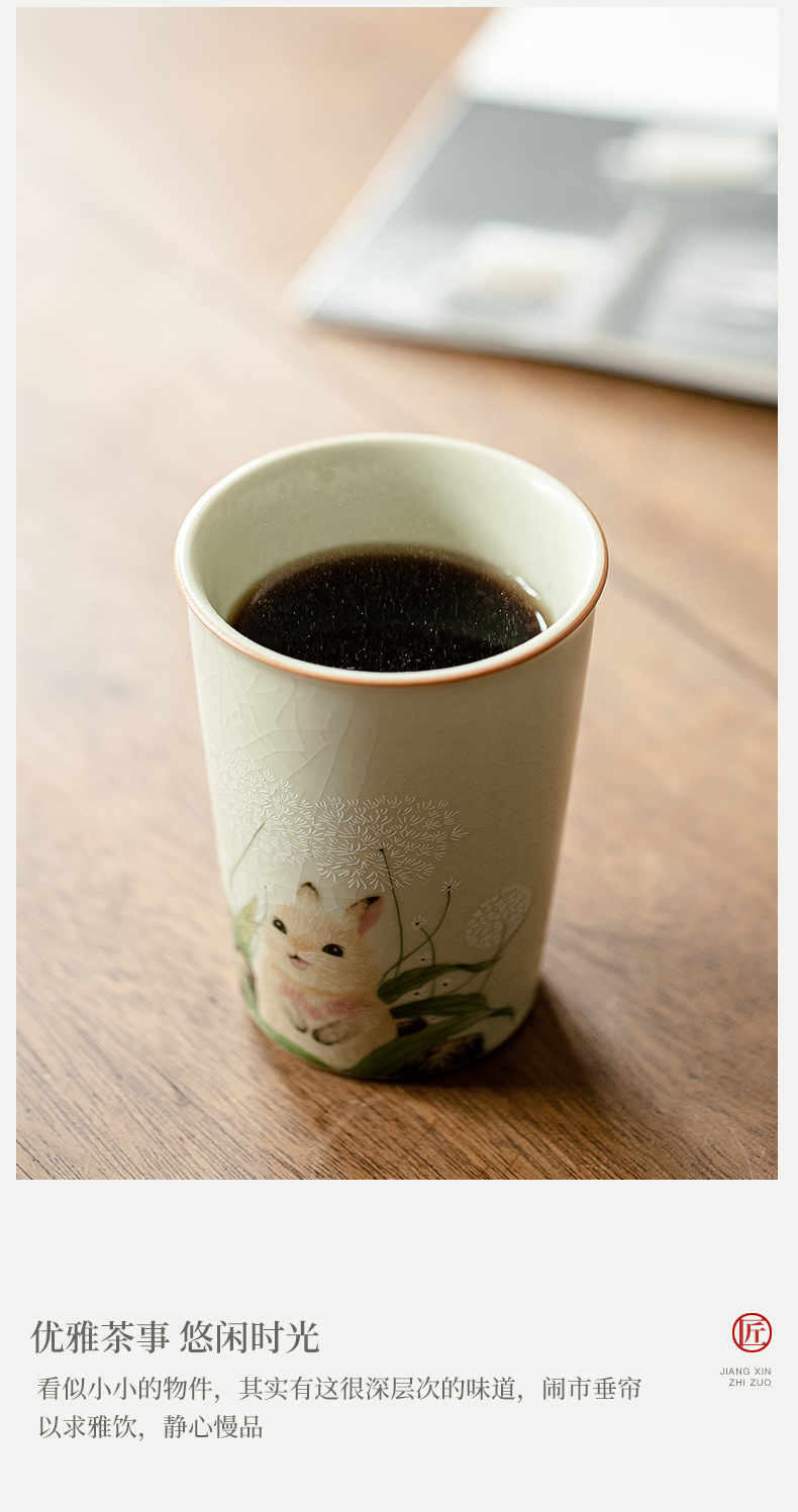 Cốc Coke thỏ dễ thương màu be Ru Kiln Cốc tiện dụng Cốc pha trà gốm sứ cỡ lớn Cốc đơn Bộ trà Kung Fu